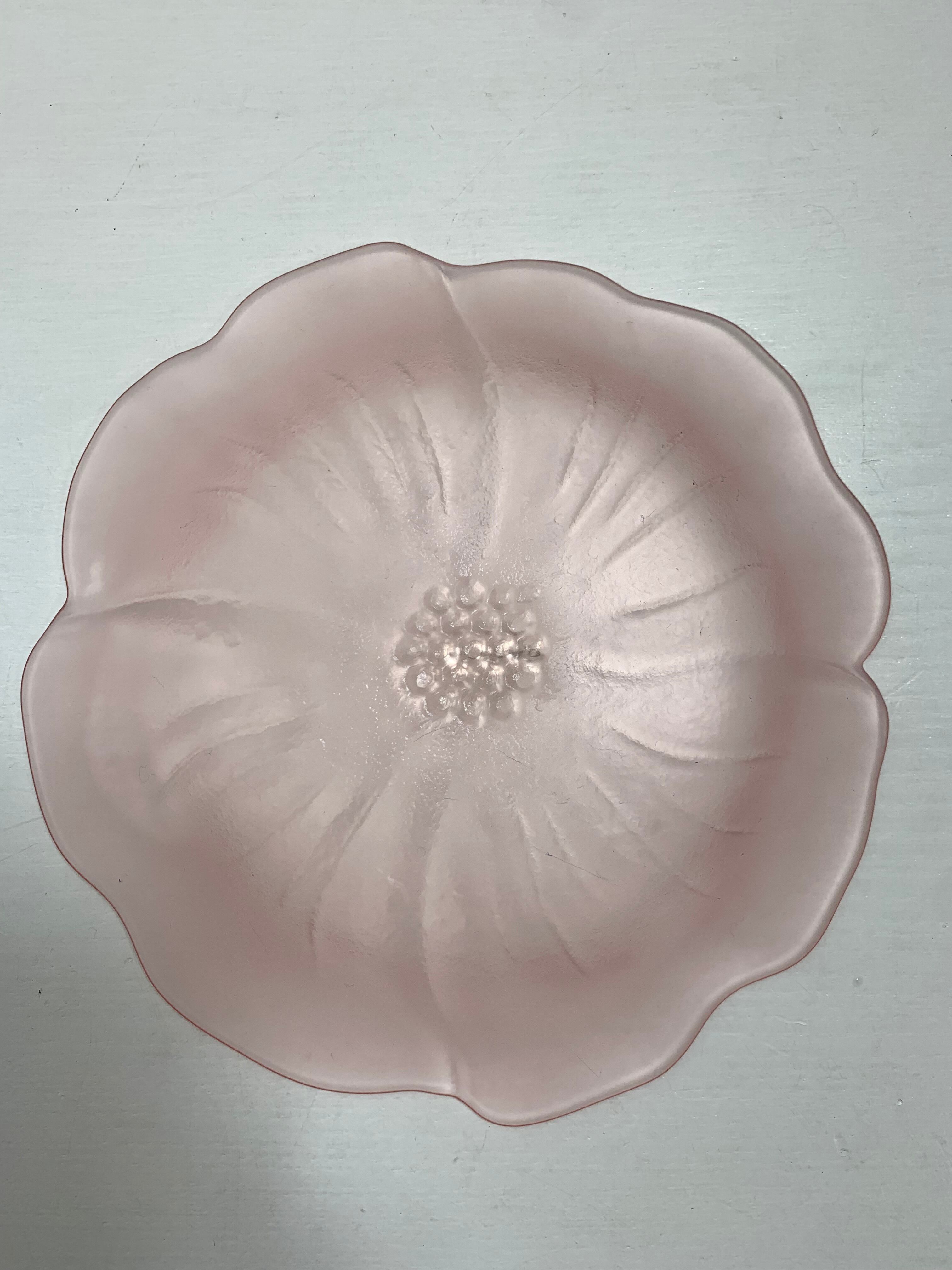 花とピンクの優しい色合いが心を癒し、豊かな暮らしを演出してくれます。広田硝子の伝統と美しさが詰まった一つひとつの中皿に、日々の幸せを感じてください。