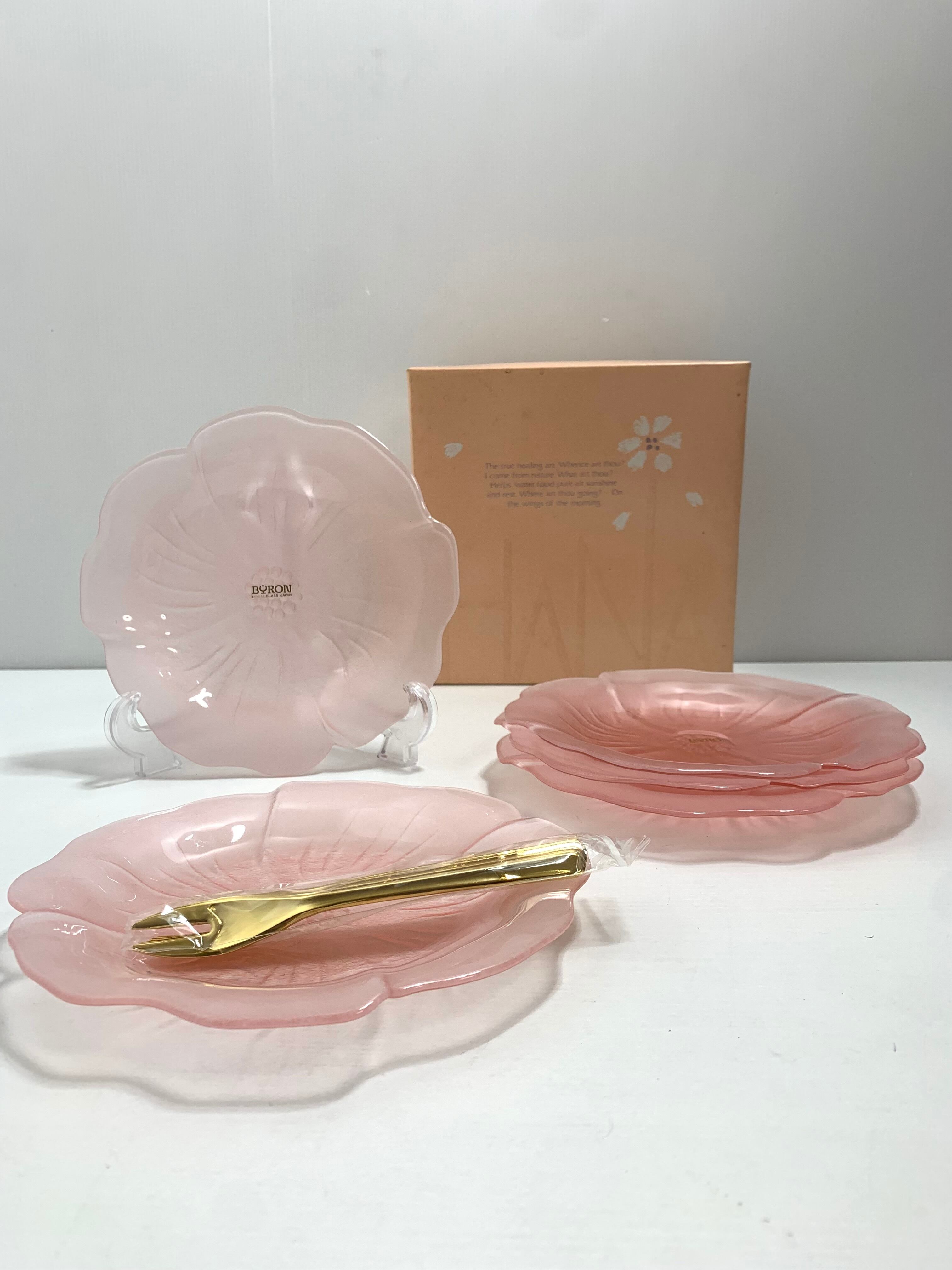 HANA TRAY BYRON 広田硝子 HIROTA GLASS 中皿5枚セット 花 ピンク