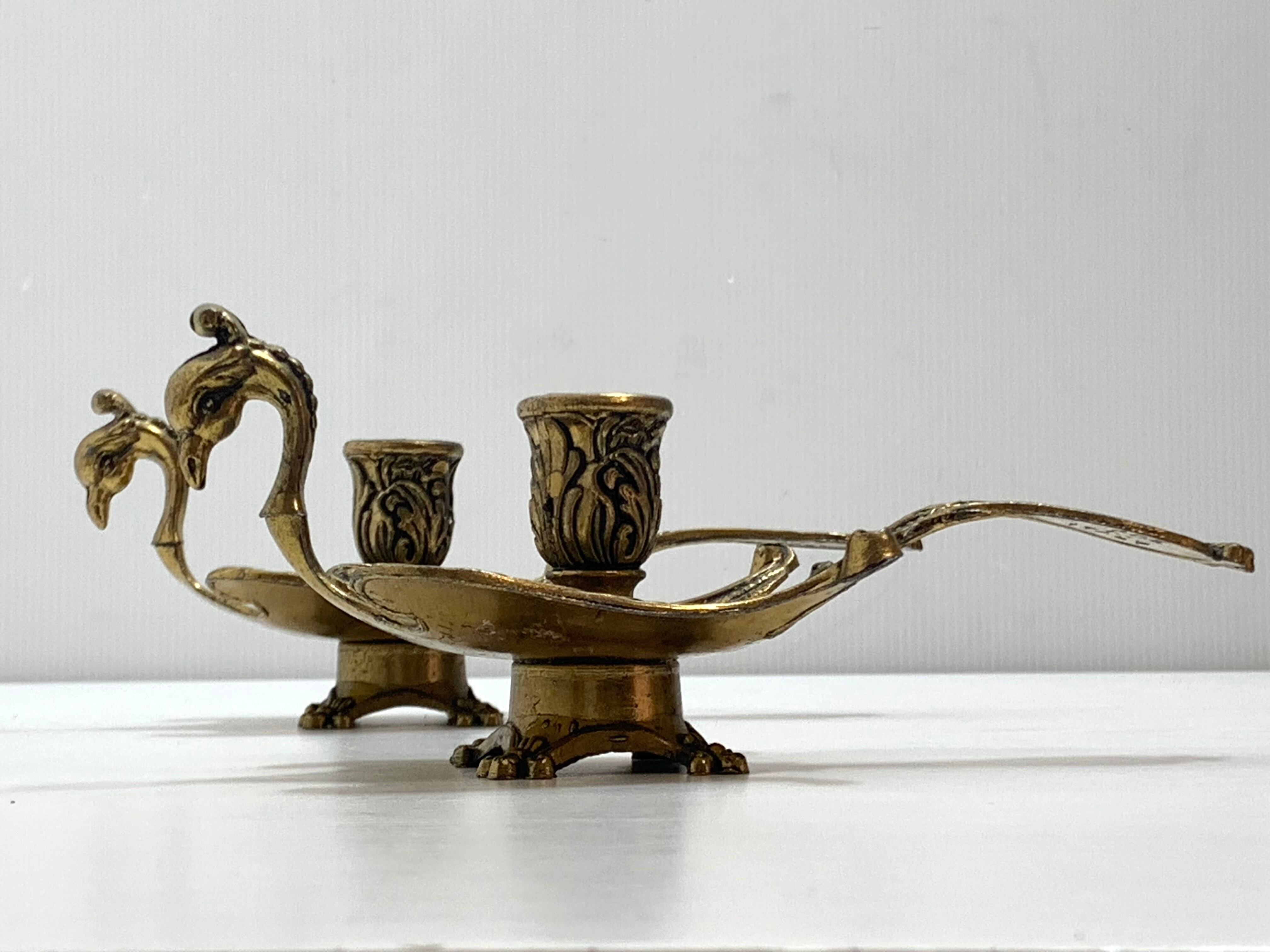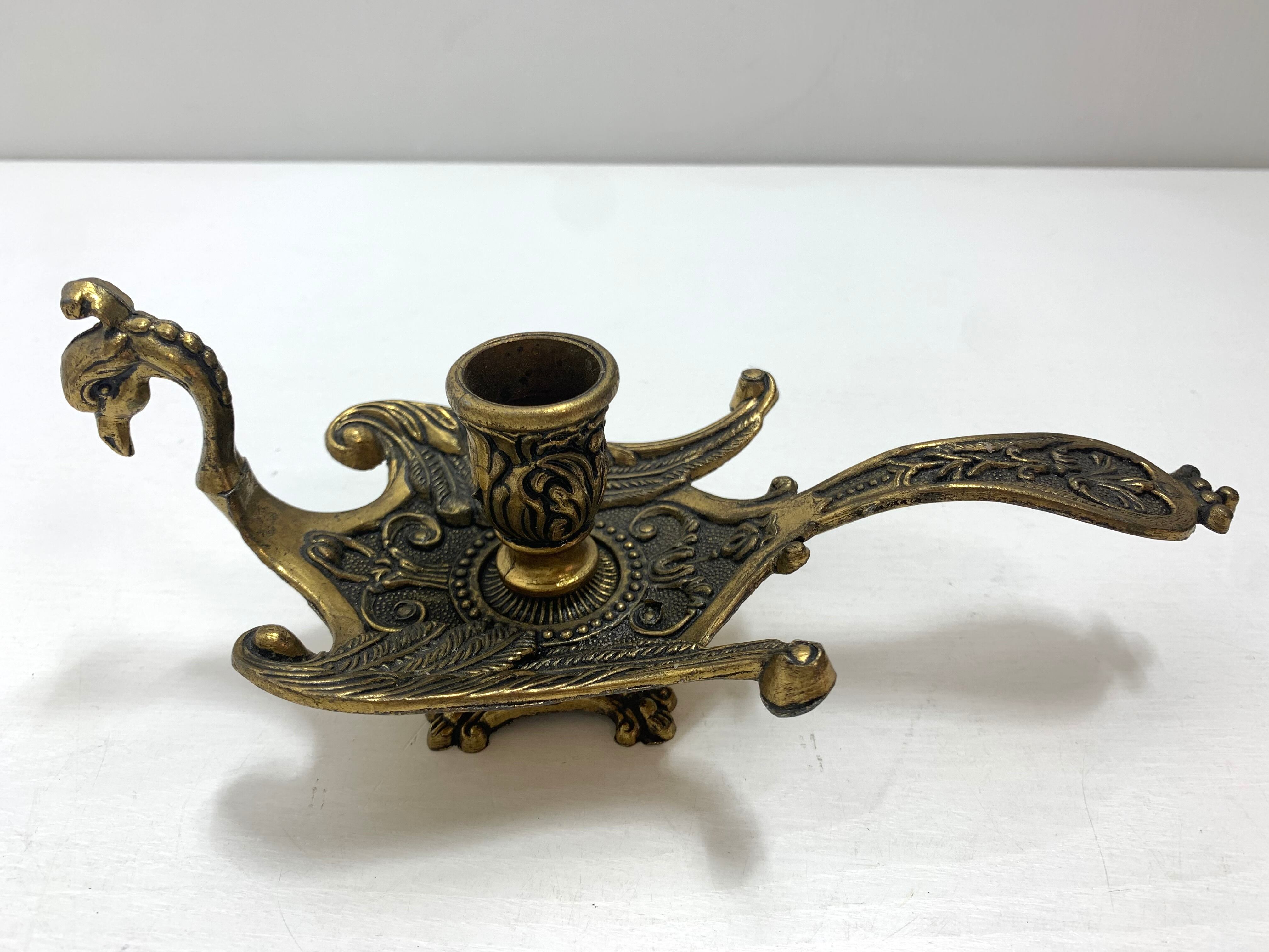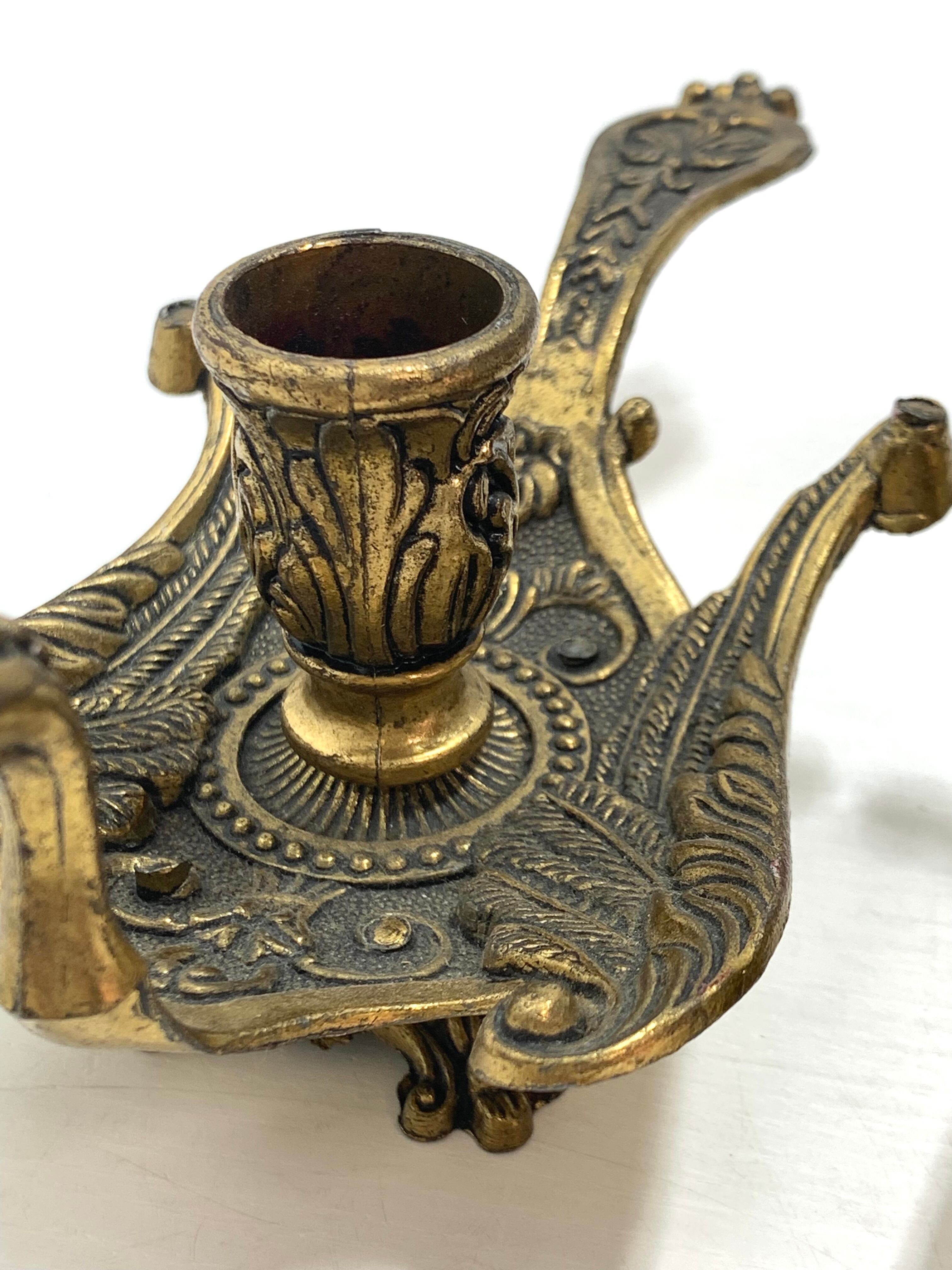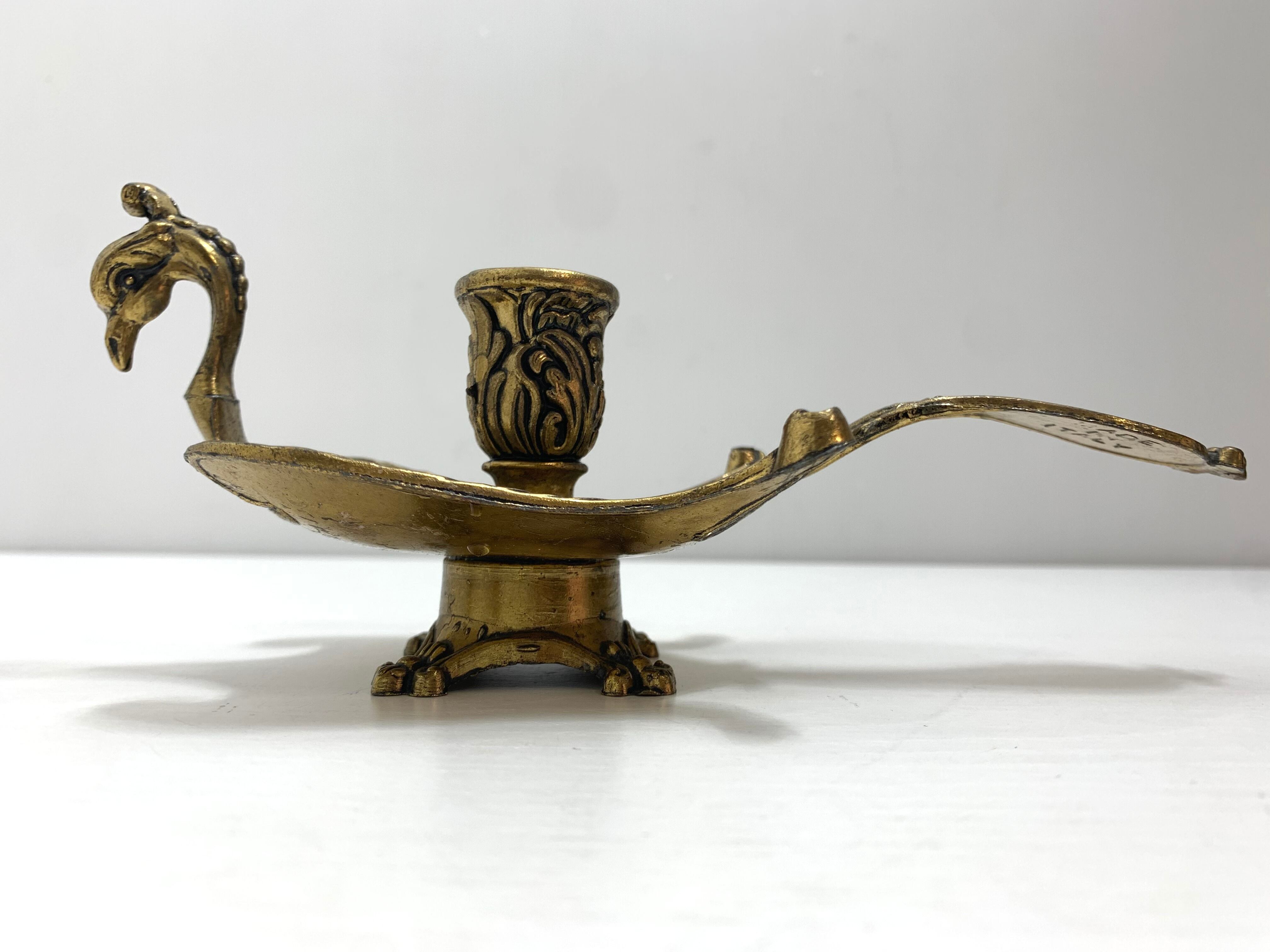 Vintage Italian Candlestick Holder Peacock Bird Ornate Brass Victorian