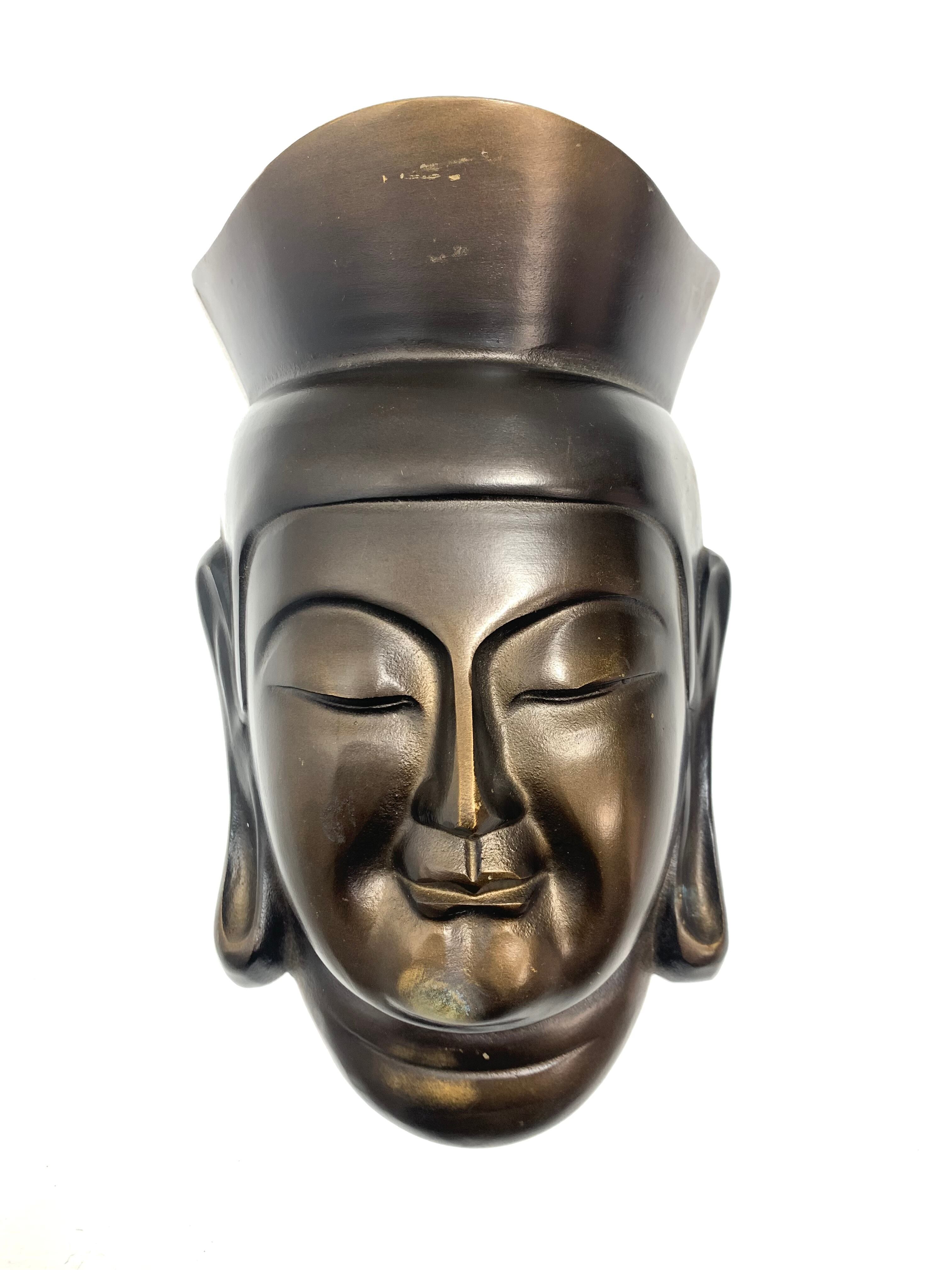 弥勒菩薩の仏面(大)は、その重厚な存在感と細部に至るまで精巧に作られた鋳鉄製の仏像です。この仏面は、未来の仏である弥勒菩薩を象徴しており、静寂と慈愛に満ちた表情が特徴です。