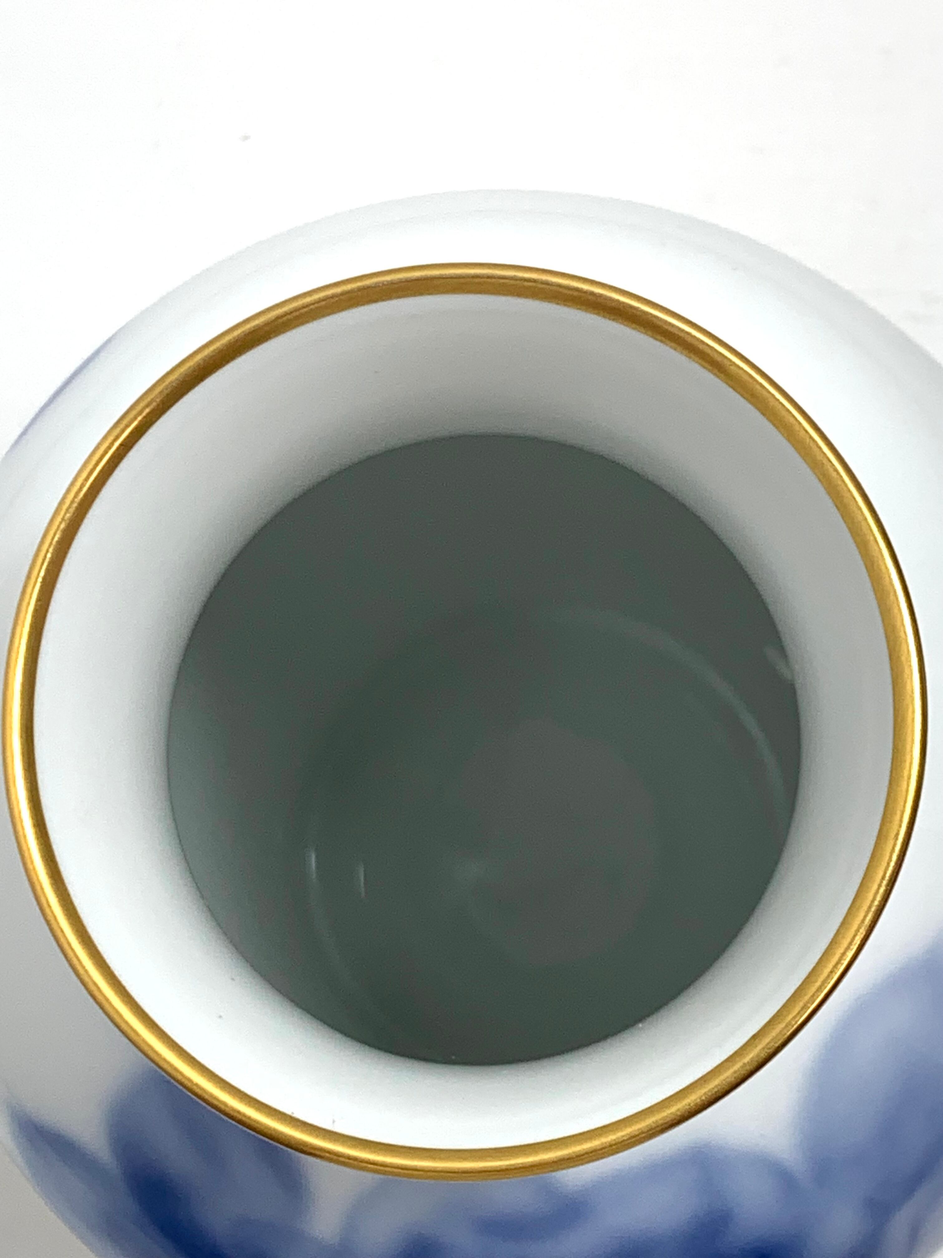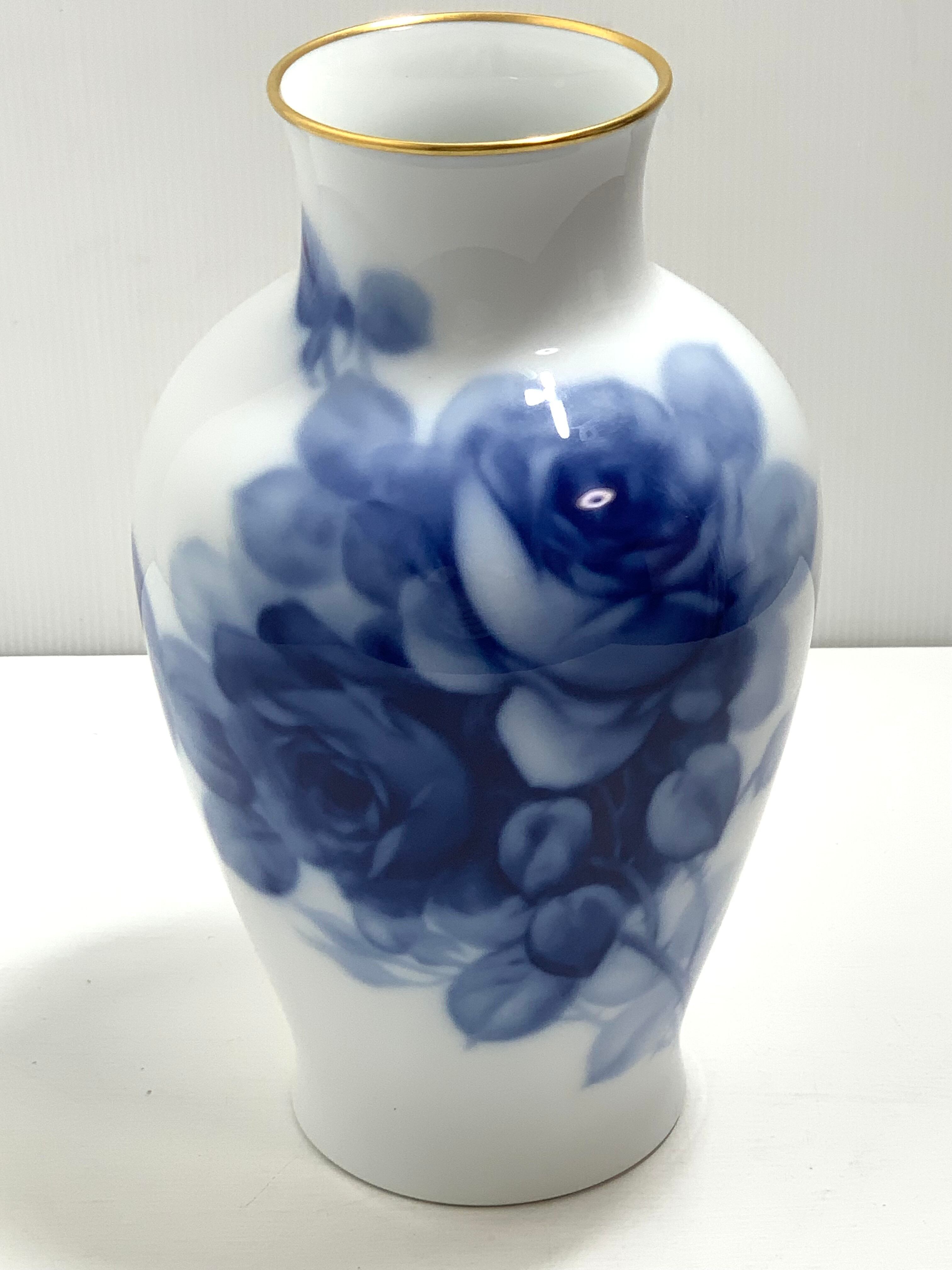 大倉陶園(オオクラトウエン) ブルーローズ 白磁器 花瓶 花器ベース 白地金彩青薔薇