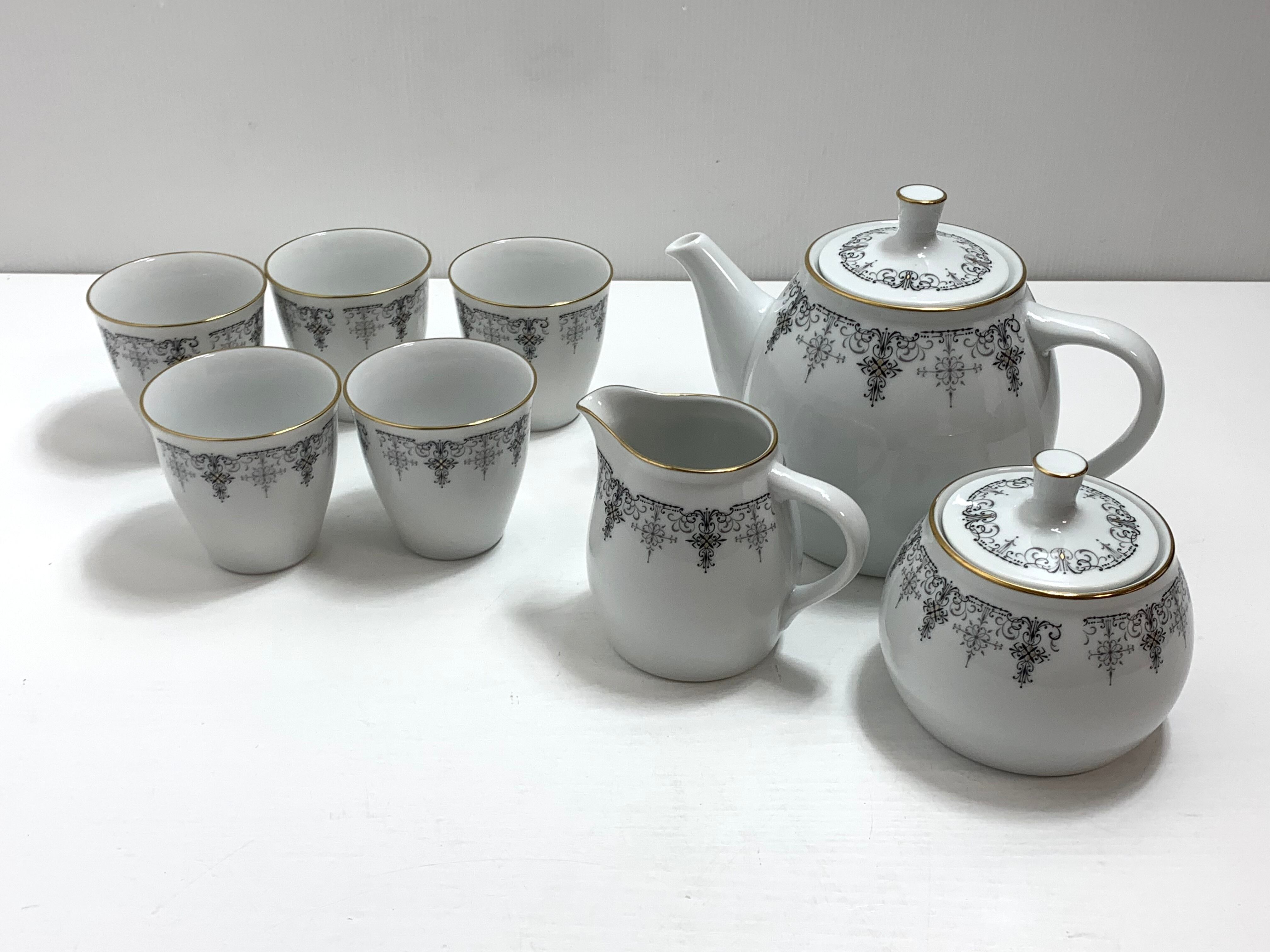 ノリタケ シルバーゲート ティポットセット&湯呑み 金×シルバー