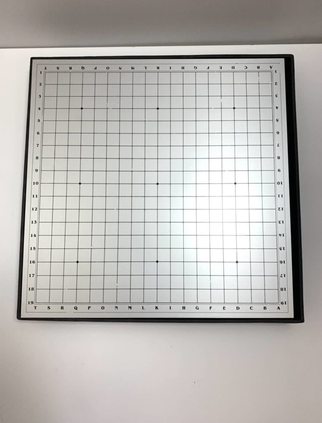 【超レア】銀アルミ碁盤 シルバー アルファベット数字文字盤 碁石(シルバー,ブラック)黒レザー袋 スペアあり 35×36 、 重さ3,5kg