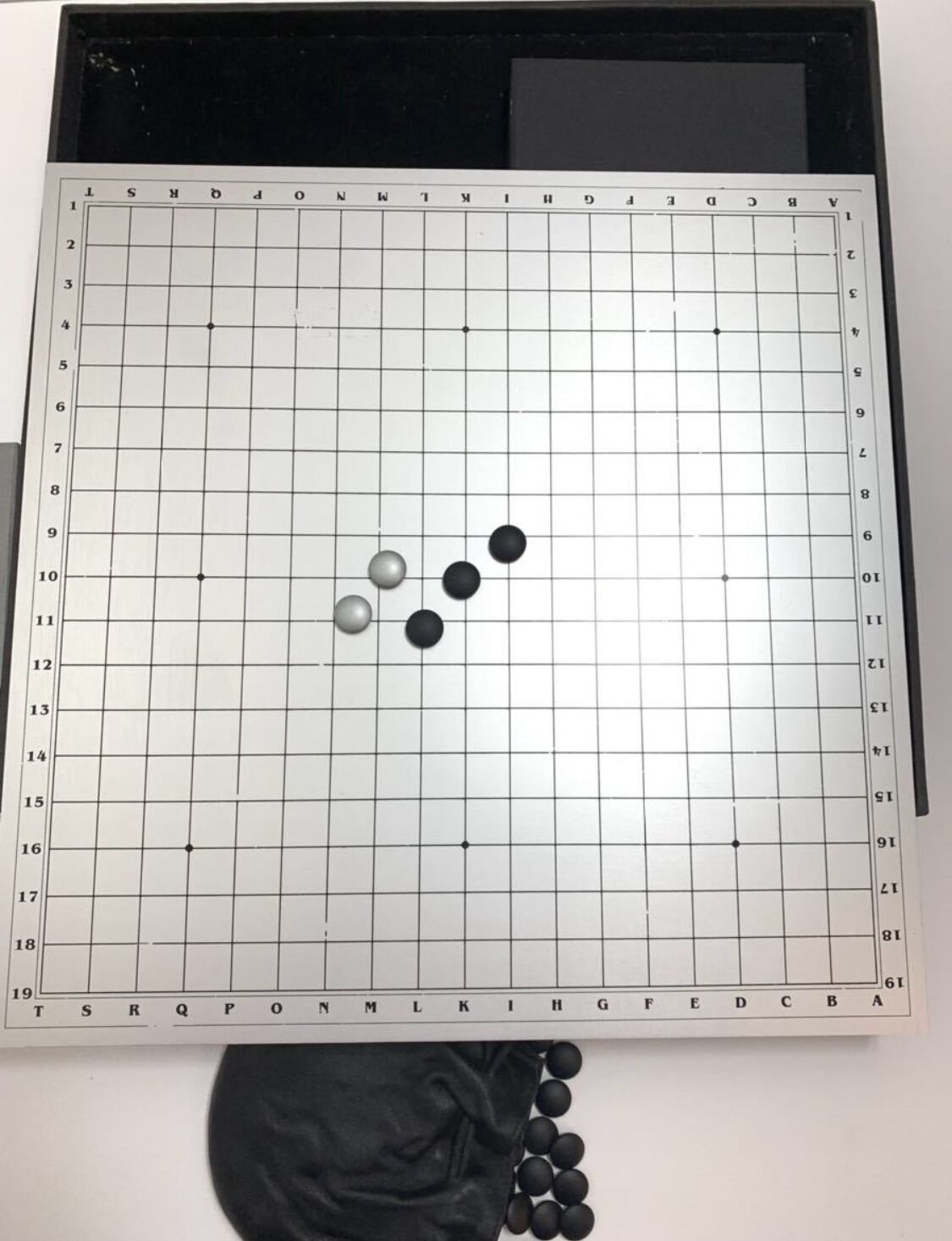 【超レア】銀アルミ碁盤 シルバー アルファベット数字文字盤 碁石(シルバー,ブラック)黒レザー袋 スペアあり