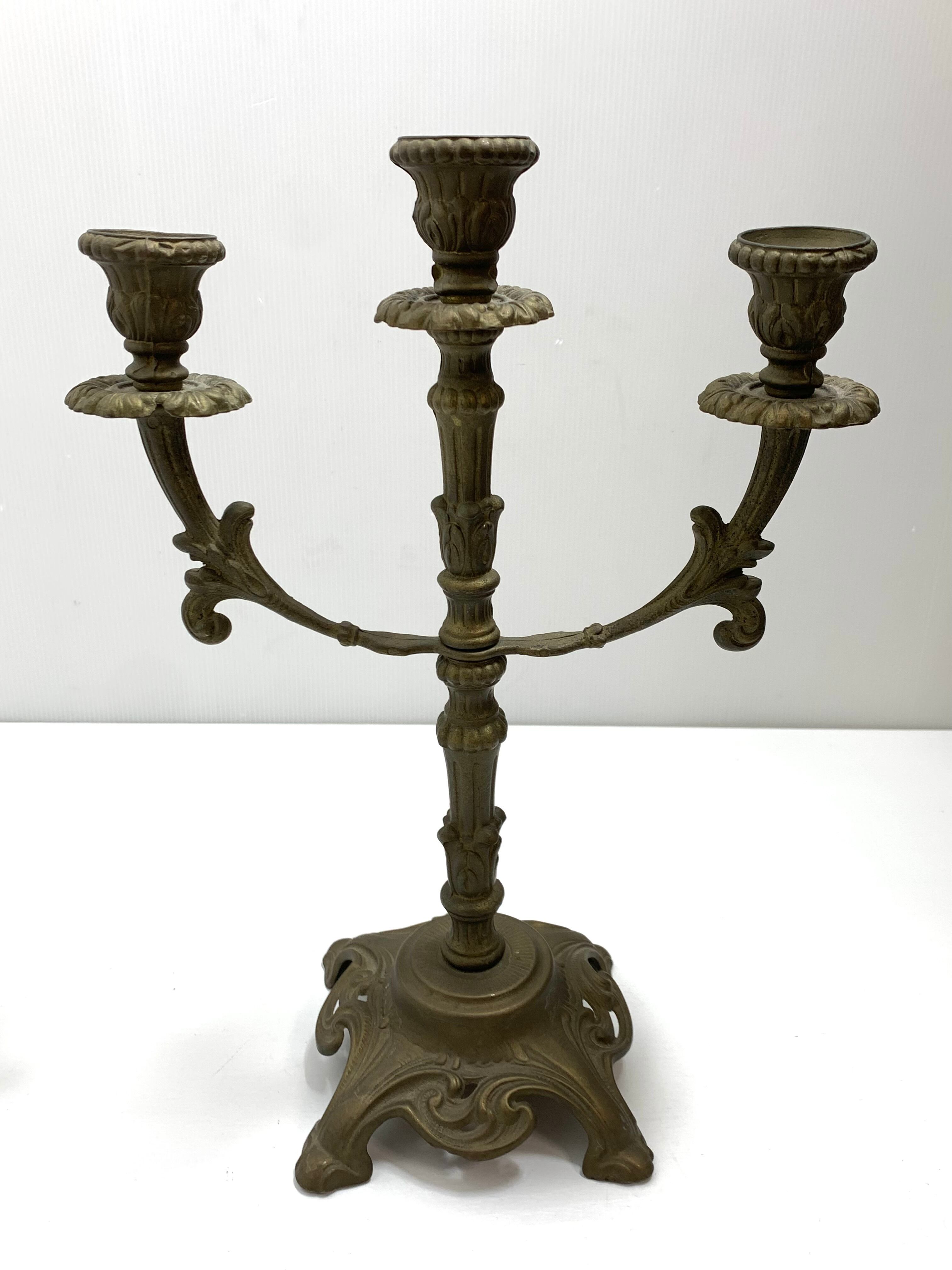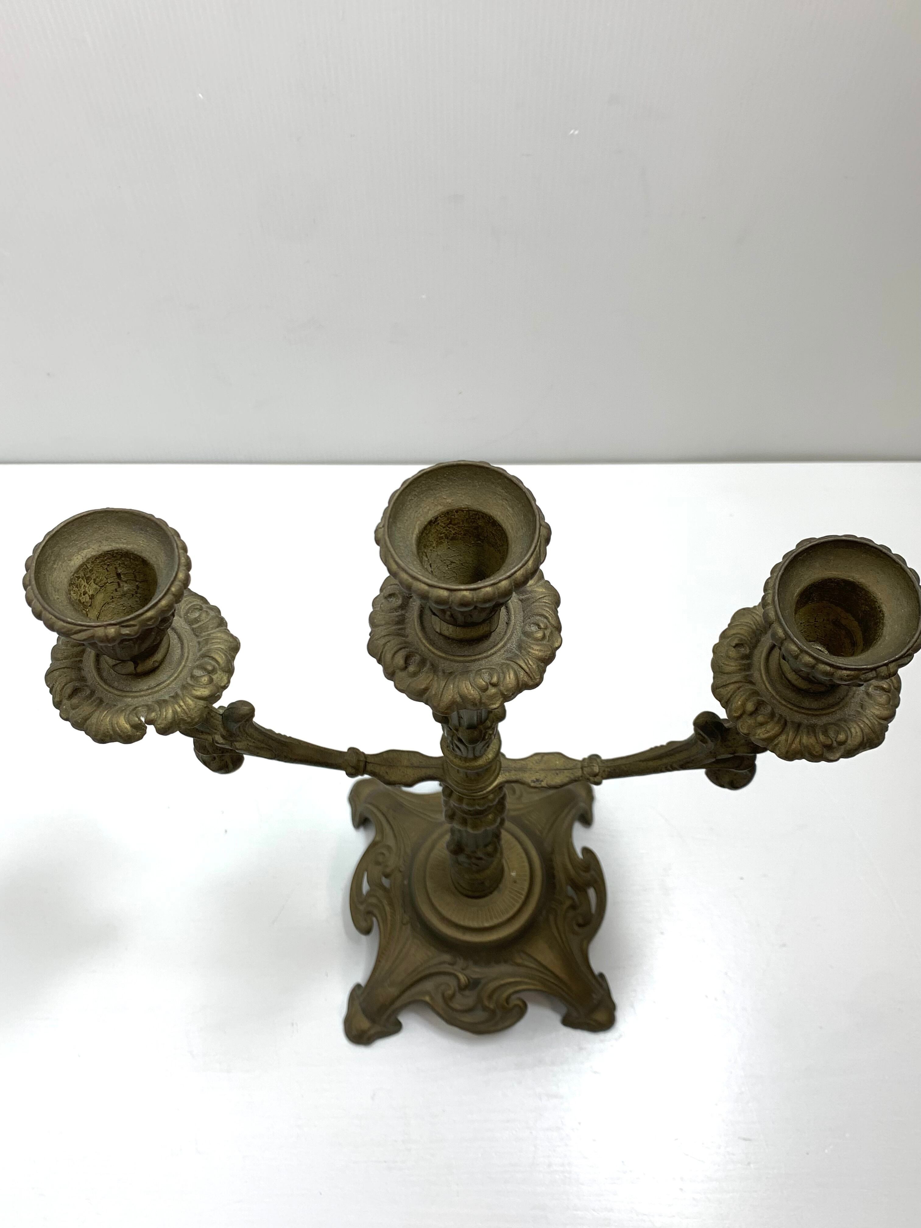 真鍮製の3灯キャンドルホルダー(カンデラブラ)