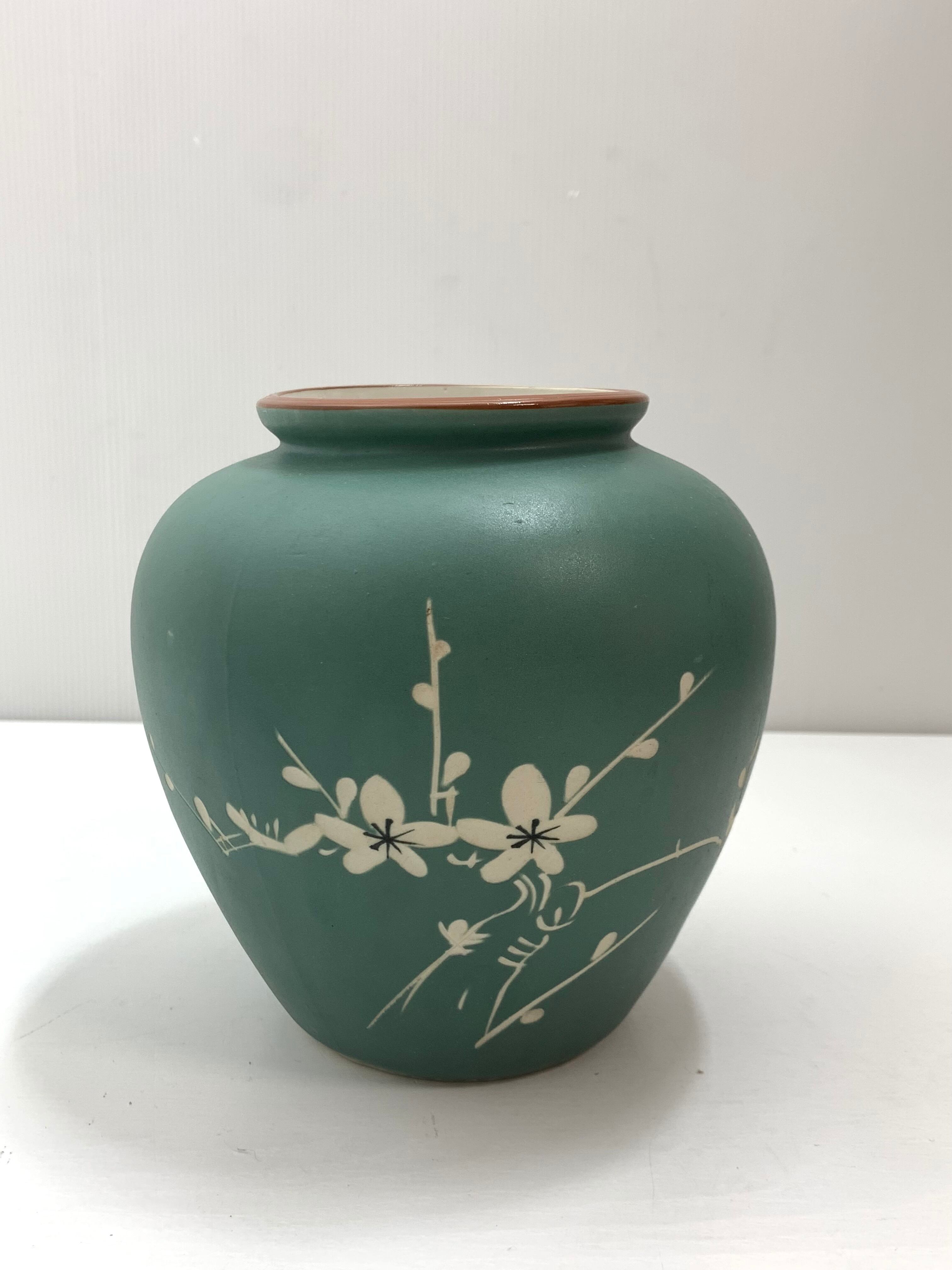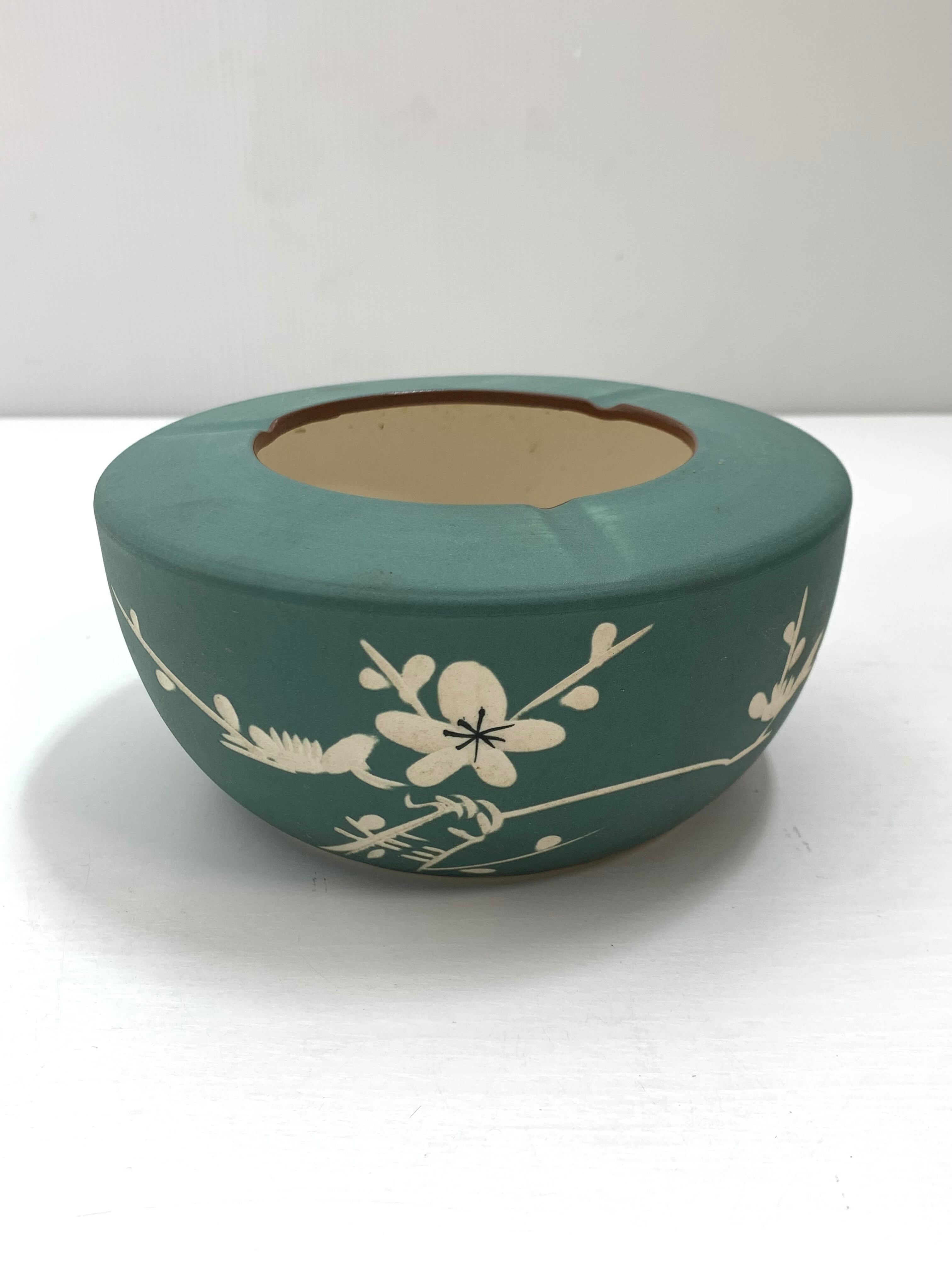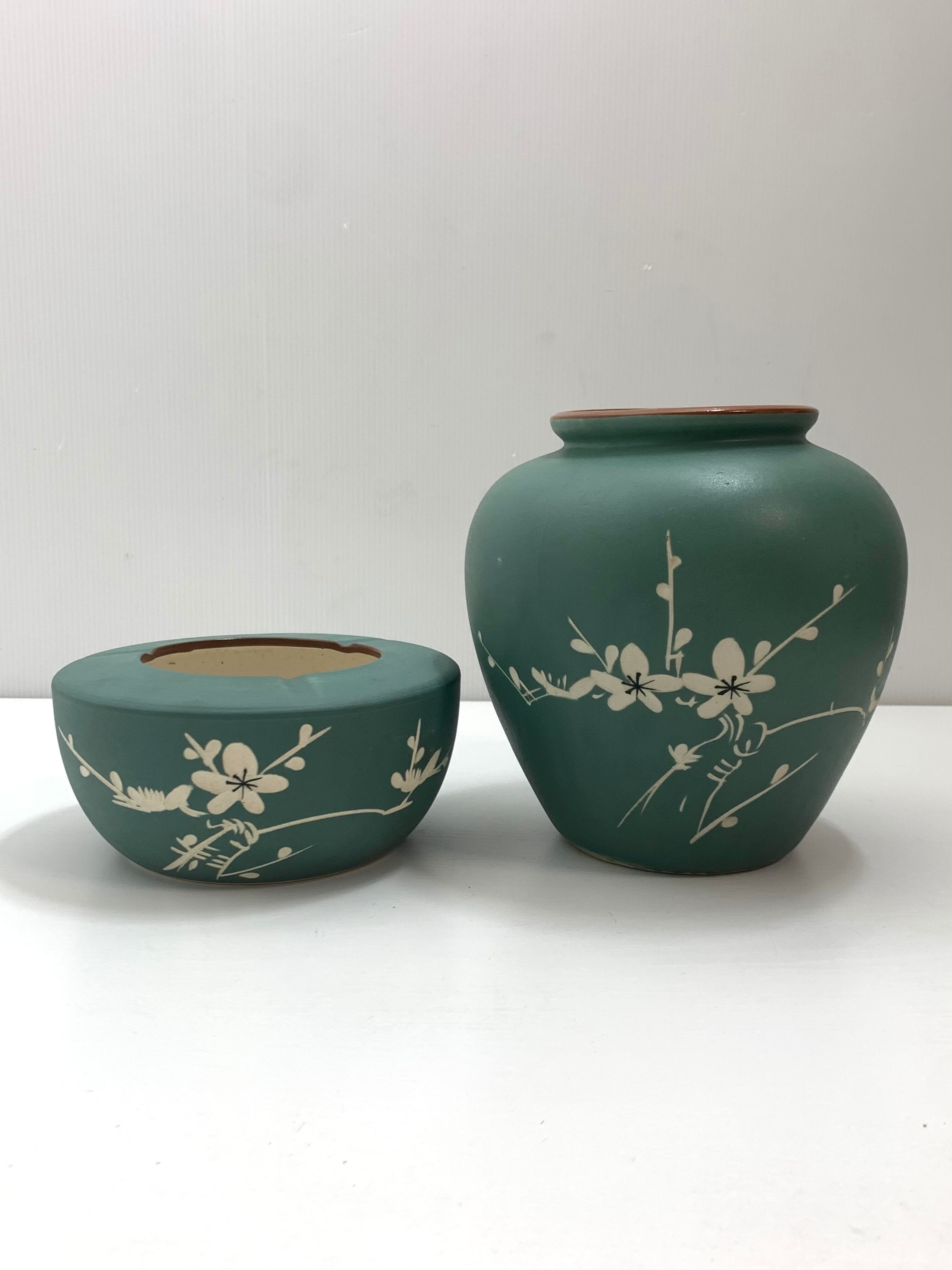 東泉窯 応接揃い 花瓶と灰皿セット 陶器 緑 梅