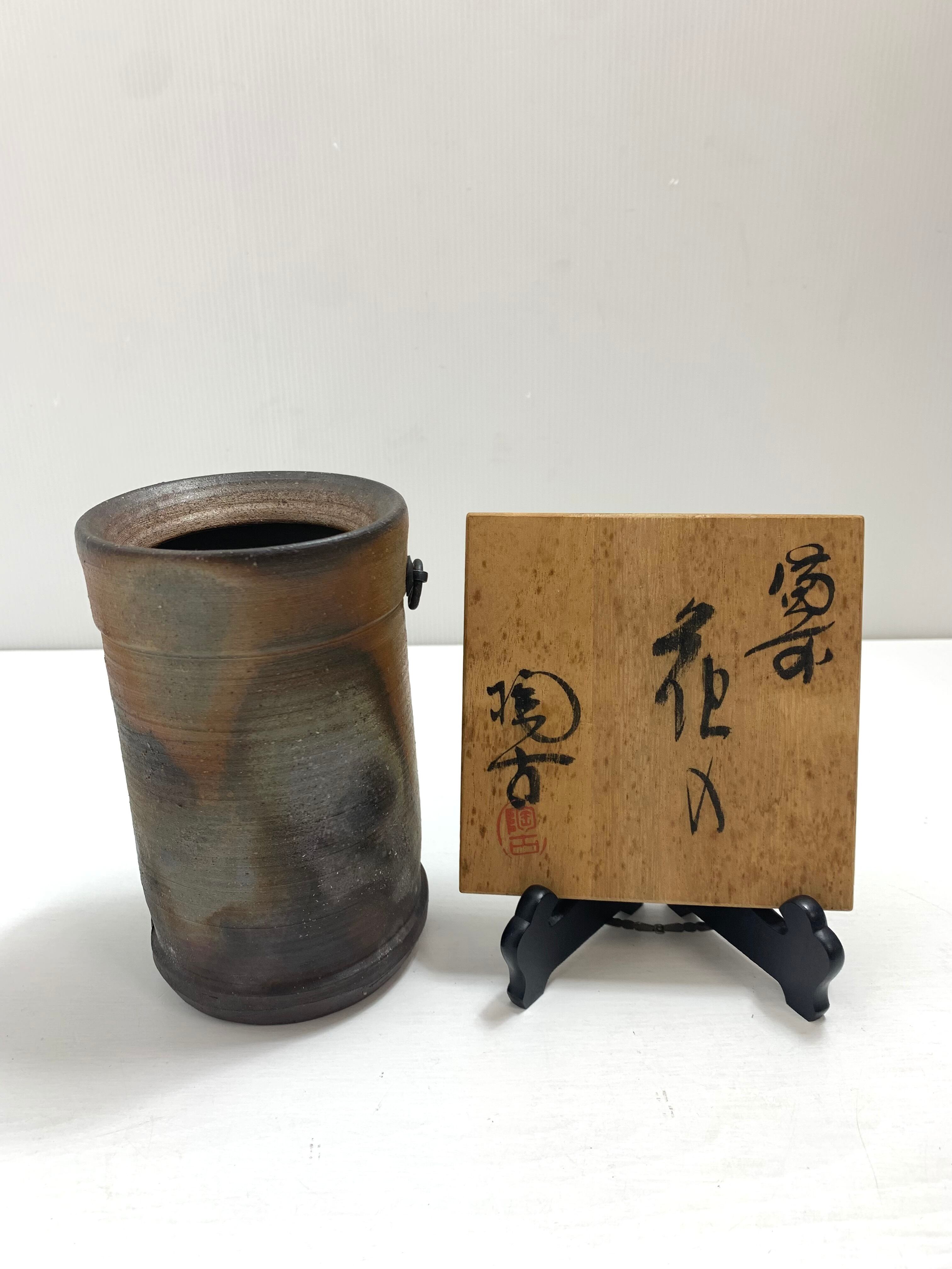 備前焼 小西陶古「旅枕」花入 耳付 共箱