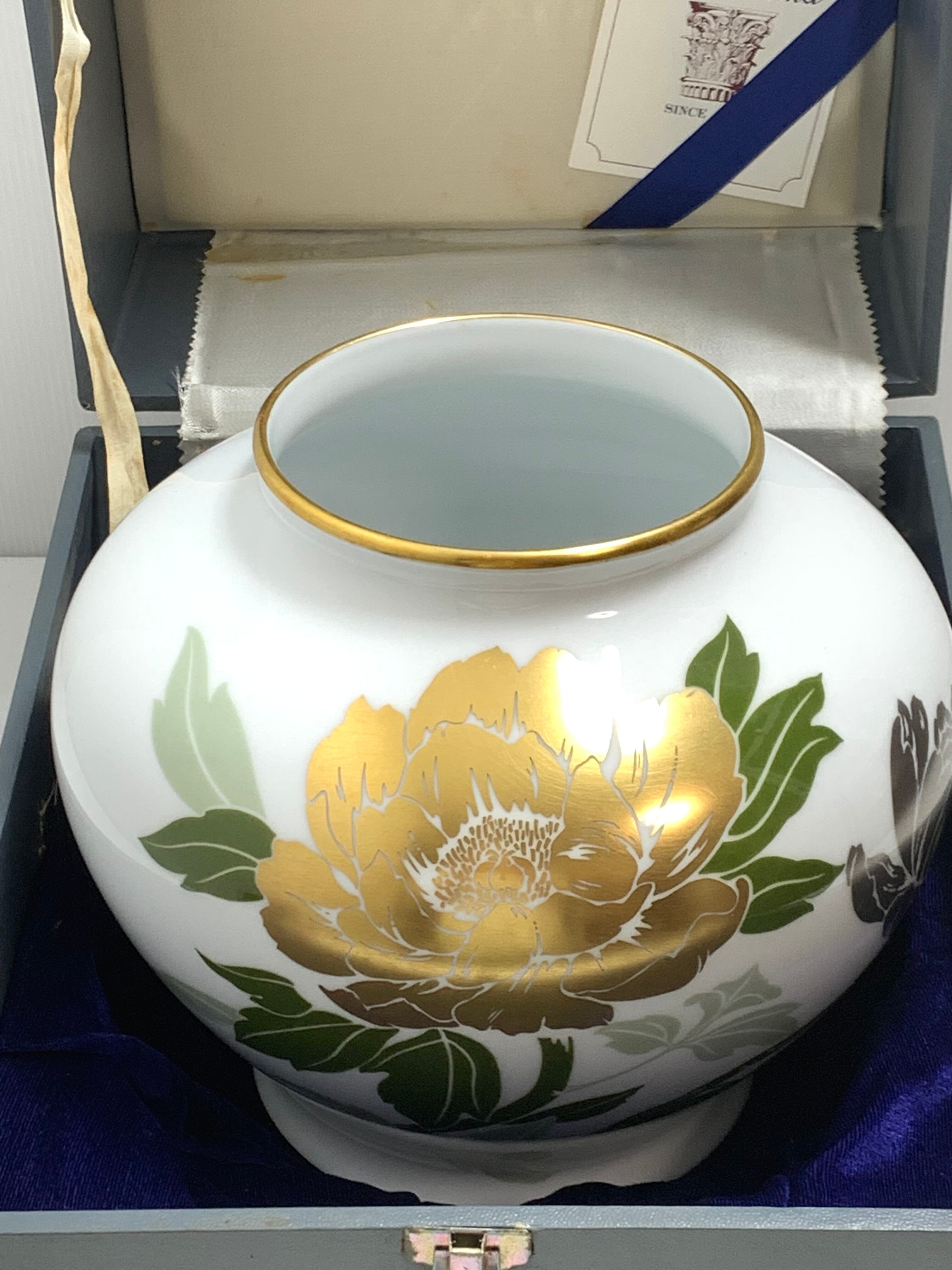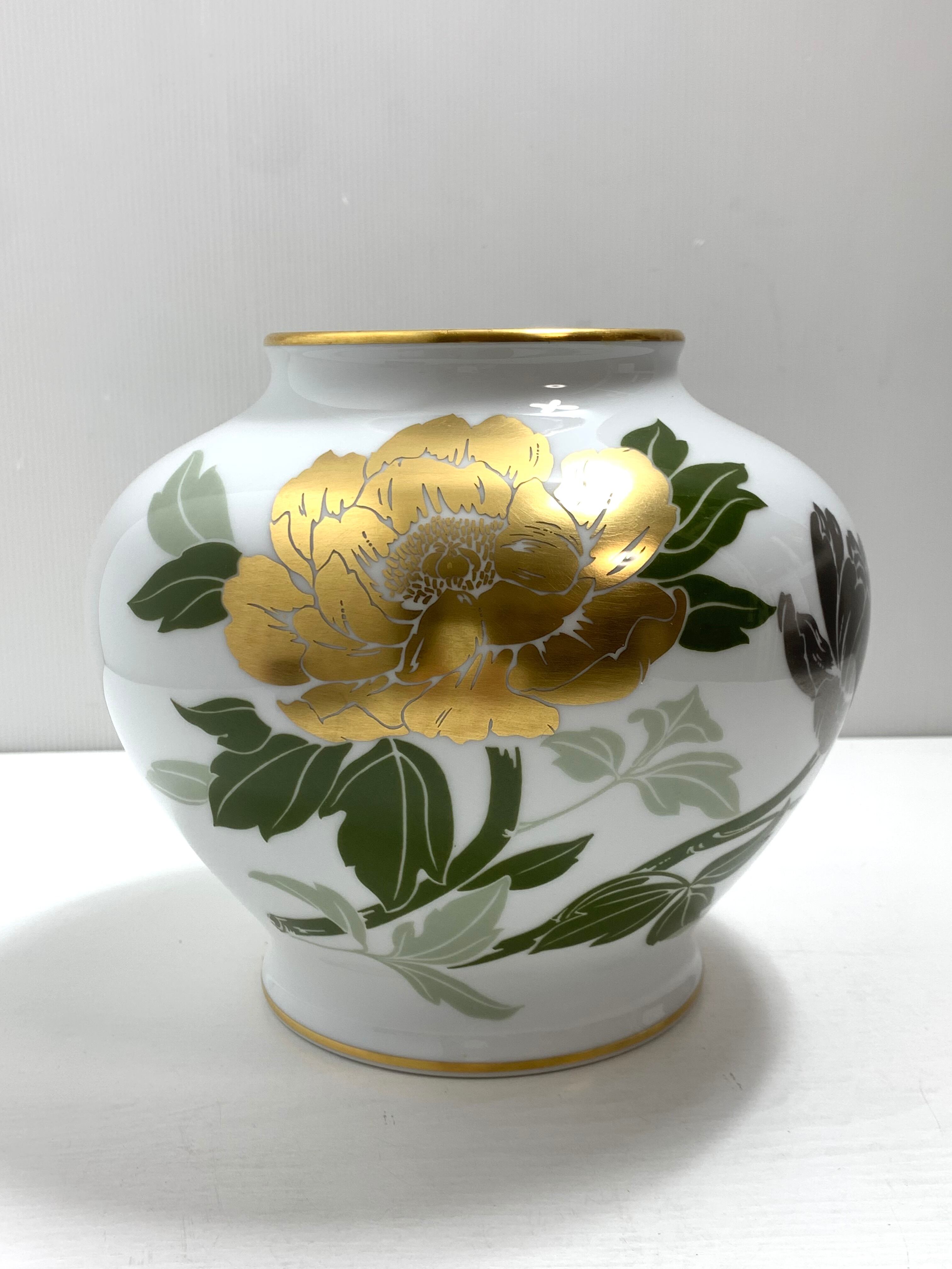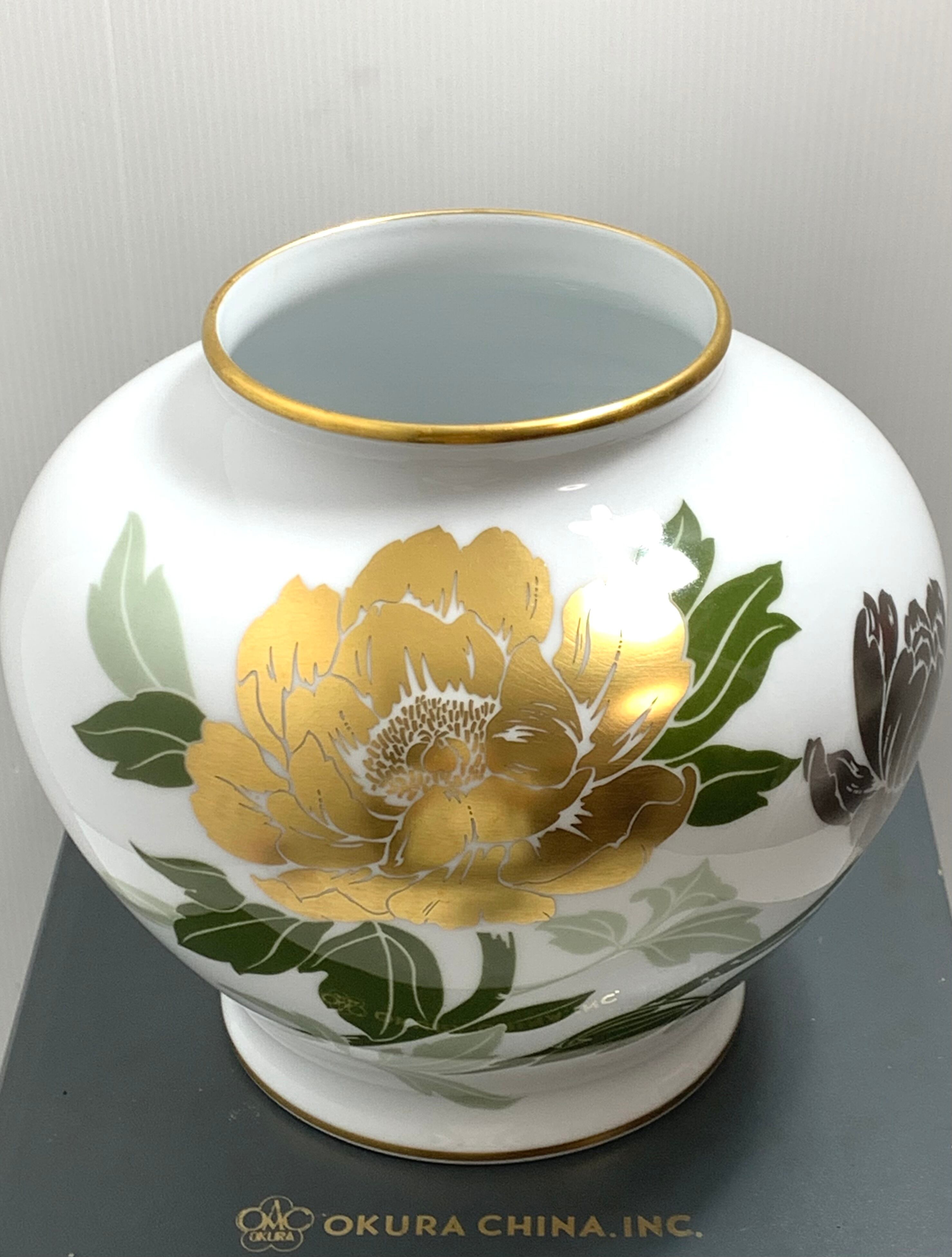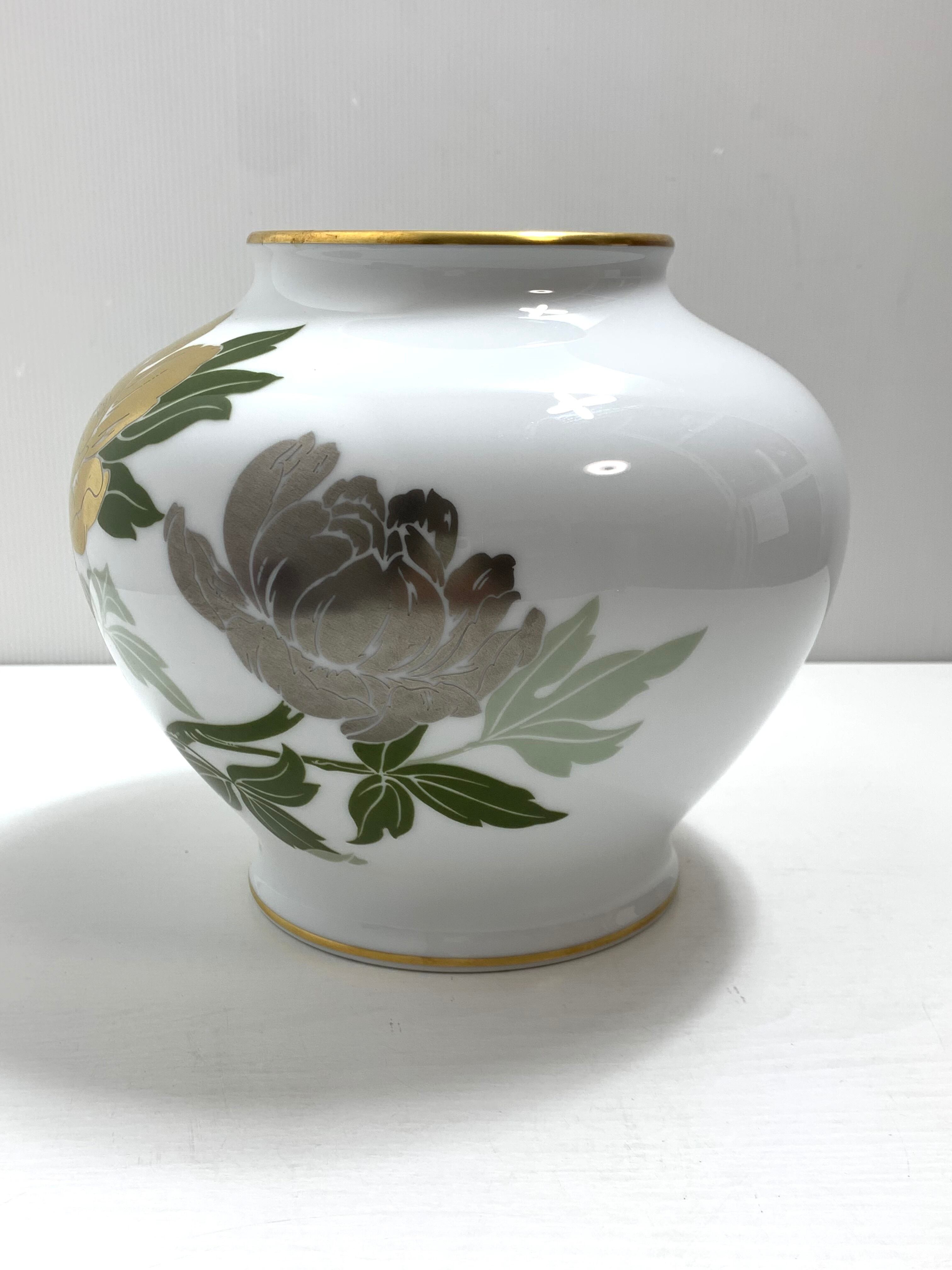 大倉陶園 花器 金・銀彩 白磁器 共箱