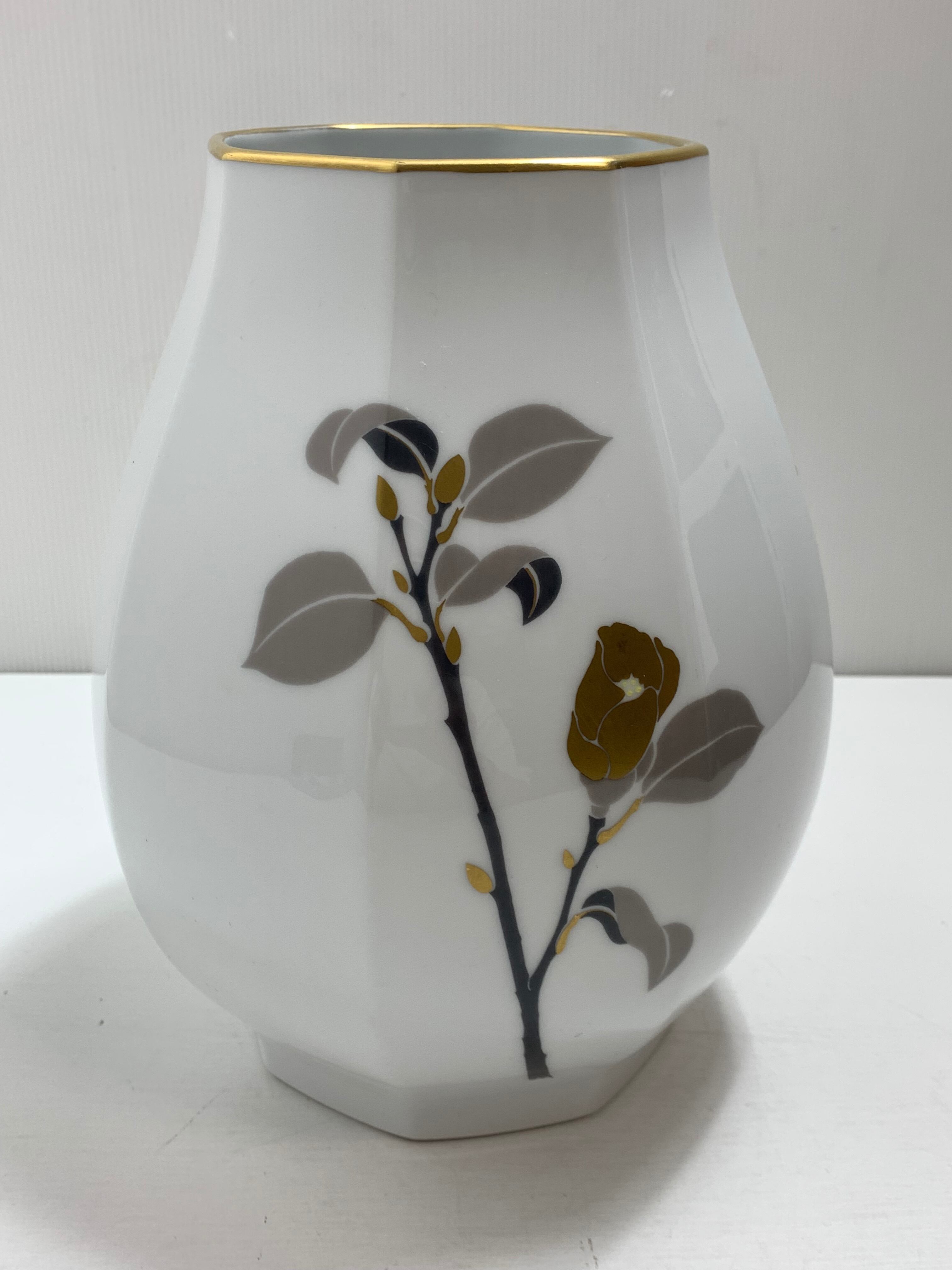 大倉陶園 八角花器 金銀彩 白磁器