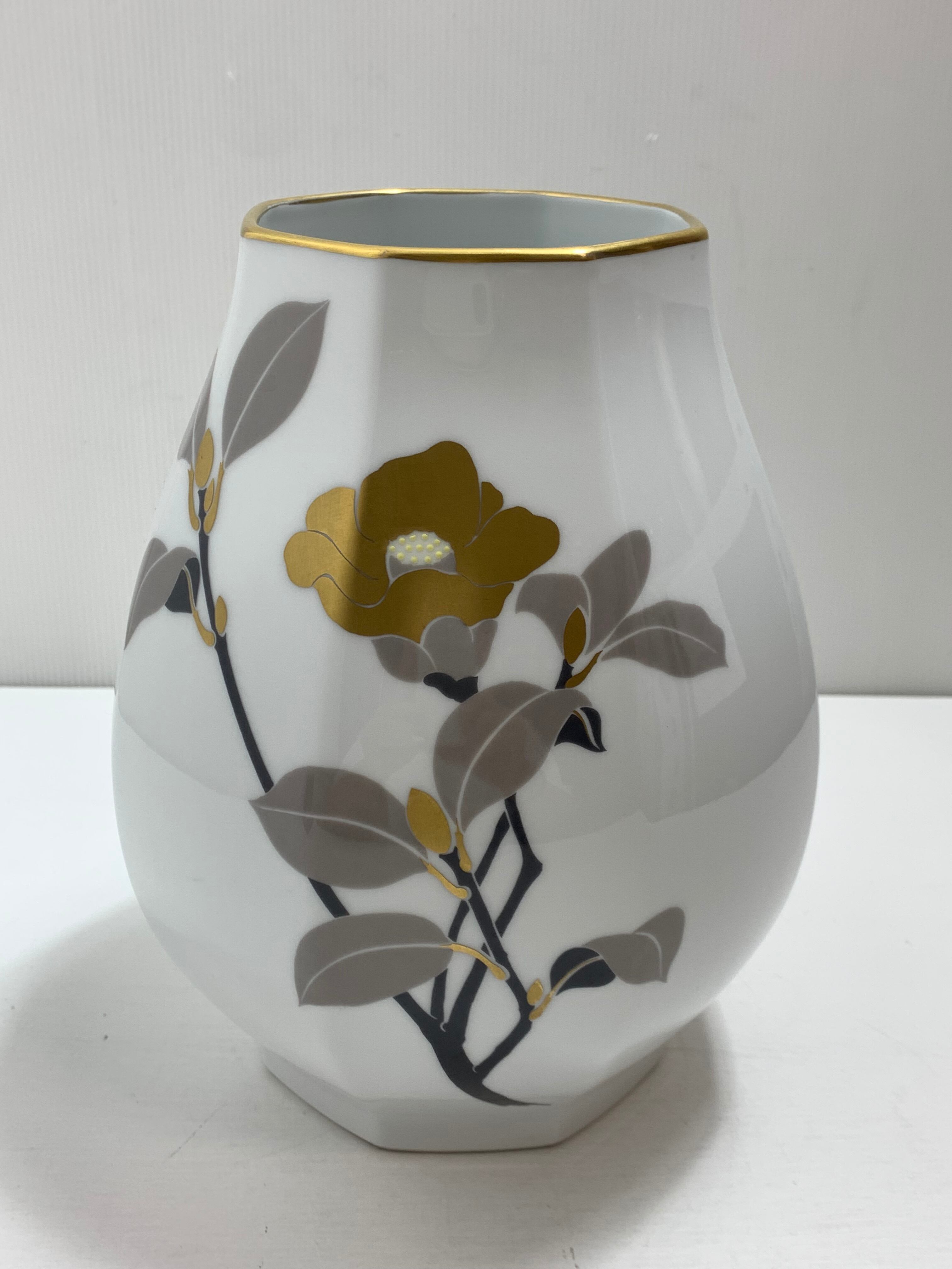 この大倉陶園の八角花器は、洗練されたデザインと卓越した技術を体現した、時代を超えた美しさを持つ逸品です。