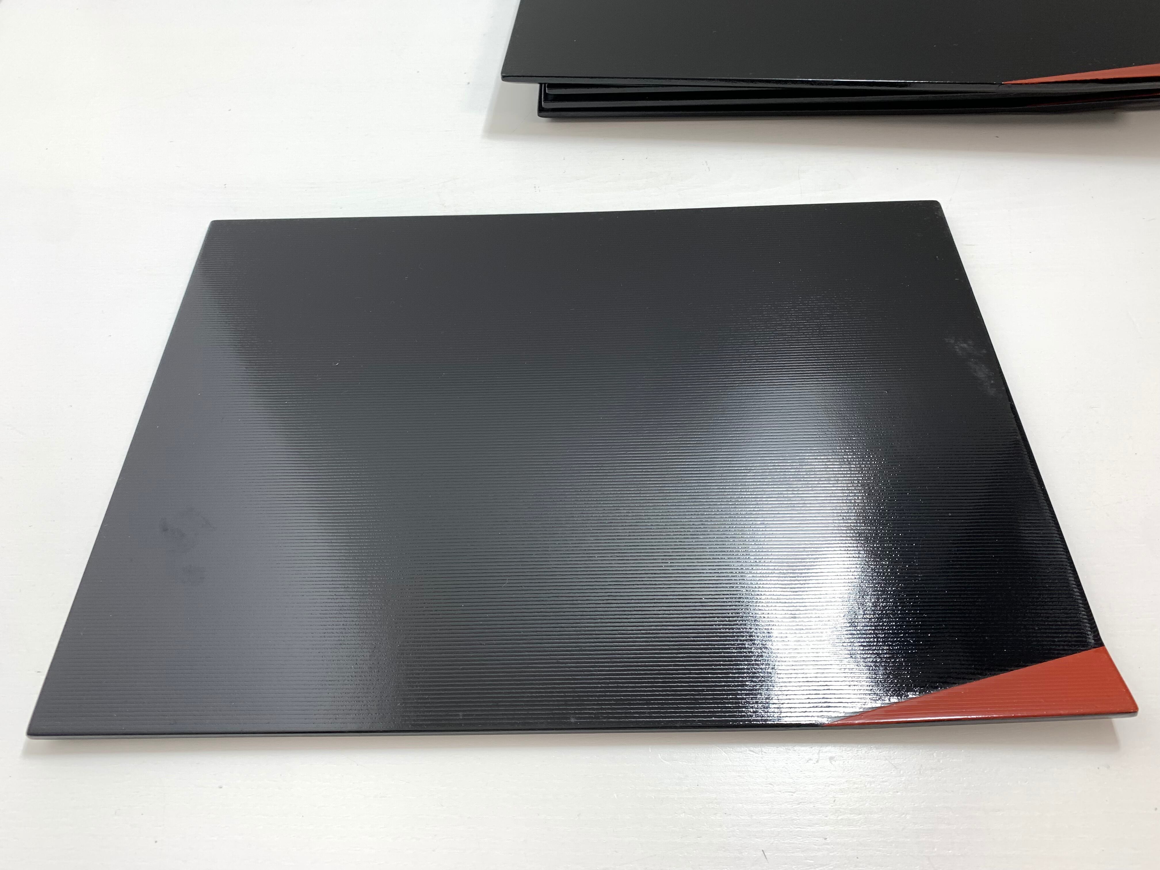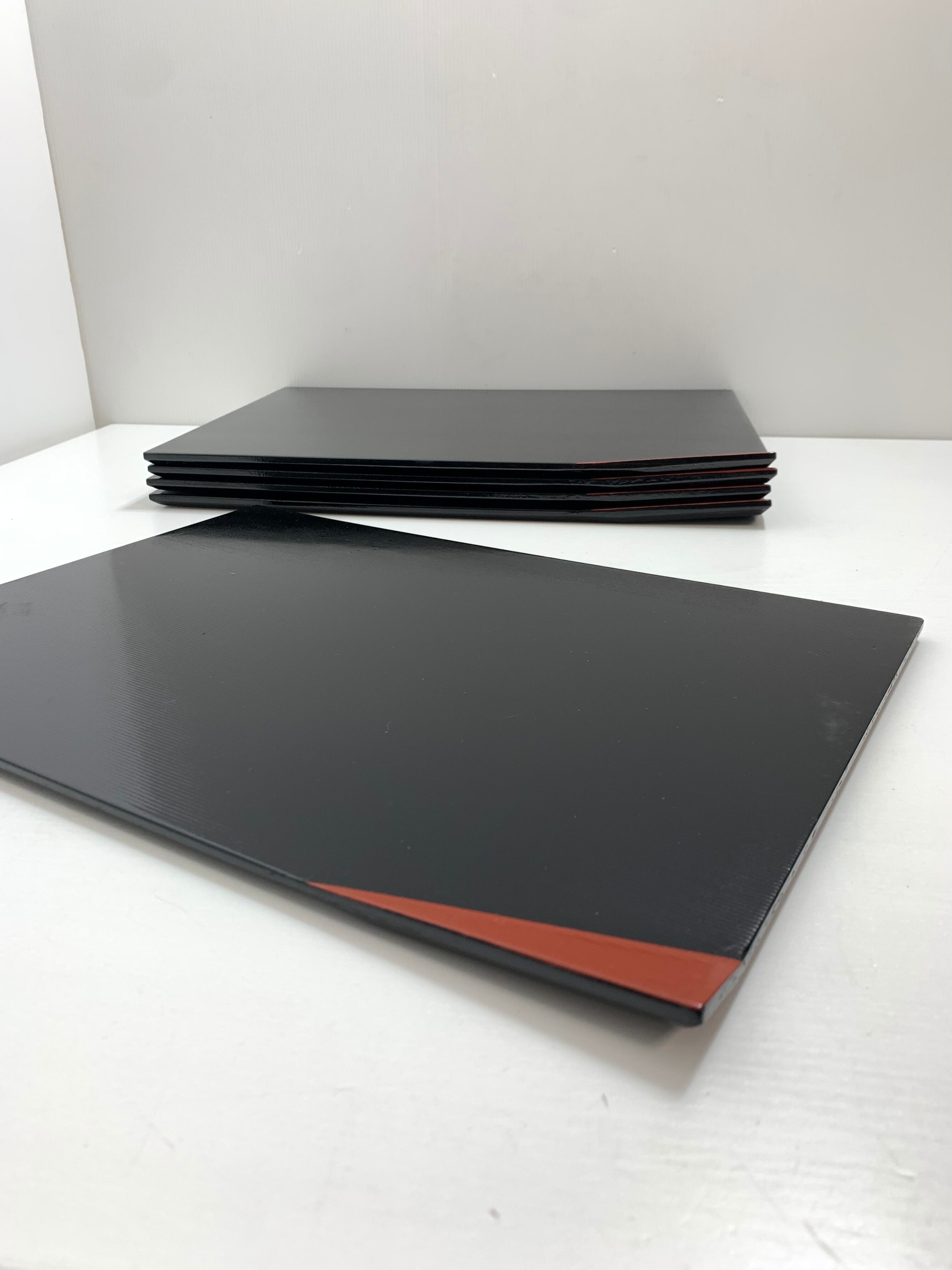それぞれの膳は、隅が少し折れた特徴的な形状で、料理を引き立てるデザインです。和食はもちろん、洋食やデザートなど、どんなお料理も優雅に演出します。軽量で扱いやすく、丈夫な造りのため、日常使いから特別な会席まで幅広いシーンでご利用いただけます。
