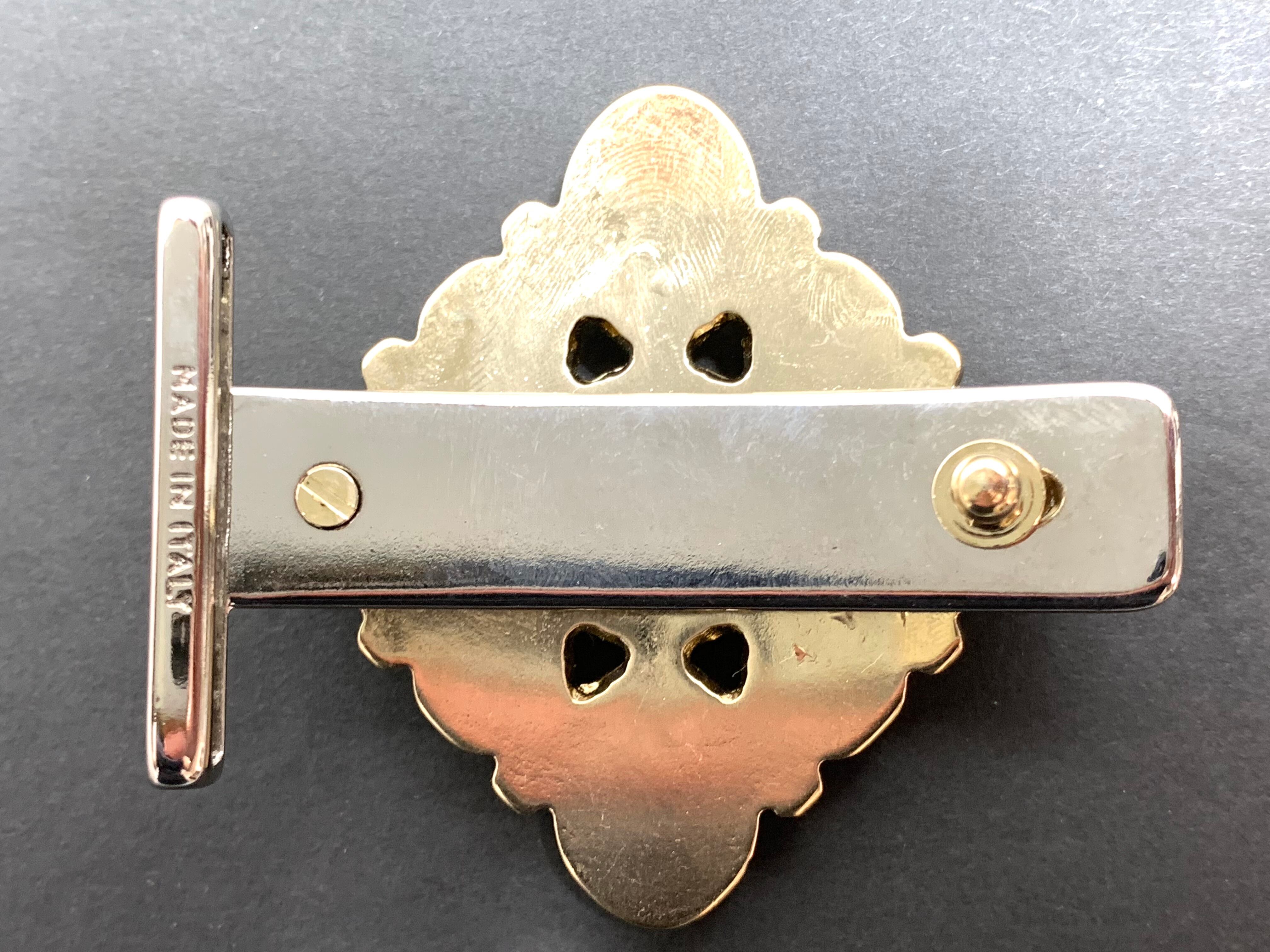こちらは、イタリア製の高品質トップ式バックル4個セットです。3.5mm幅のベルトに対応しており、洗練されたデザインが特徴です。琥珀、イエロー、ブラウンの美しい色合い。職人による丁寧な仕上げで、エレガントさと機能性を兼ね備えた一品です。ビジネスやカジュアルなスタイルにもぴったりで、装いに個性をプラスします。イタリアの伝統とクラフトマンシップを感じることができるバックルをぜひお試しください。