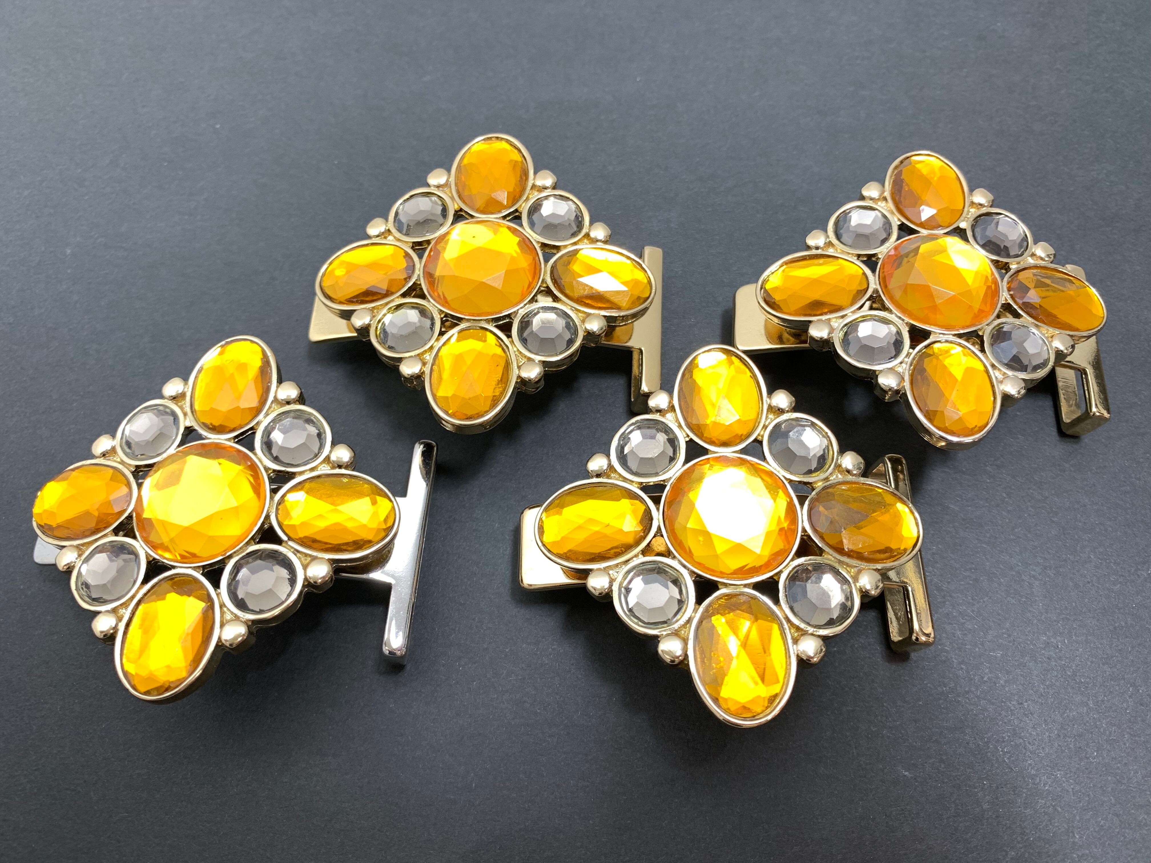 イタリア製 トップ式バックル 3.5mm 4個セット ダイヤモンド形(琥珀,イエロー,ブラウン)