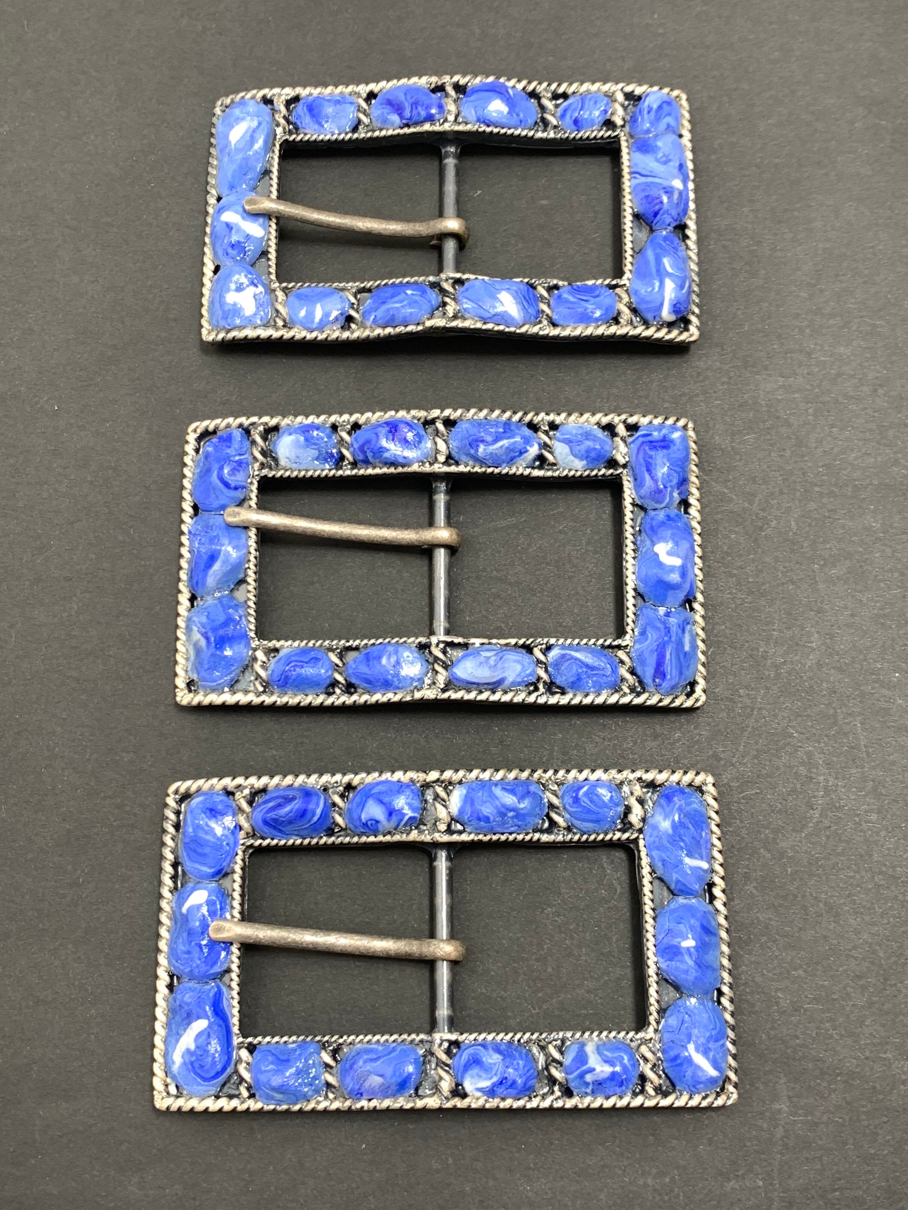 イタリア製ピンバックル3mm (ブルー) Rectangle 3個