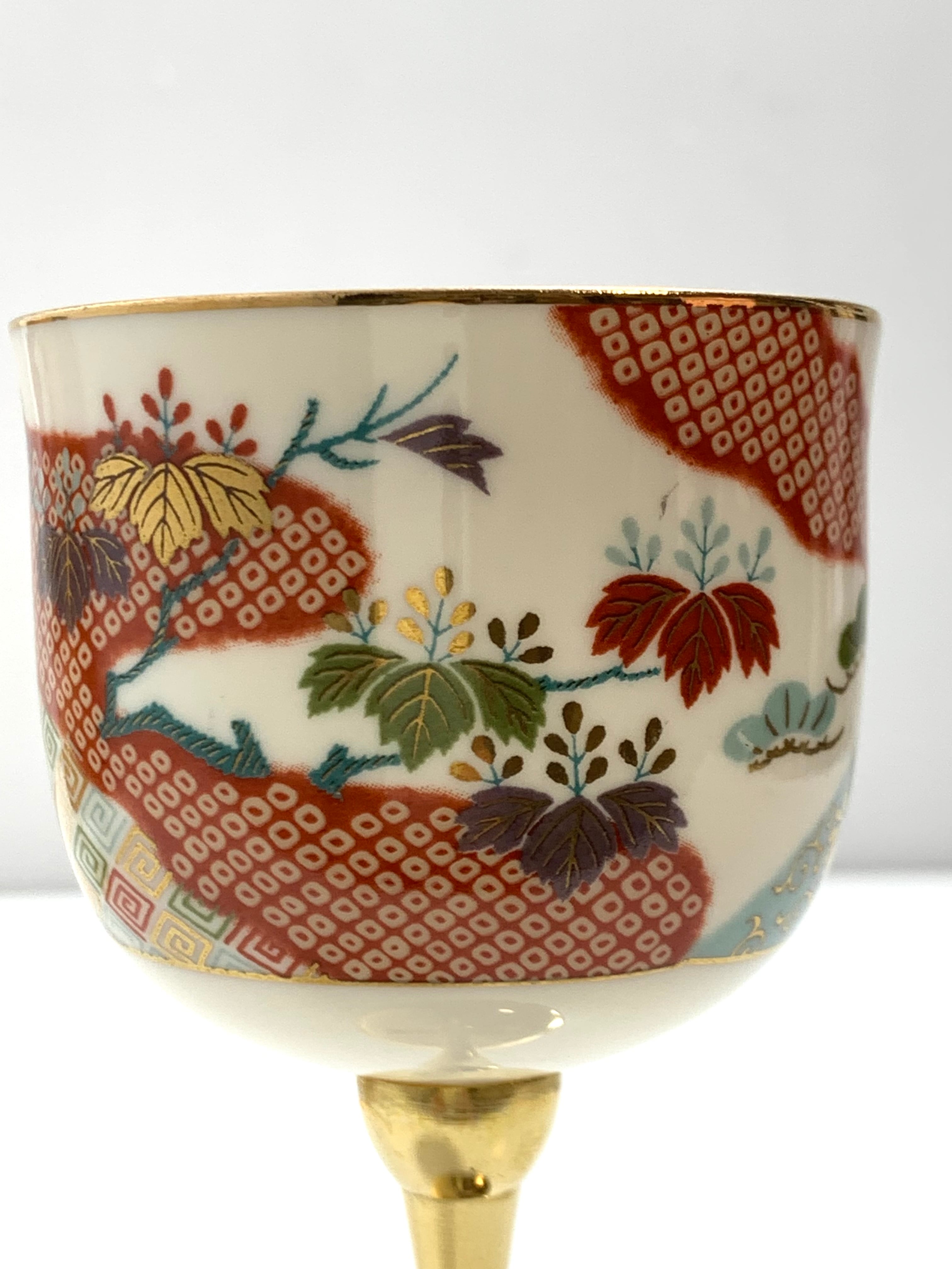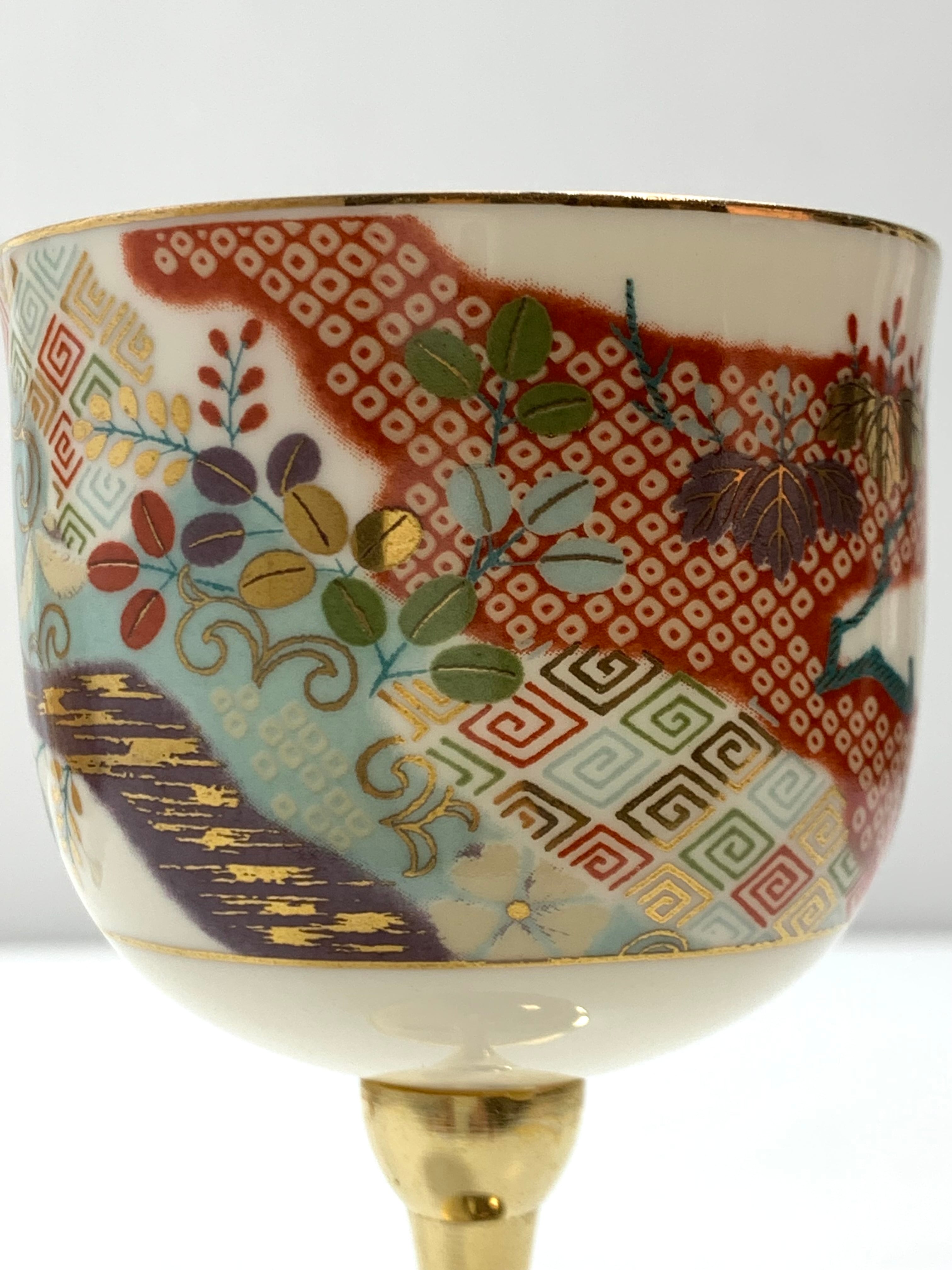 伝統の京友禅を用いた老舗千總の雛小袖ペアワイングラスです。金色と和柄が美しく調和し、特別なシーンを華やかに演出します。サイズは、口径6.5cm、高さ14cmで、手に馴染むデザイン。ワイングラスとしてだけでなく、贈り物やインテリアとしても最適です。上品な桐箱に入っています。京友禅の伝統美を感じながら、優雅なひとときをお楽しみください。