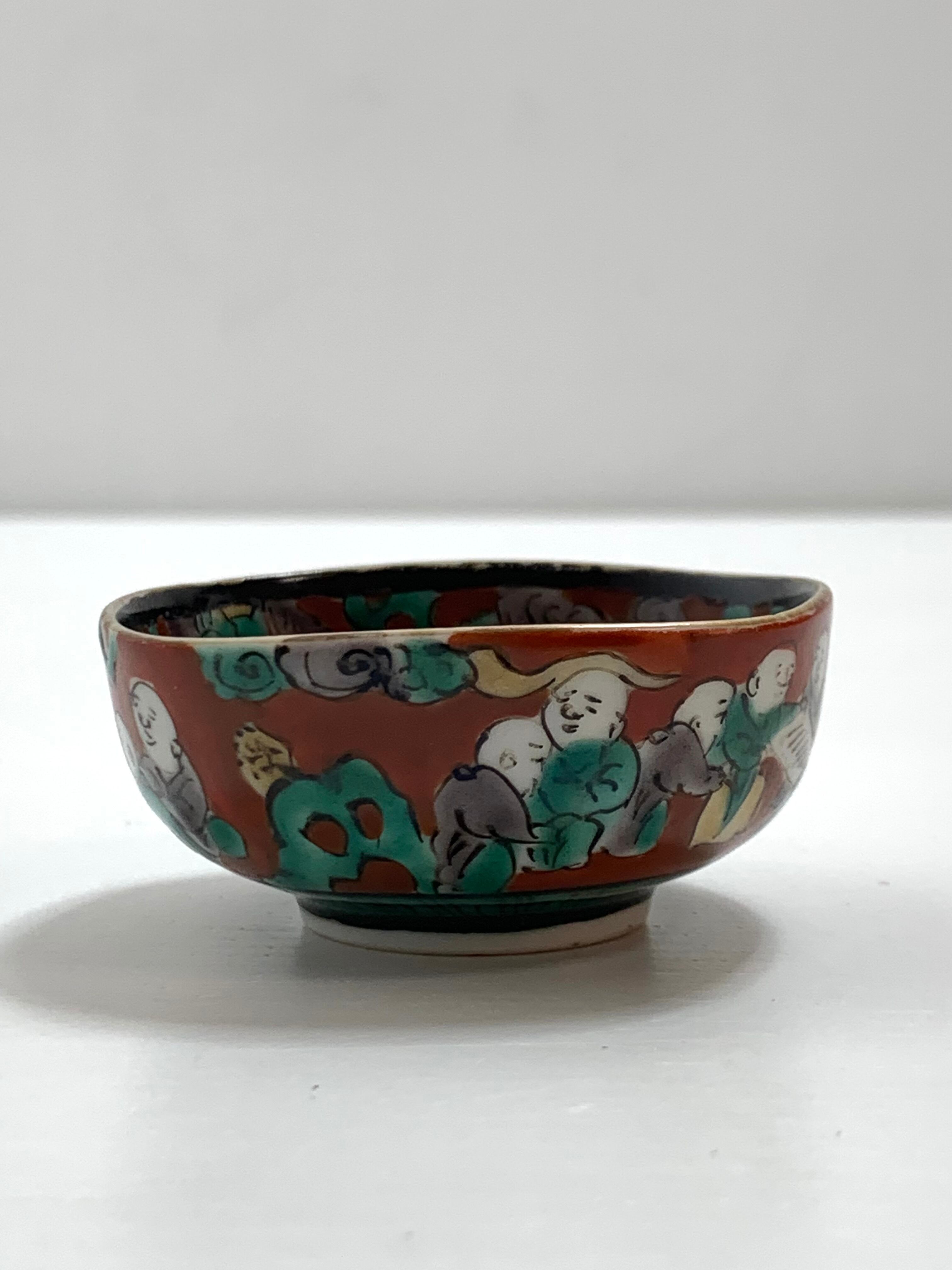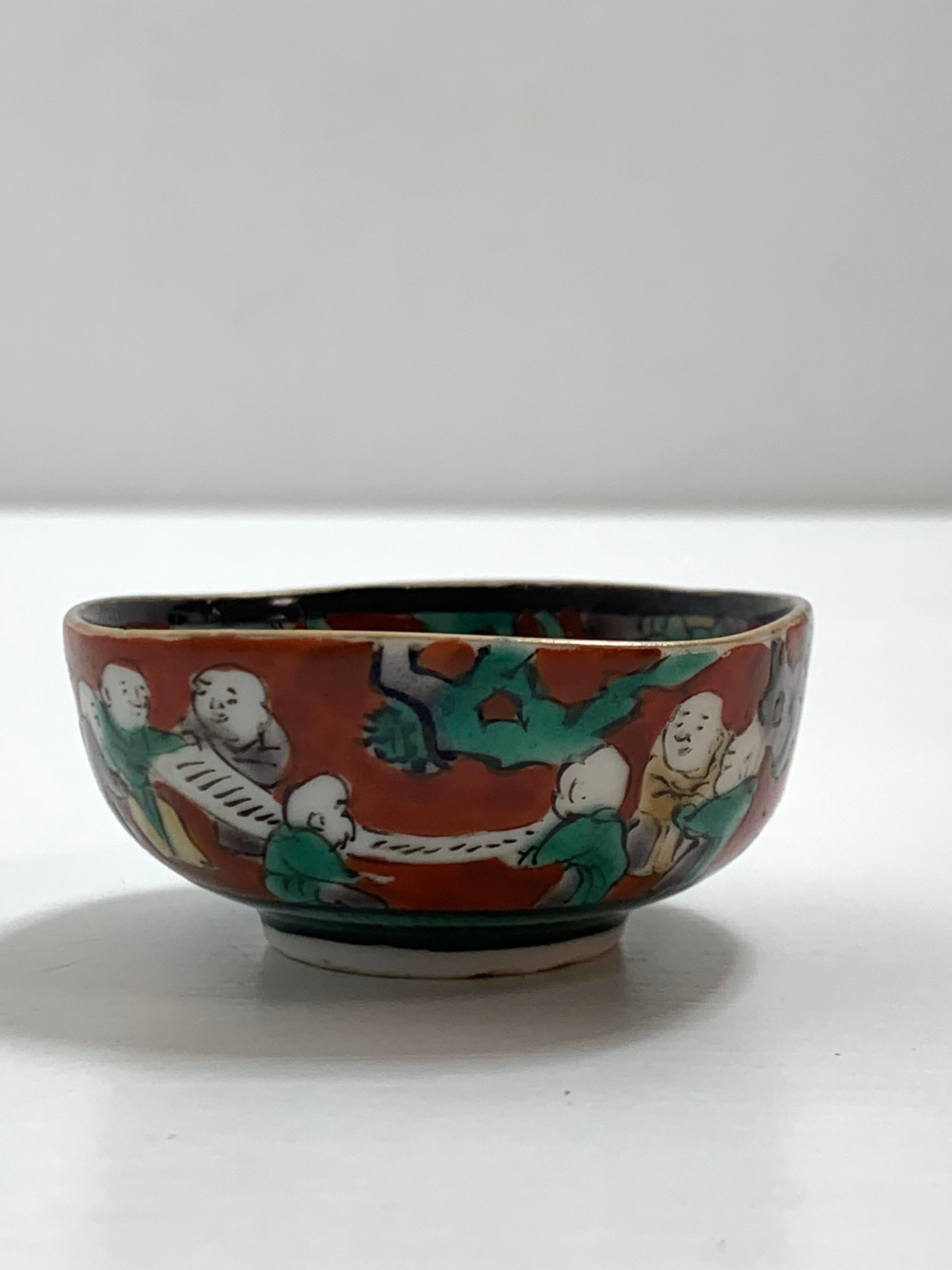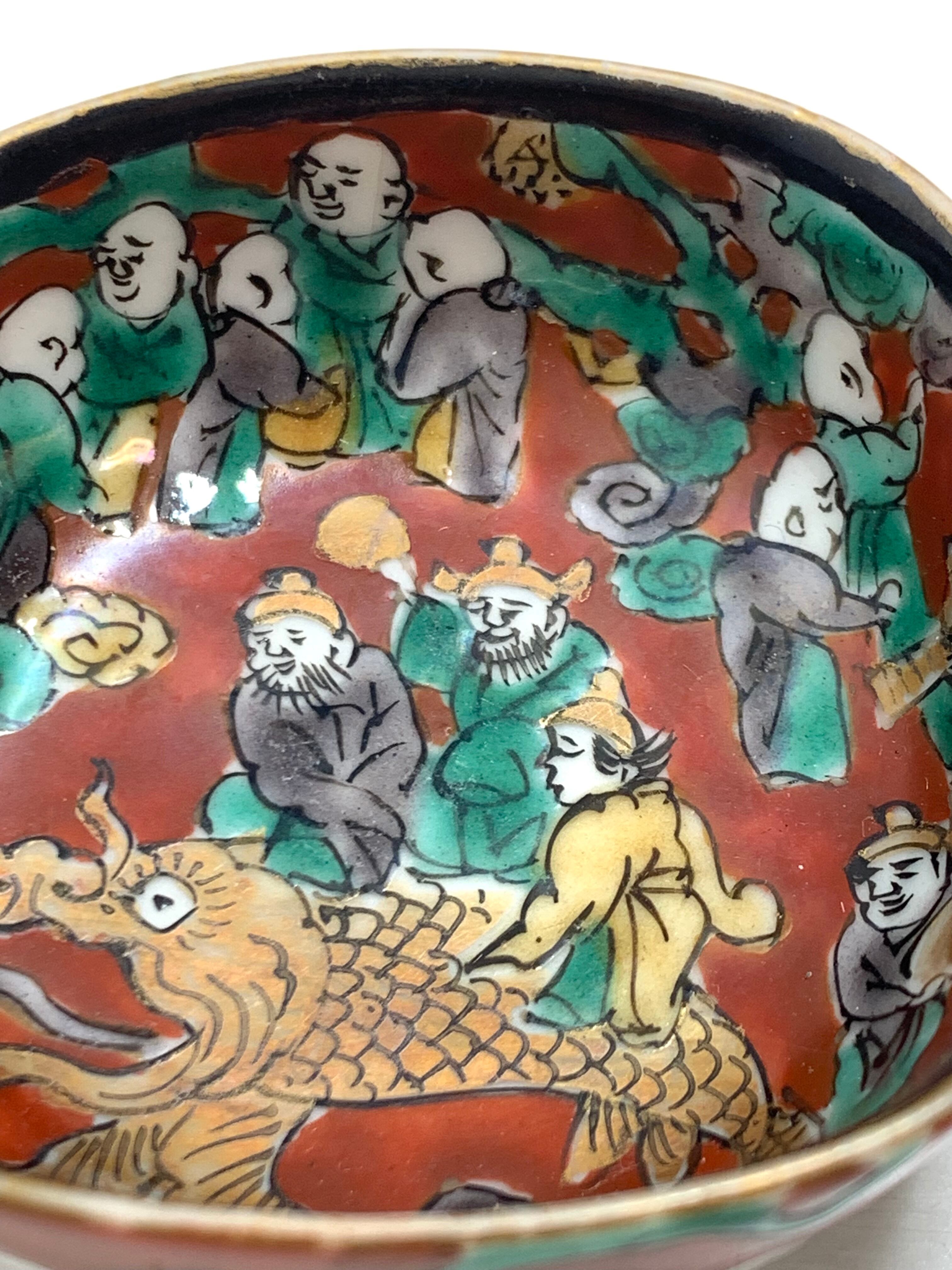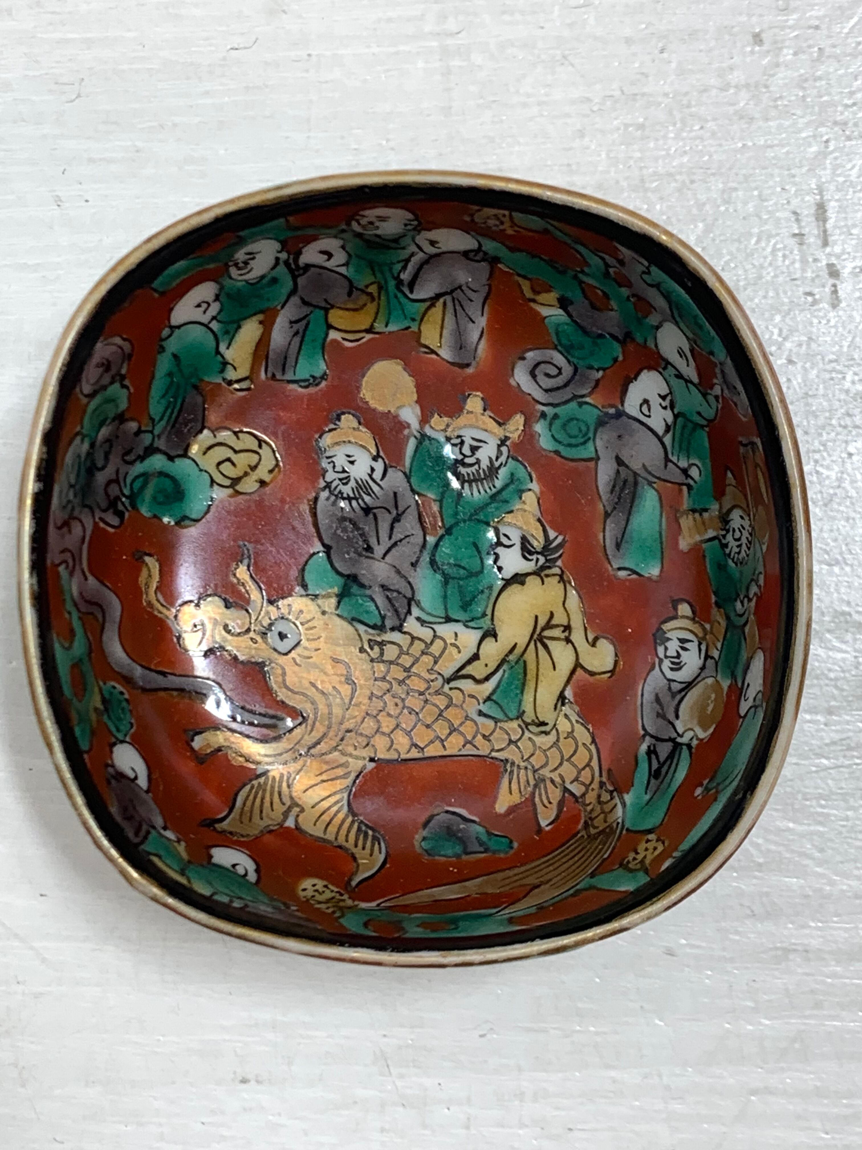 九谷焼 木米風 四角盃 鯉に乗る三人図