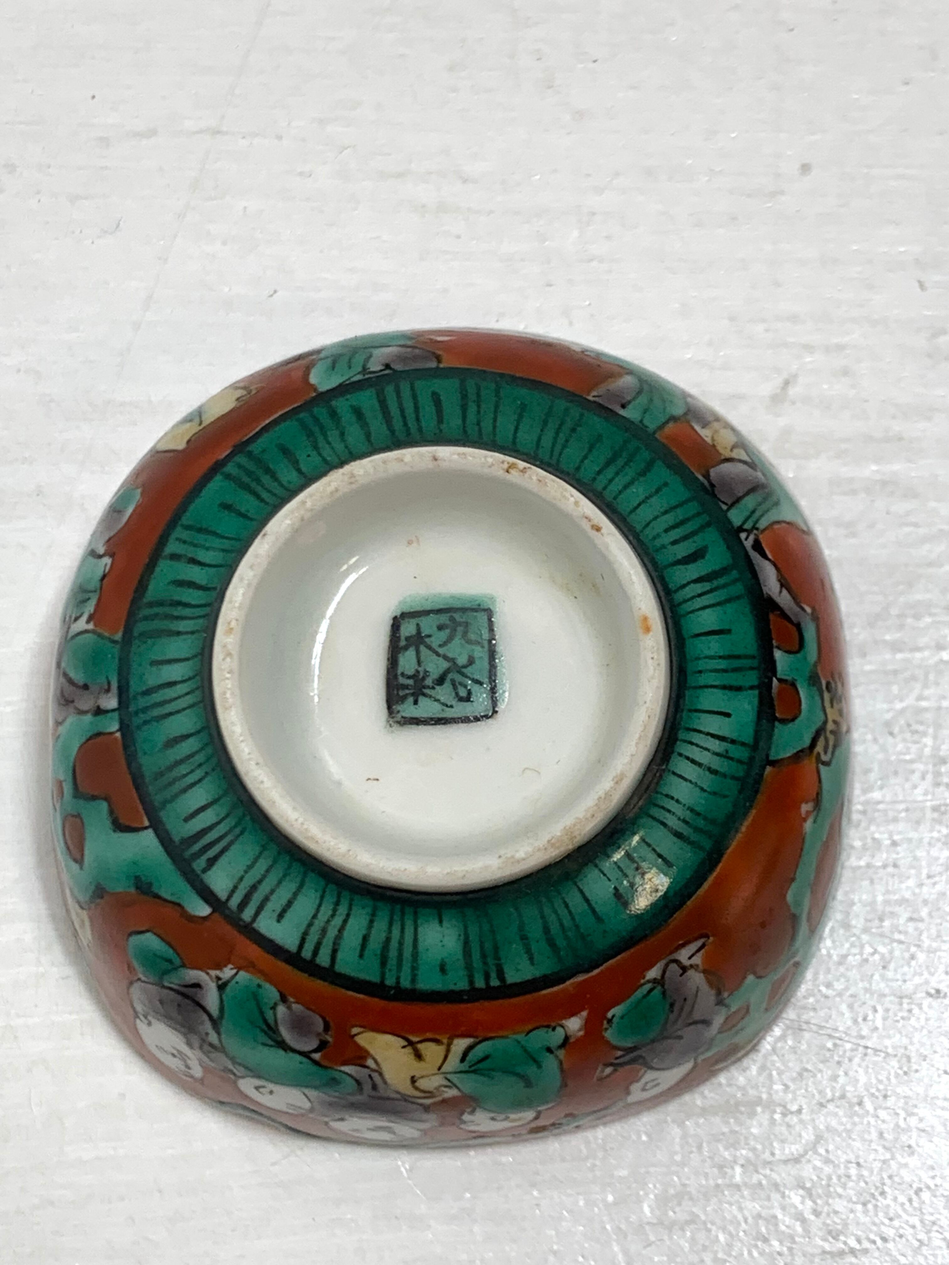 サイズはコンパクトで、幅5cm×5cm、深さ2.8cm。酒器としての使用はもちろん、珍味入れやインテリアとしても最適です。九谷焼特有の色彩と技法が美しく、コレクションや贈答品としてもおすすめの一品です。