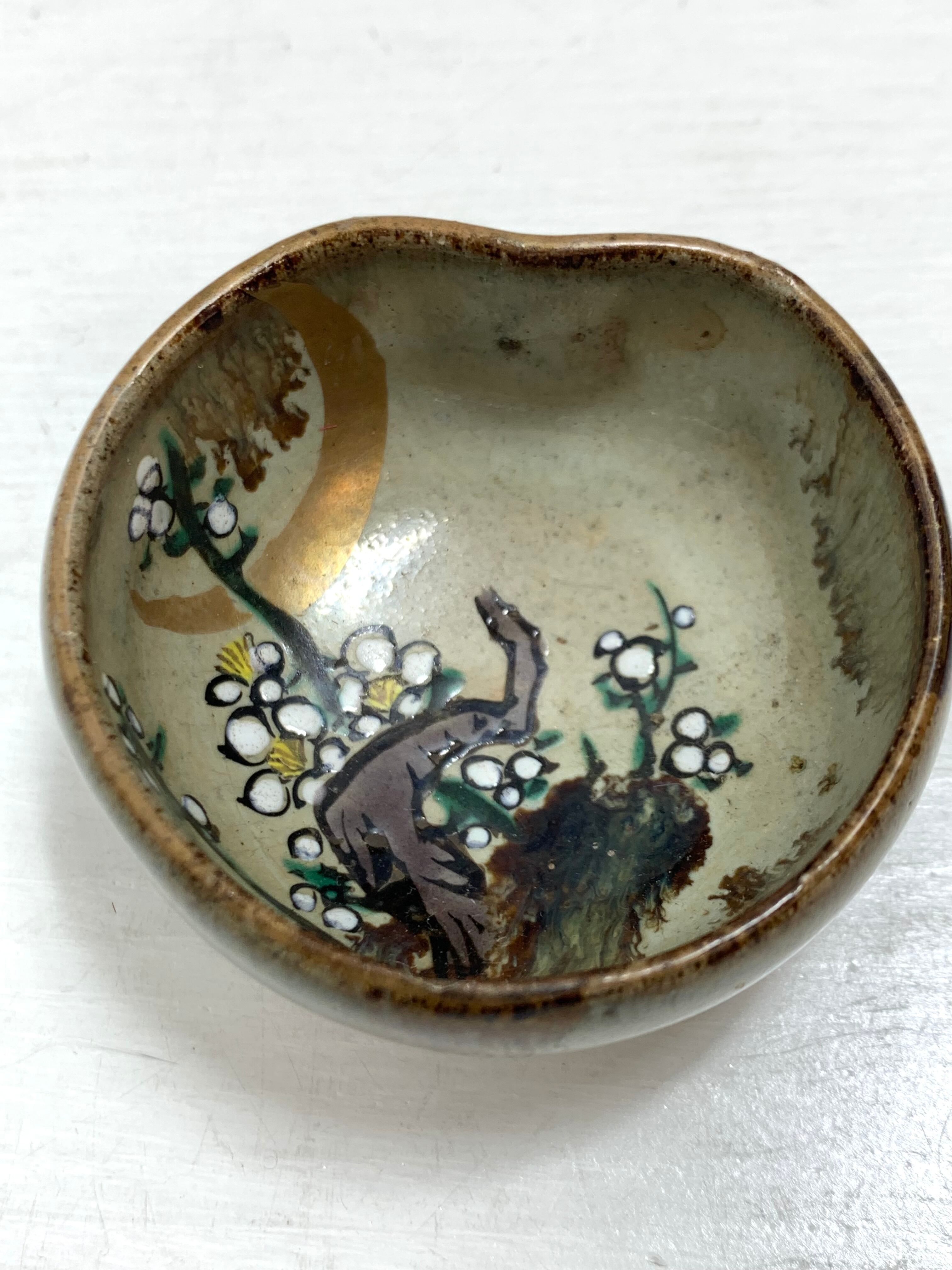 加賀九谷焼き 盃(酒器)5×5cm 深さ2.6cm 梅絵図 染付 コレクターズアイテム
