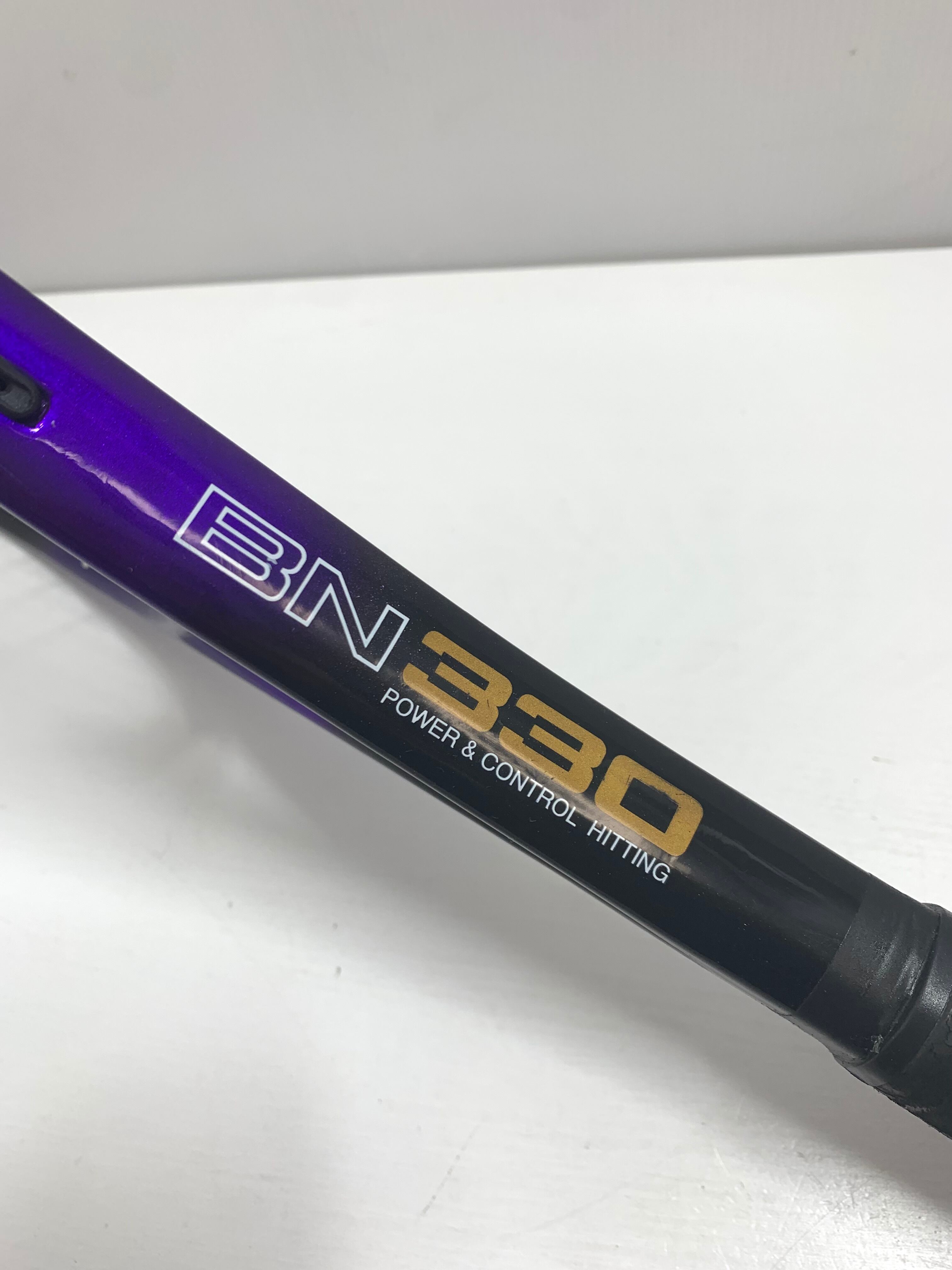BONBIXの硬式テニスラケット「BN330」です。軽量で使いやすく、初心者から中級者まで幅広くご使用いただけるモデルです。バランスの取れた設計により、安定した打球感とパワーを実現します。グリップのフィット感が良く、長時間のプレイでも疲れにくい仕様となっております。中古品ですが、通常使用による小傷はありますが、プレーに支障はございません。