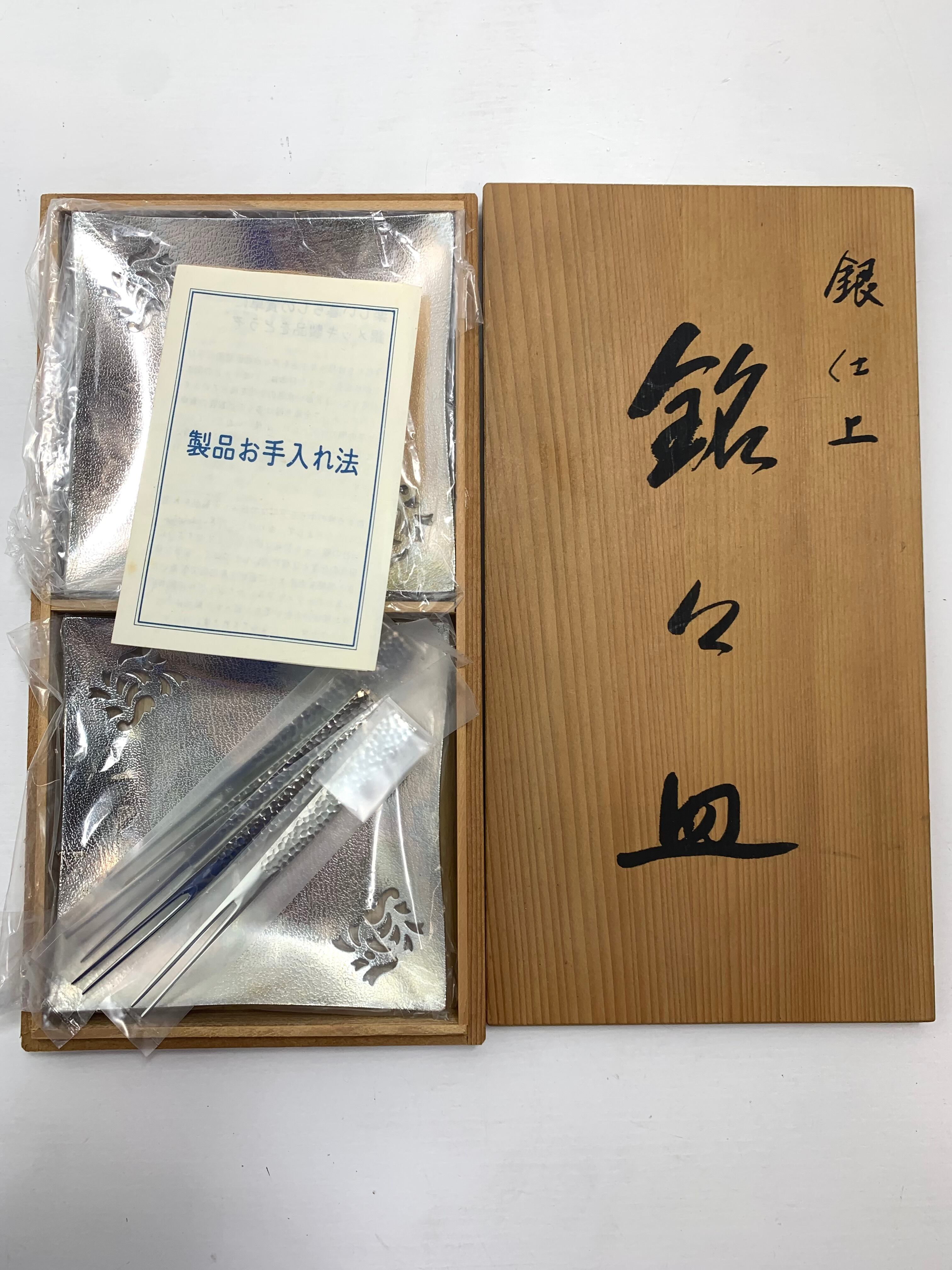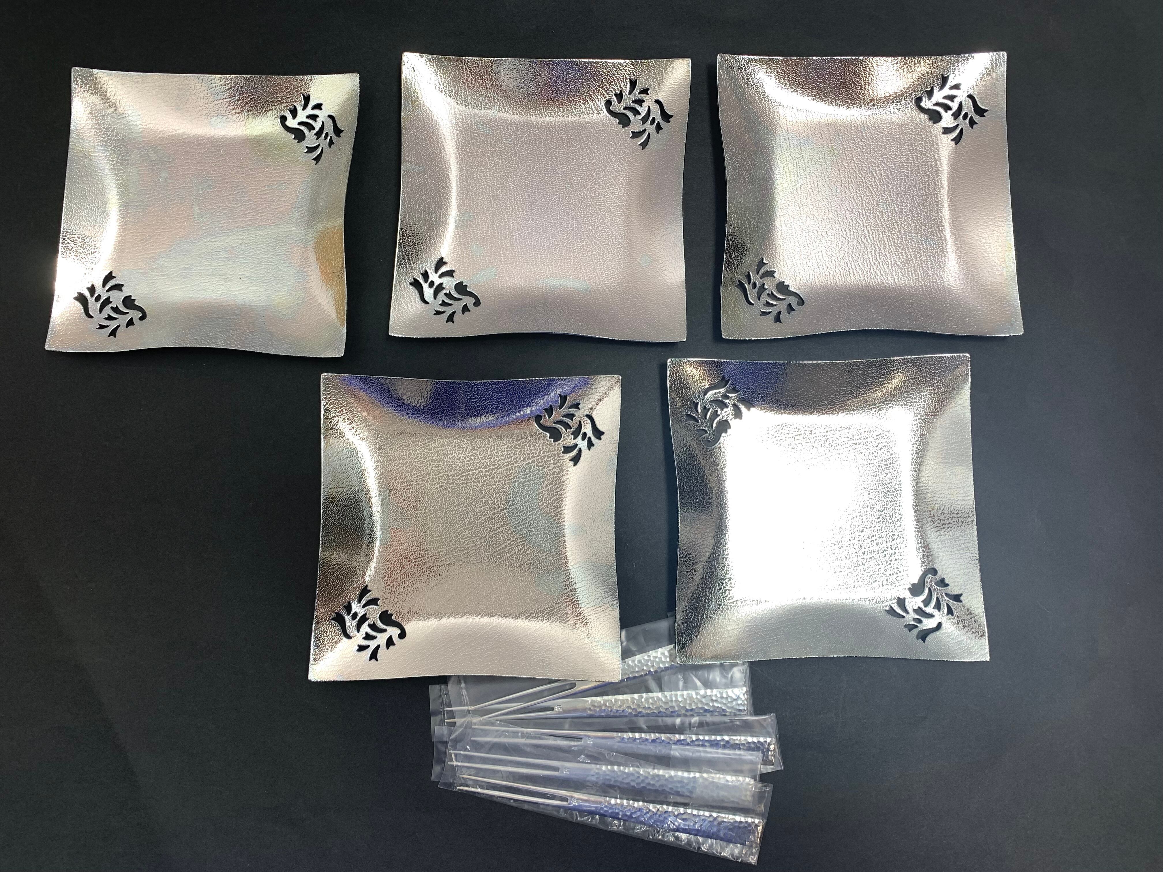 AZUMA銀仕立 銘々皿5枚姫フォーク付 5本 木箱付 銀メッキ製品 テーブルアクセサリー