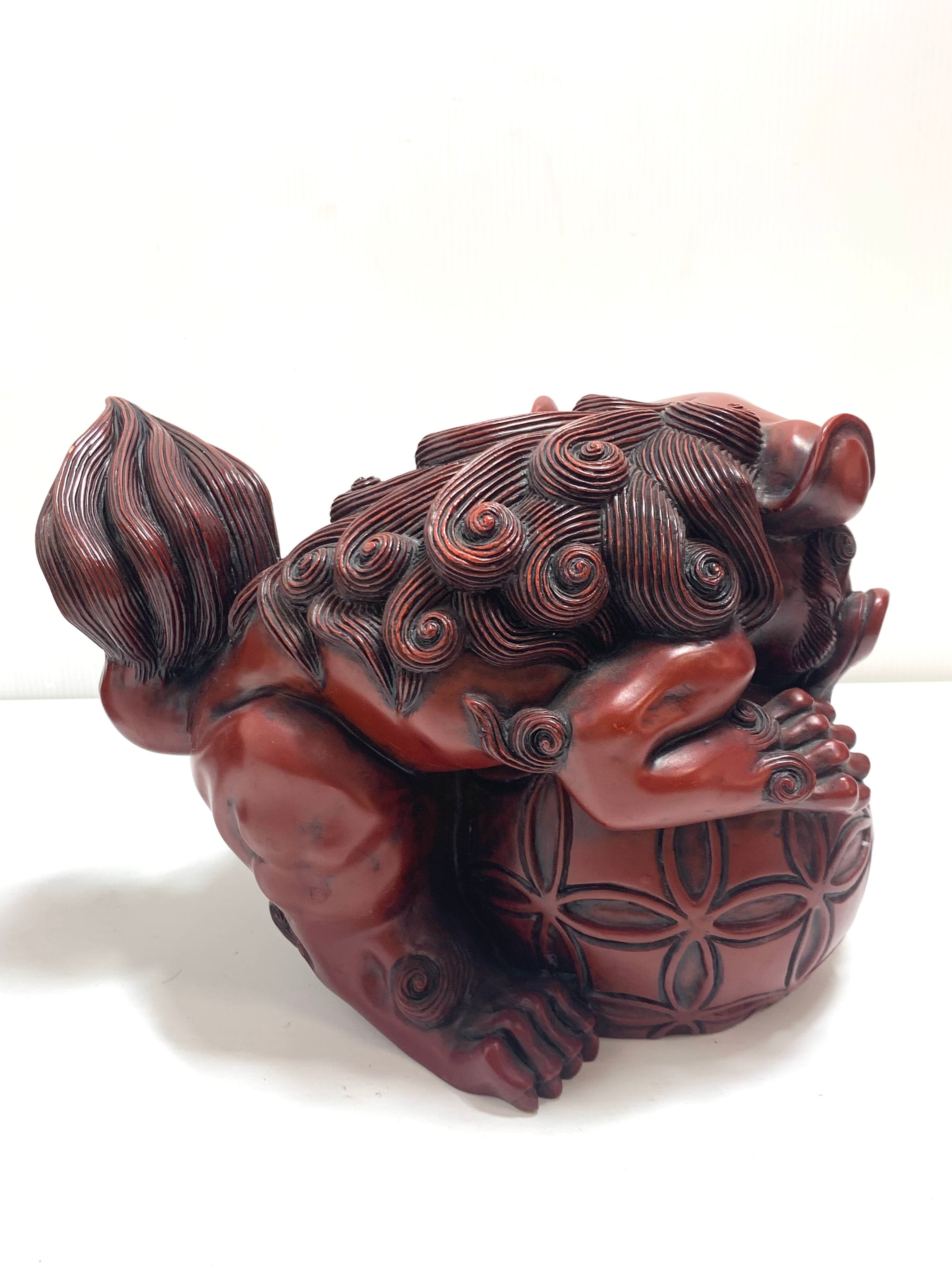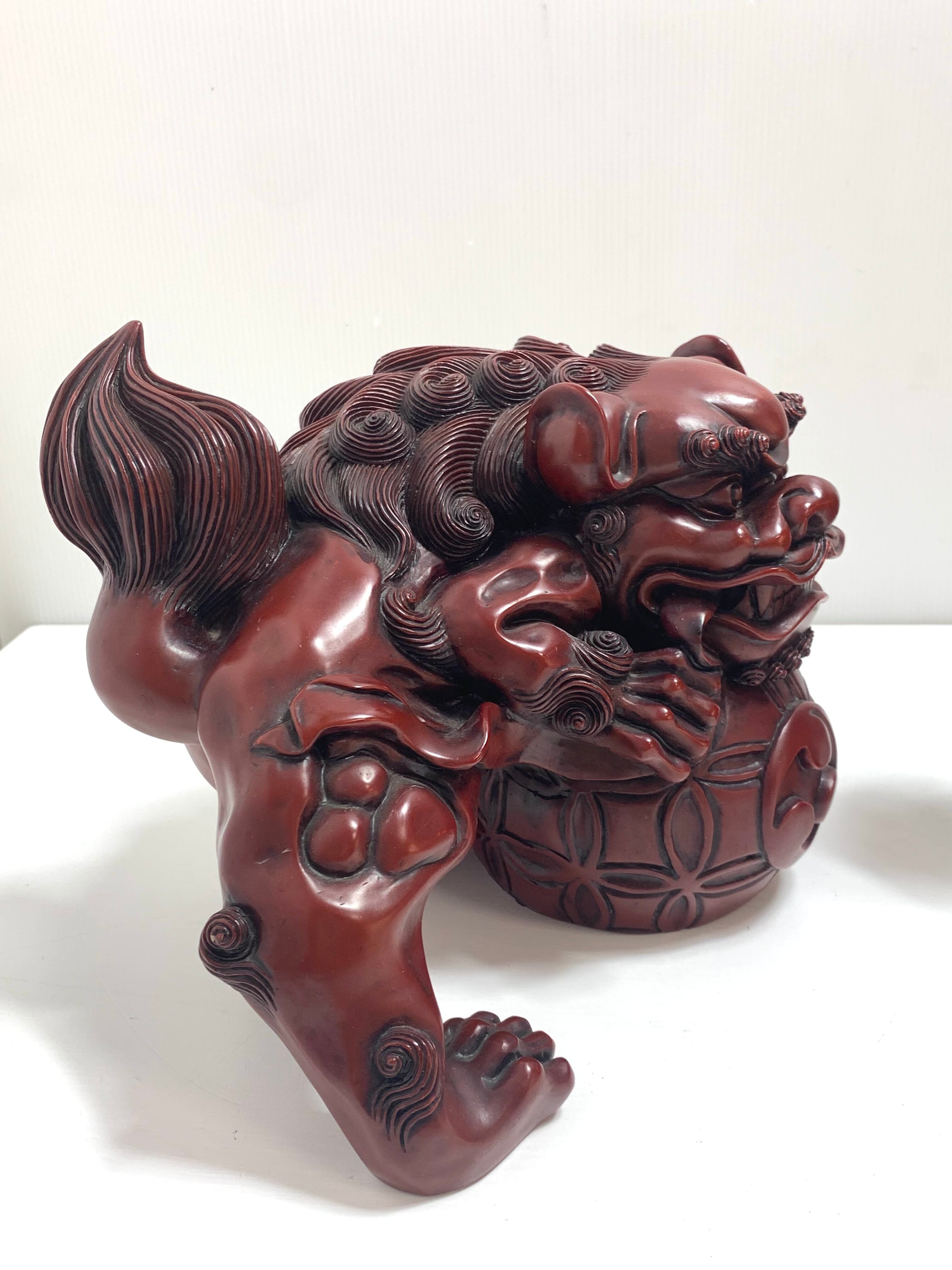 シーサ 阿形吽形一対(特大)。沖縄の伝統的な置物。風水やインテリアとして人気の高い守り神「シーサ」。日本の厄除けや招福の象徴でもある、玉乗り獅子のデザインが特徴的。特大サイズなので存在感も抜群です。お部屋のアクセントや幸運を招くお守りとして、ぜひご活用ください。