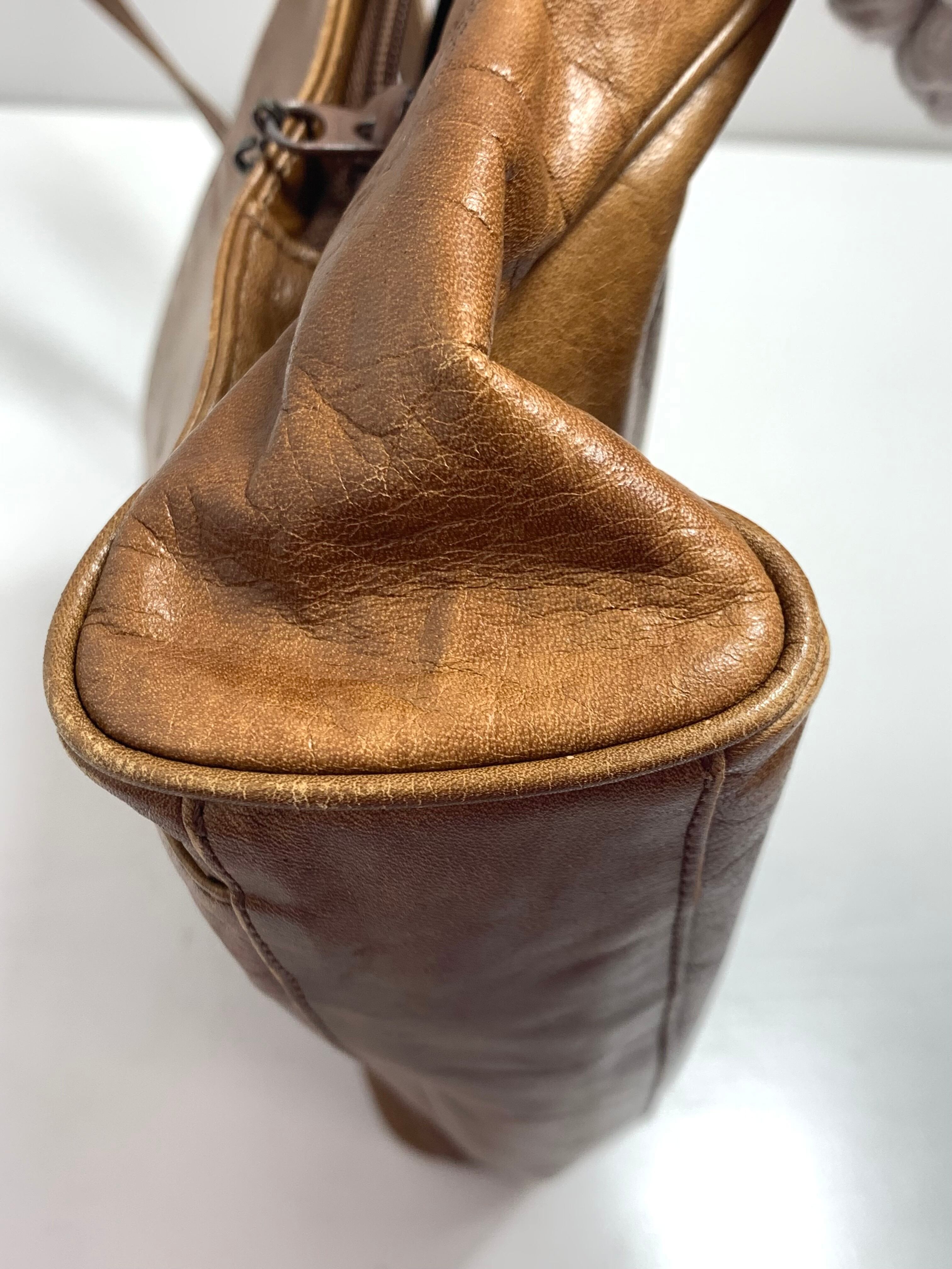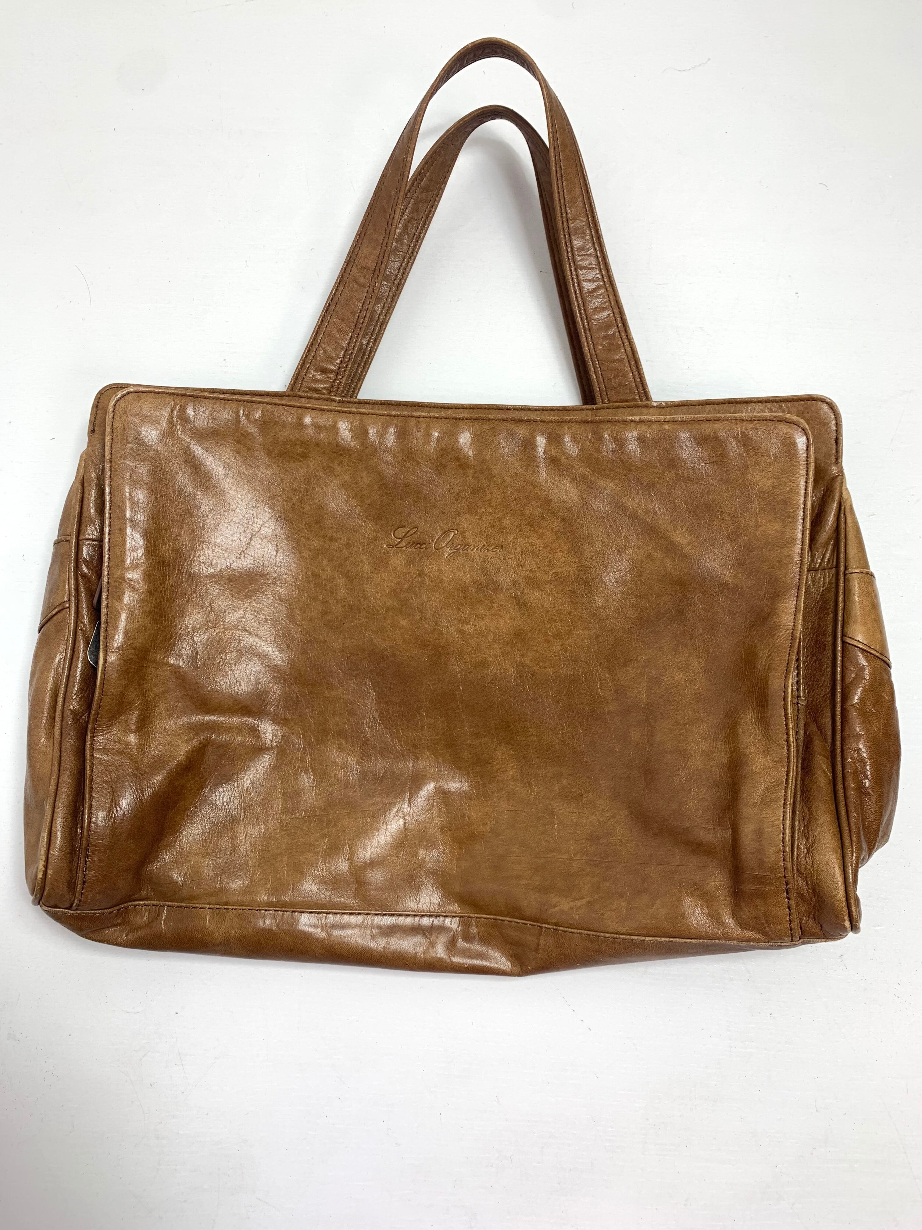こちらは中古の「Lucci Organizer」ブラウントートバッグです。柔らかい革素材が使い込むほど手に馴染み、独特の風合いを楽しめます。サイズは横幅33cm、縦幅24cm、マチ5.5cmと、日常のお出かけやビジネスシーンにも最適な大きさです。シンプルかつ上品なデザインで、ブラウンカラーがさまざまなコーディネートにマッチします。柔らかな革の質感と使いやすさを兼ね備えた、長く愛用できる一品です。