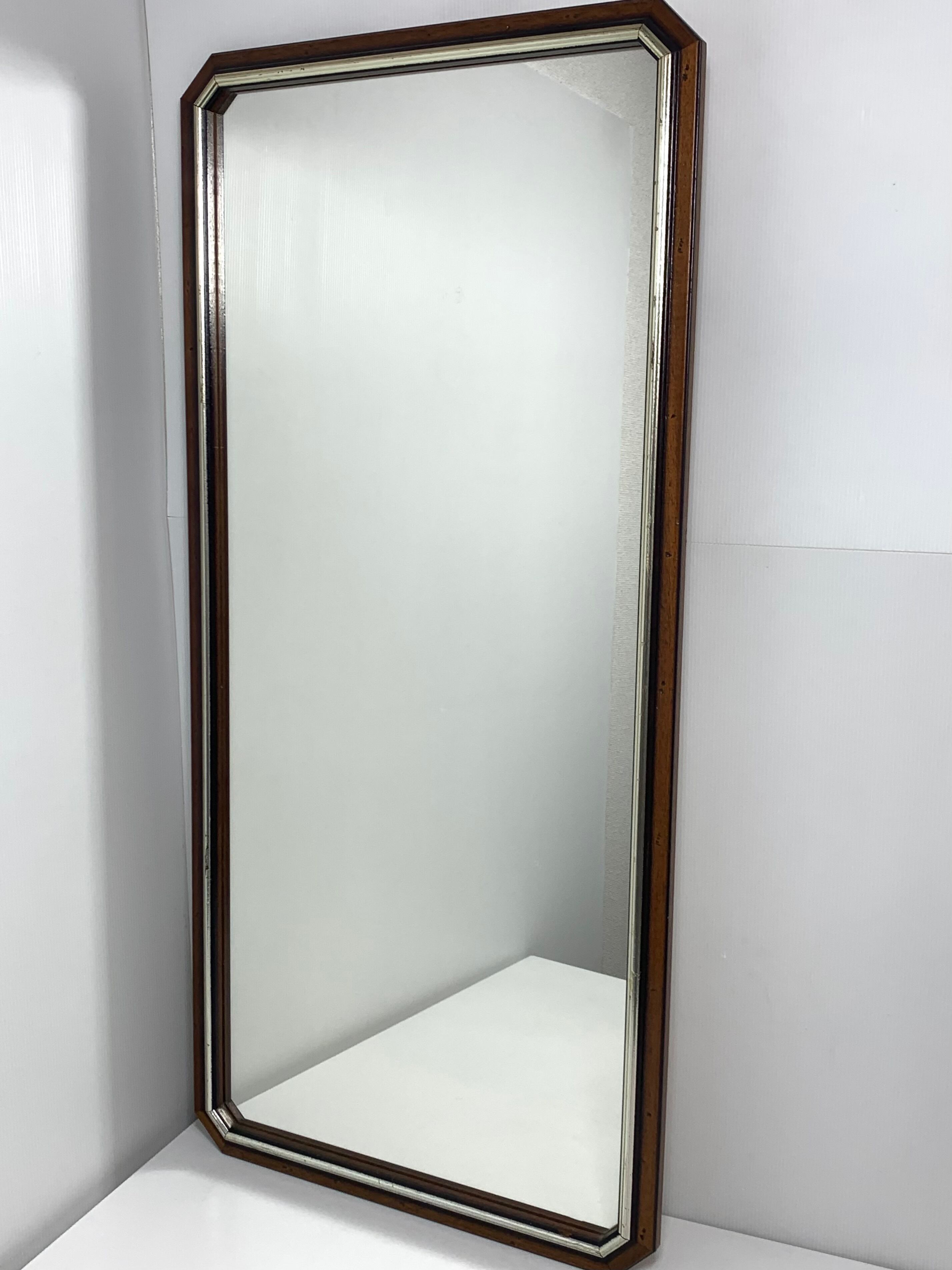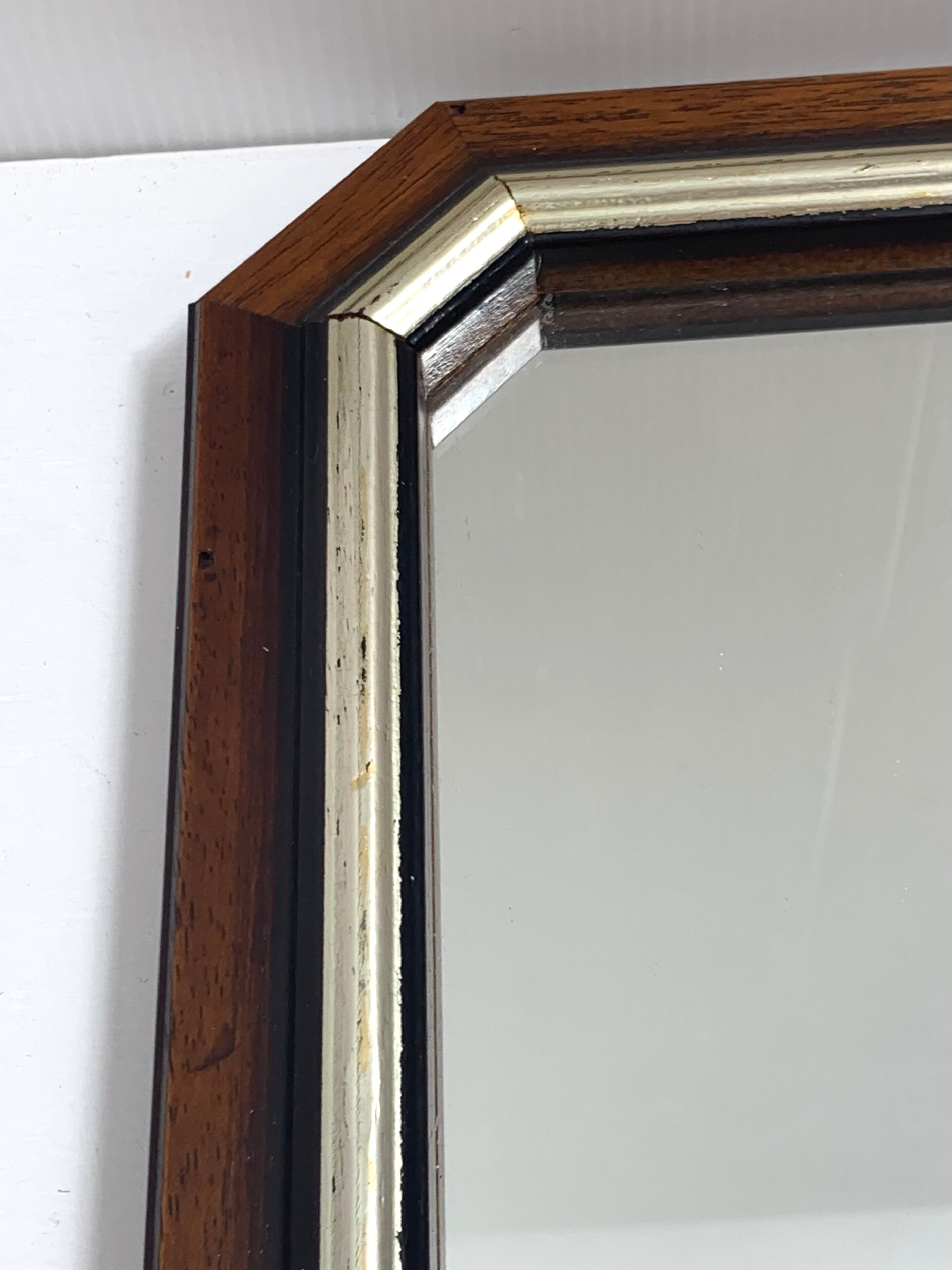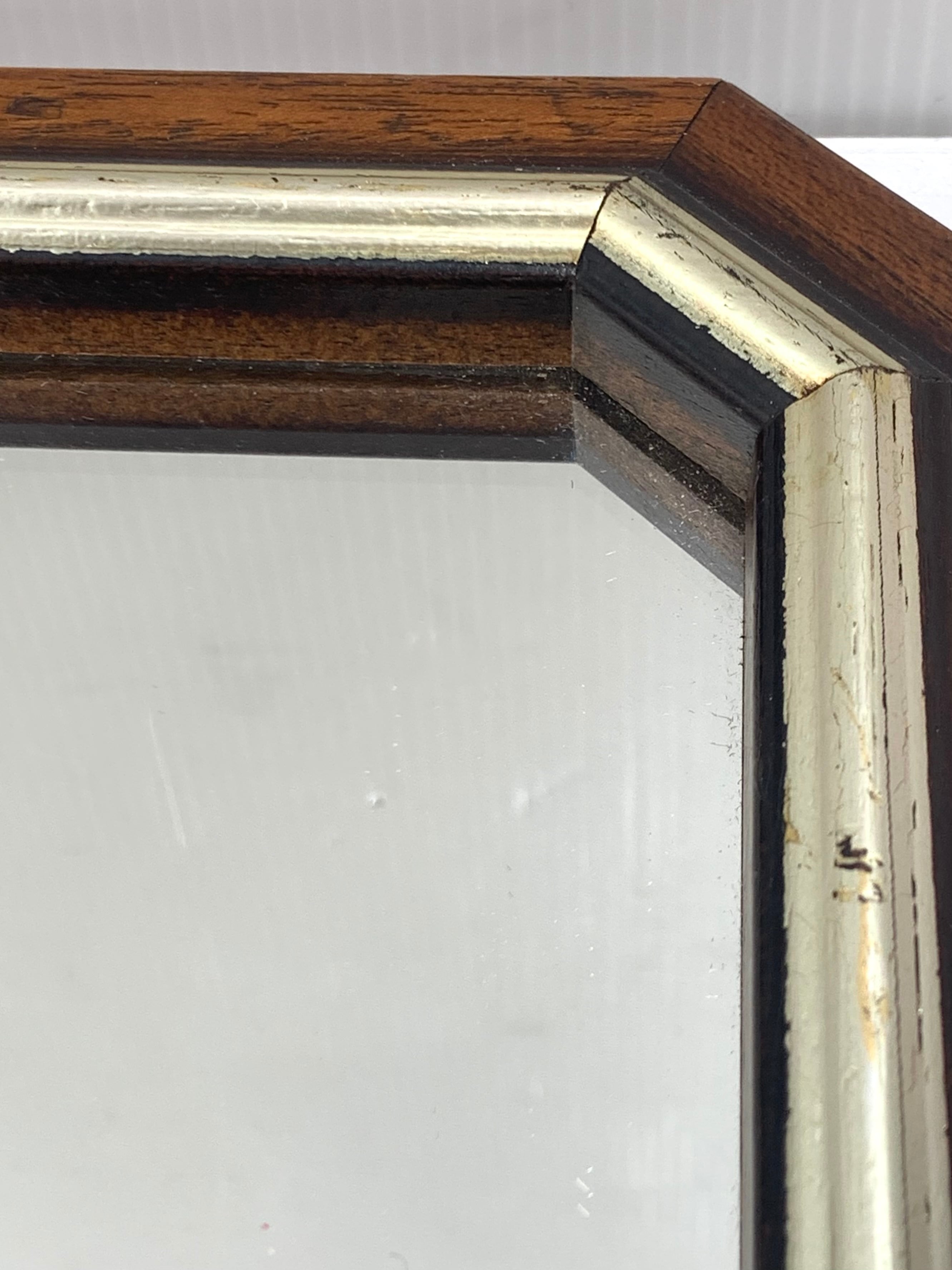 アンティーク風ウォールミラー - 木枠長方形八角デザイン