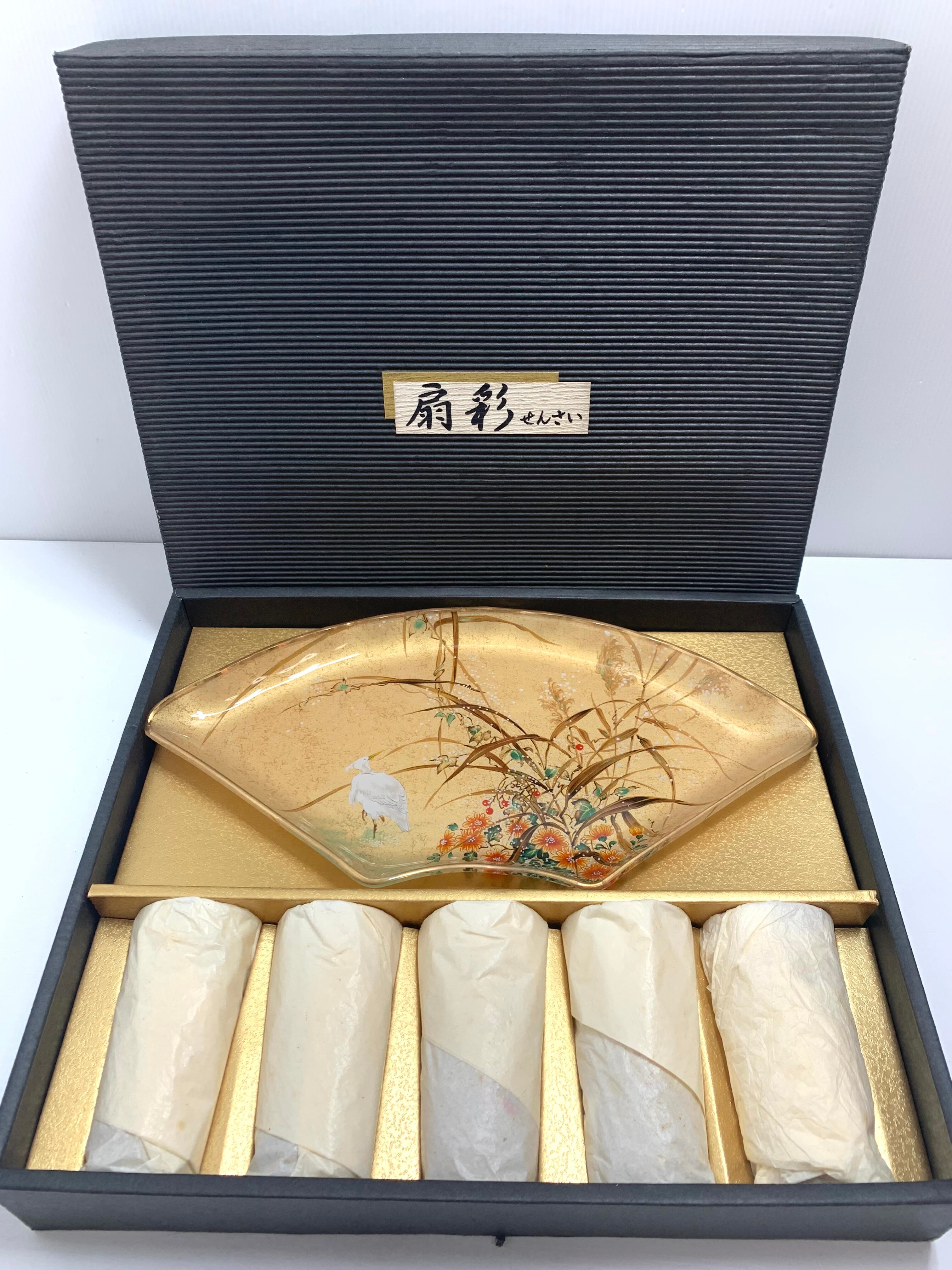 「扇彩」シリーズは、佐々木クリスタルが手掛ける高級ガラス製品で、日本の美しい風物詩を精緻に表現しています。このセットには、以下のデザインが含まれています。