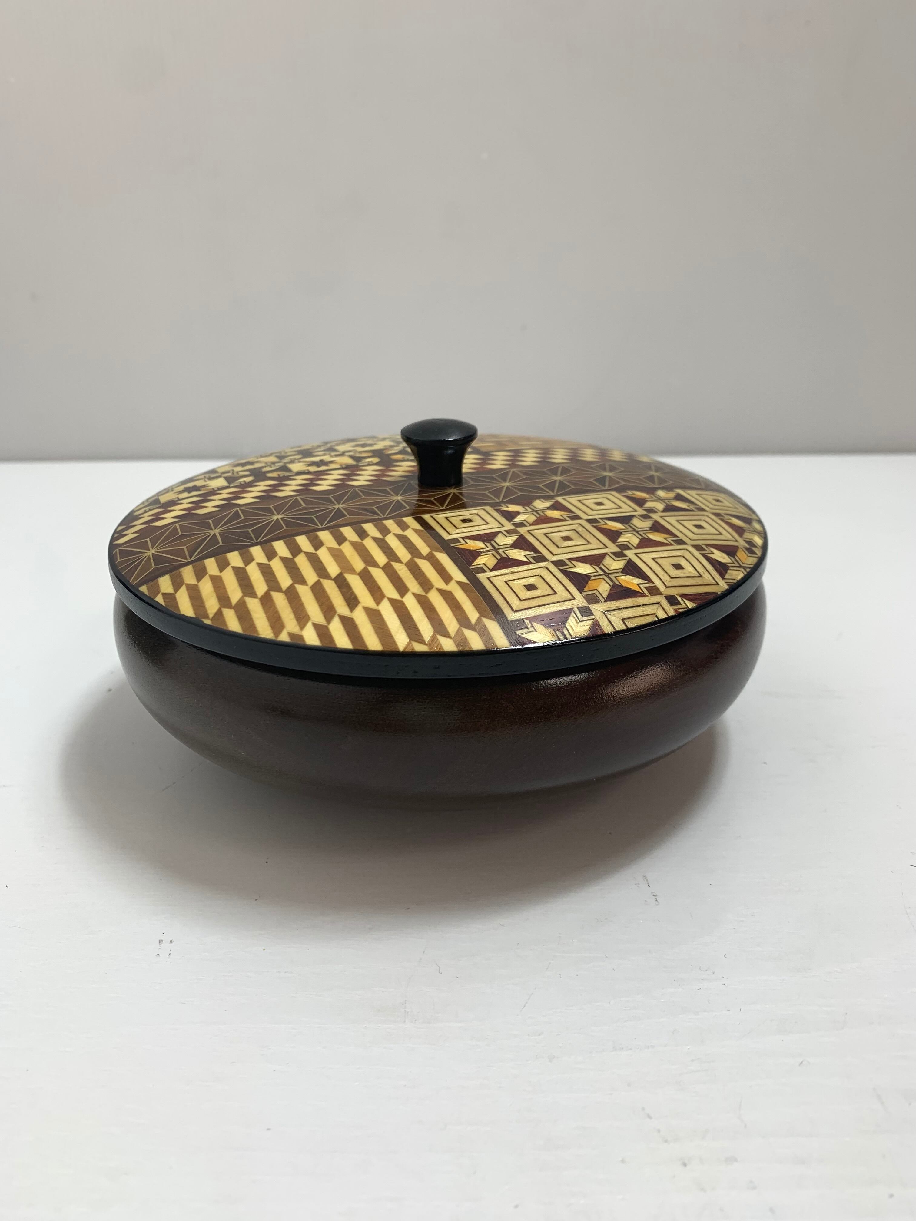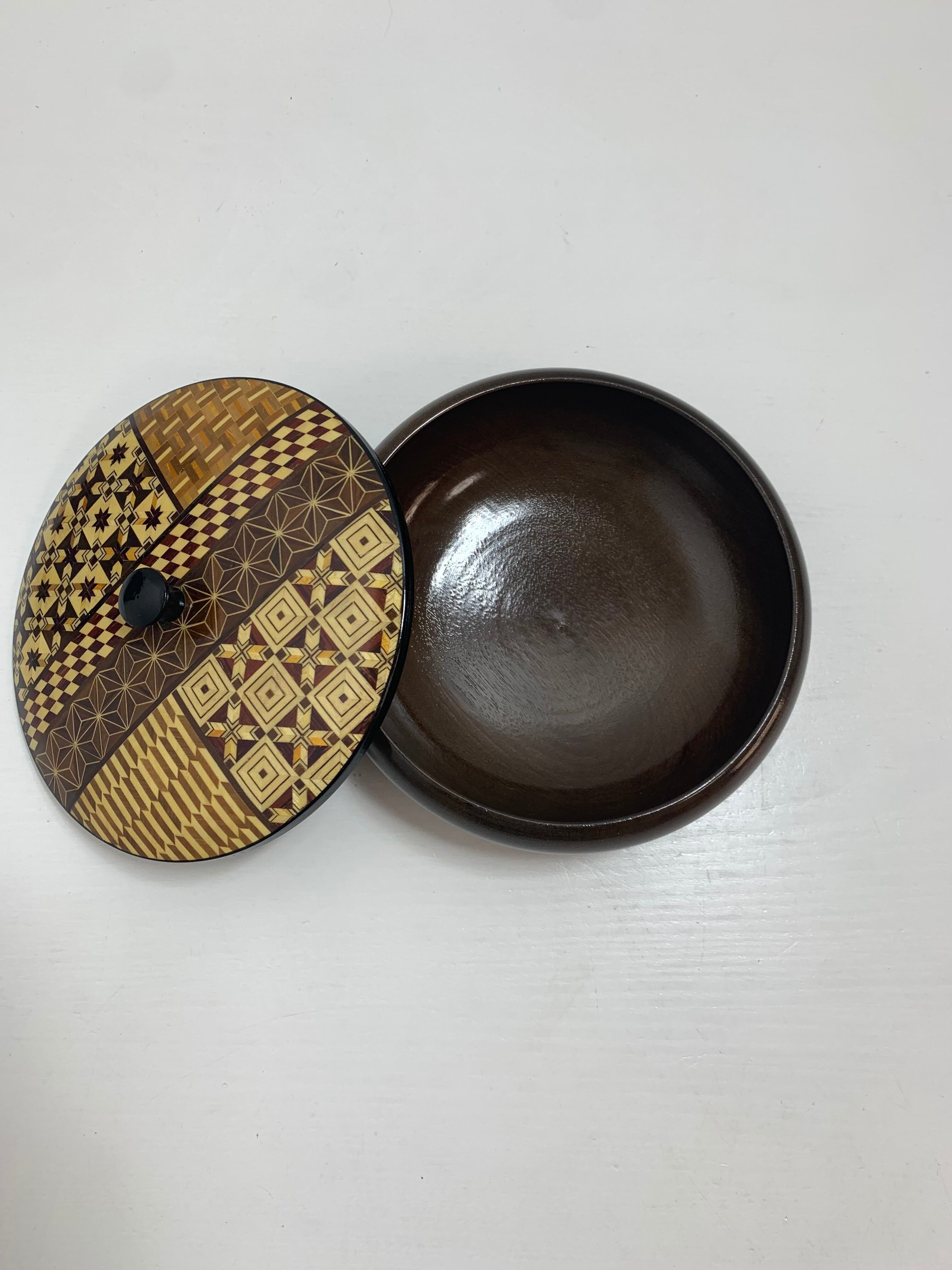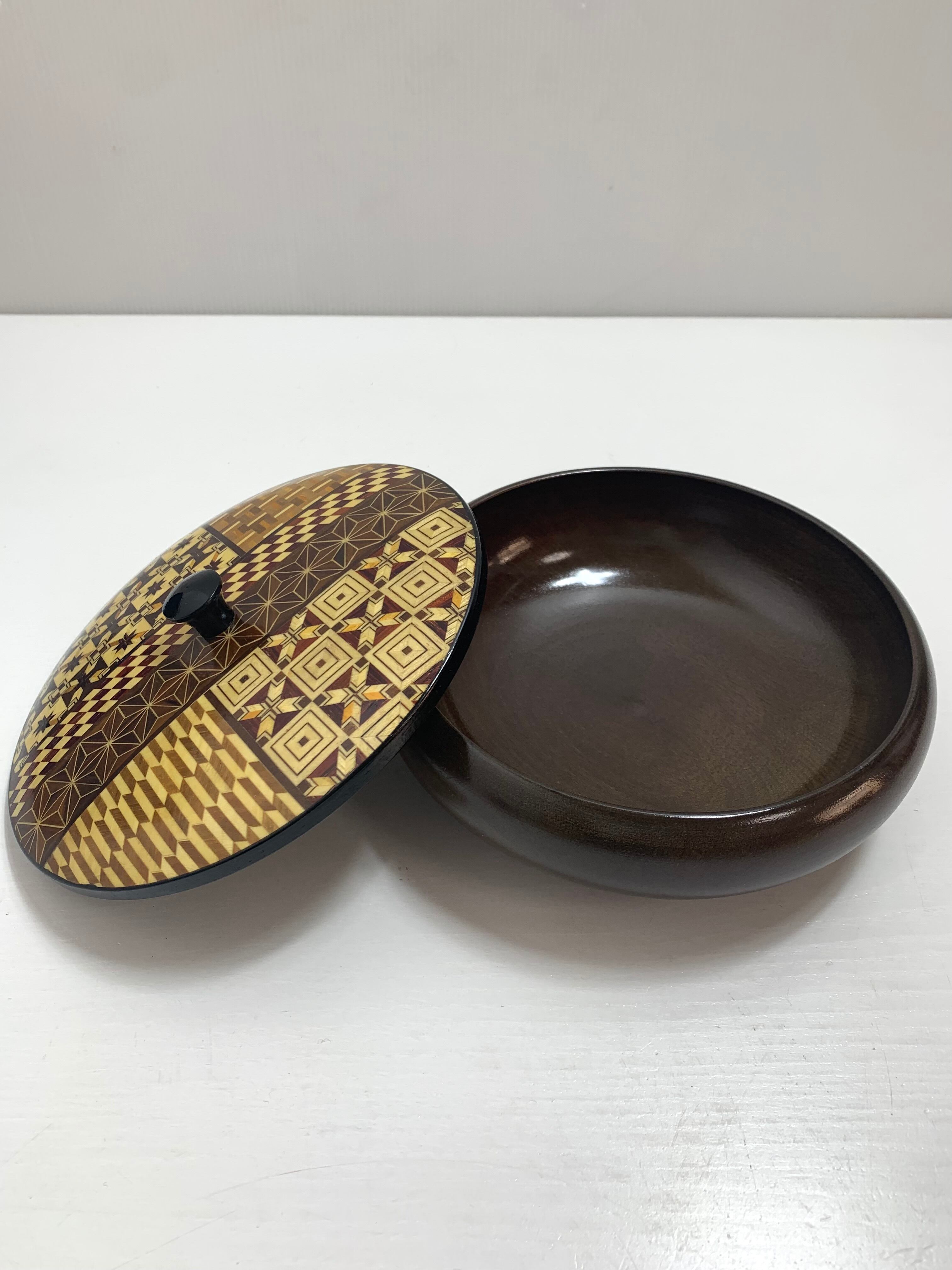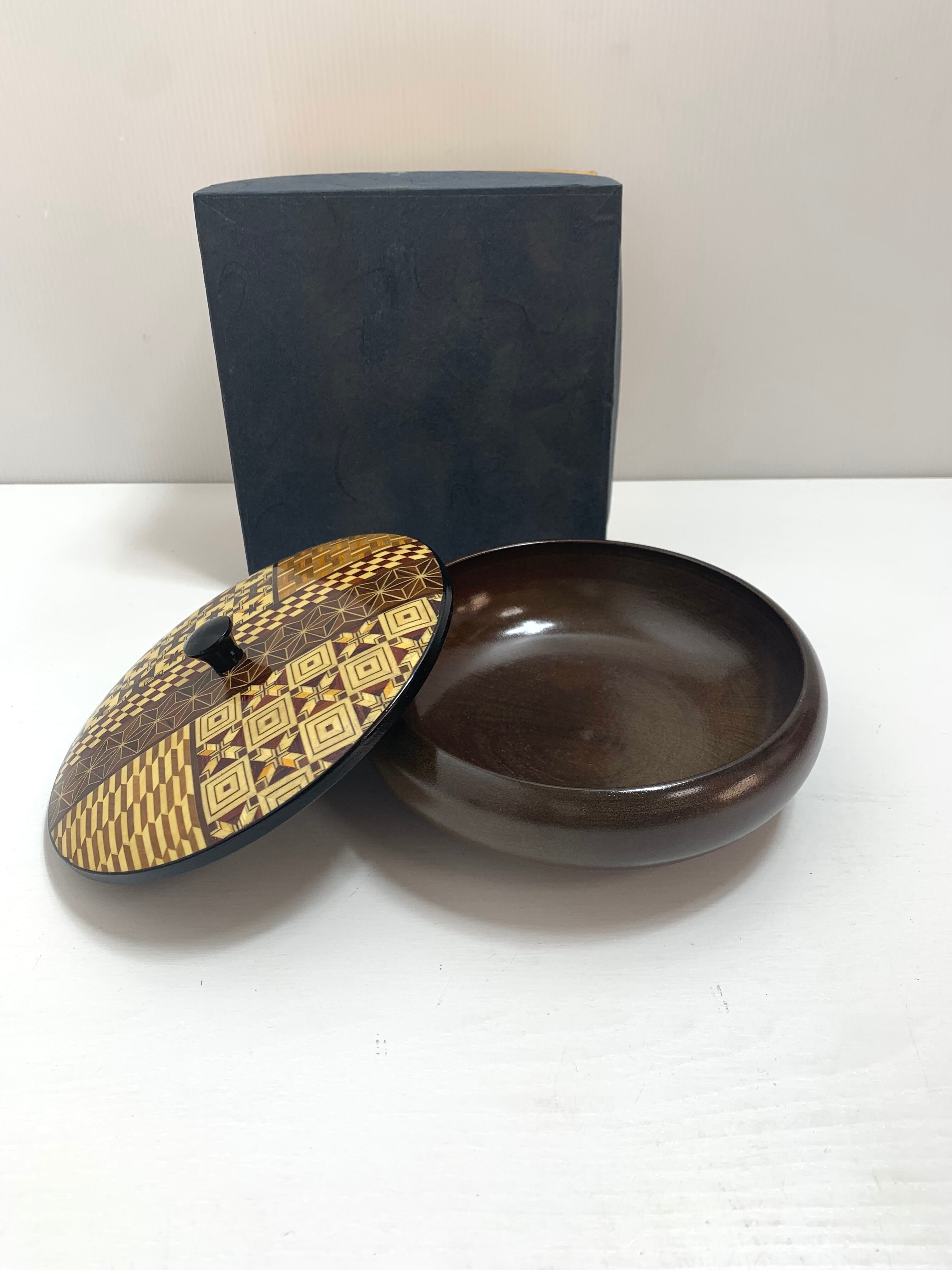 箱根寄木細工 天然木製菓子器 直径13.5cm 茶道具