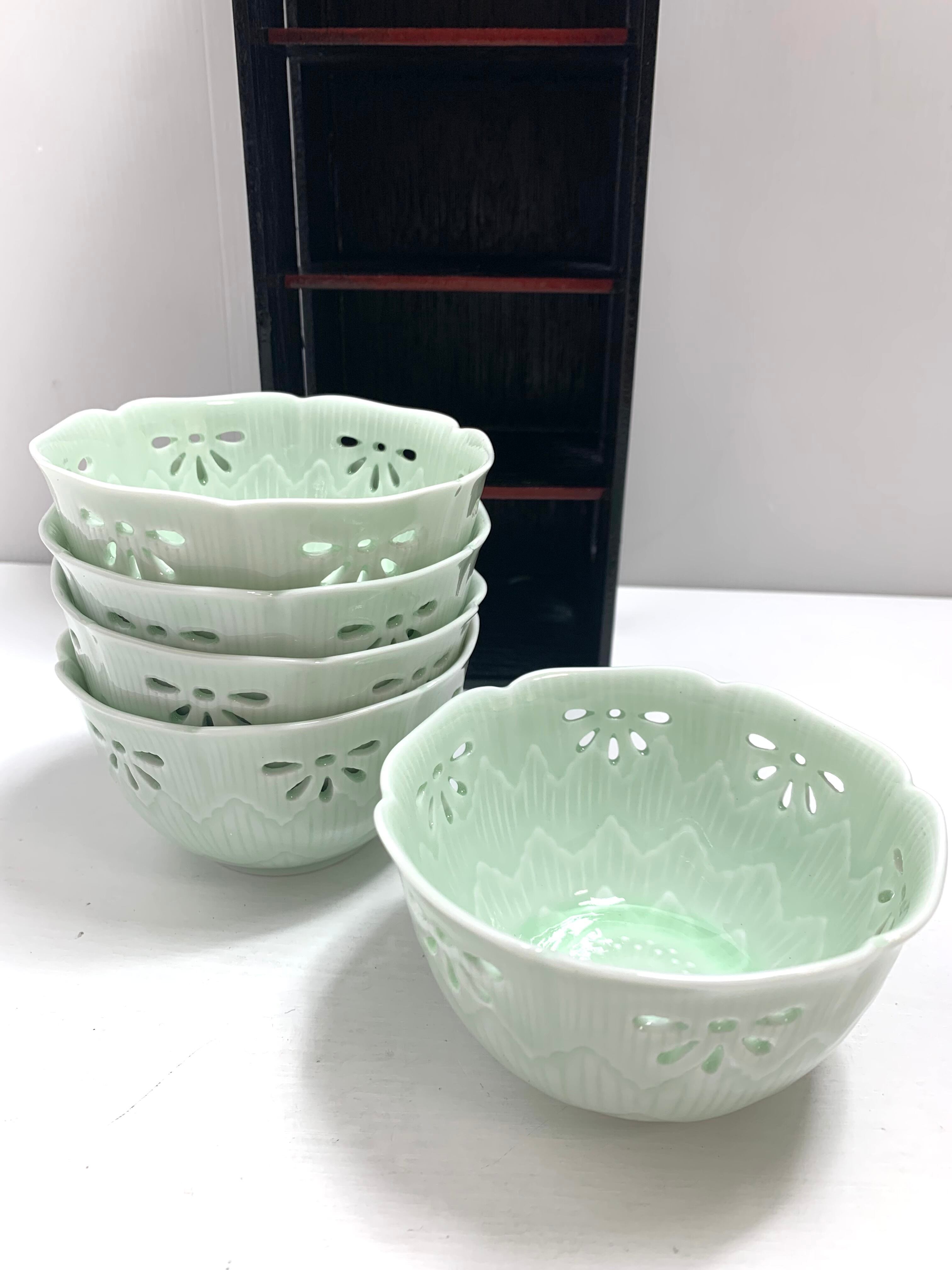 有田焼 青磁透し 小鉢 5個セット 萌色の優しいパステルカラー 繊細な和の美しさ