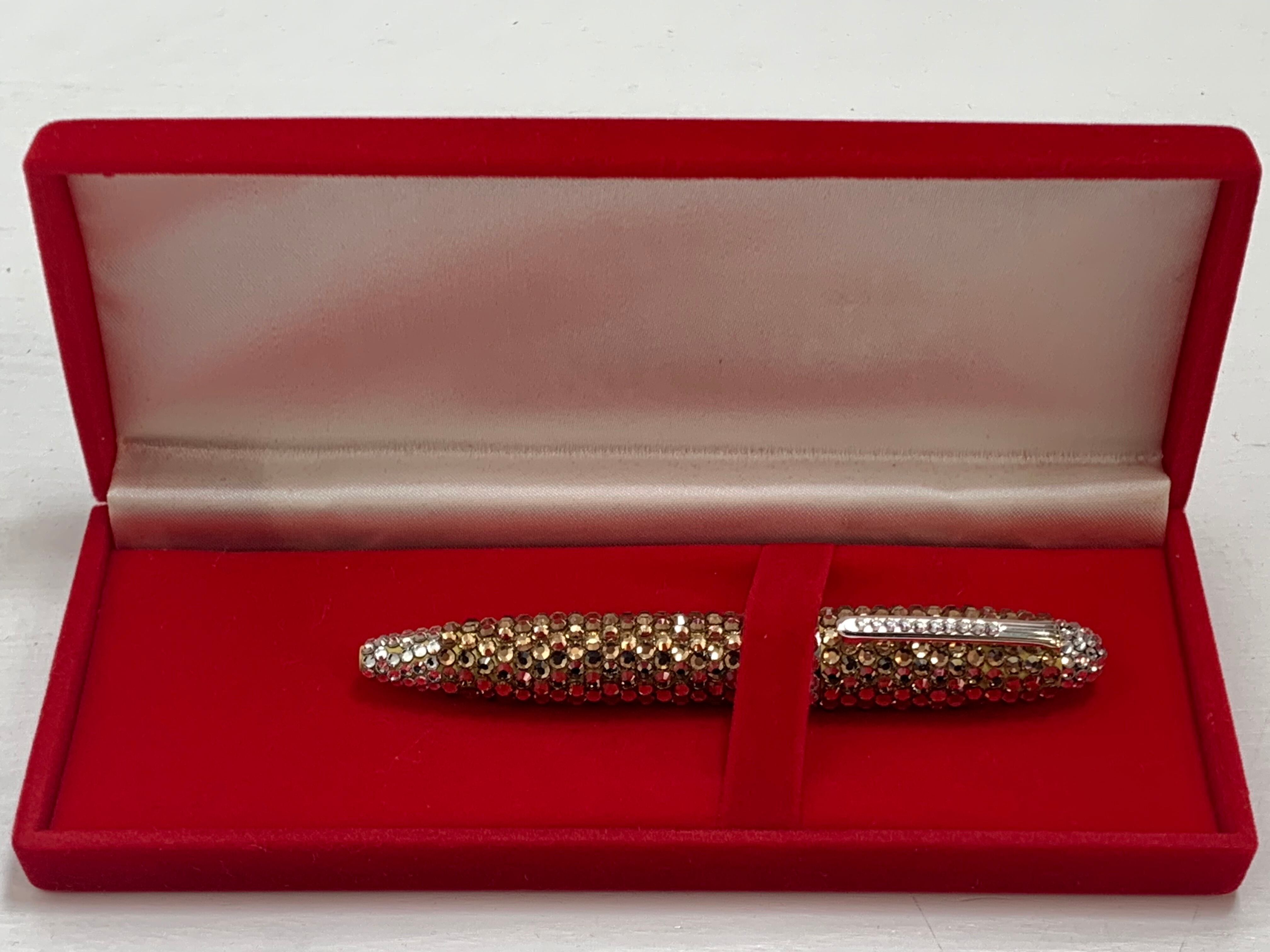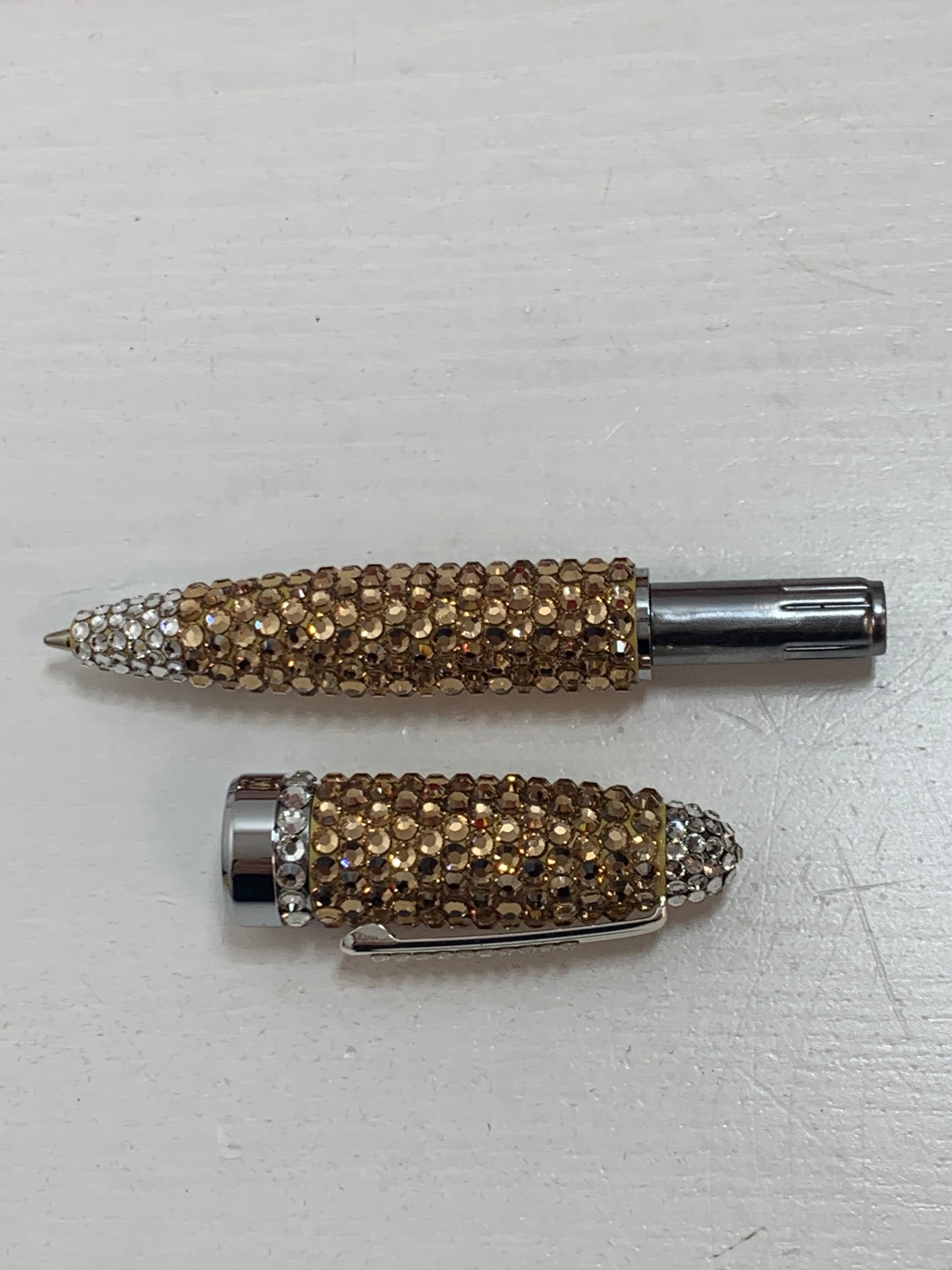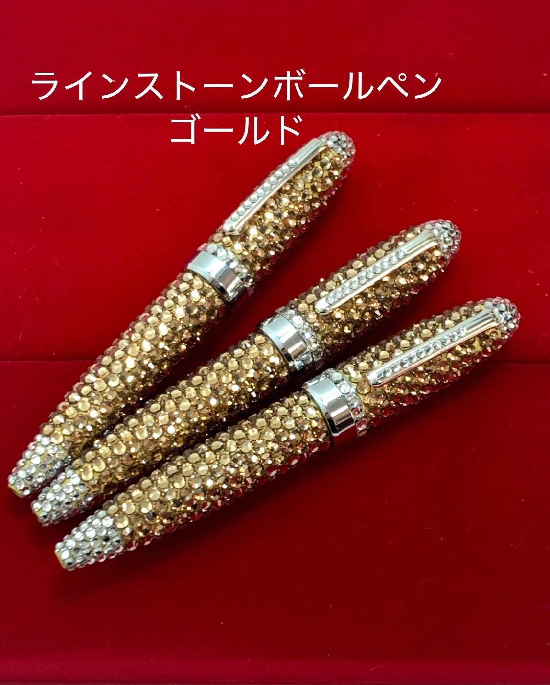 カラークリスタルラインストーンボールペン ゴールド3本セット