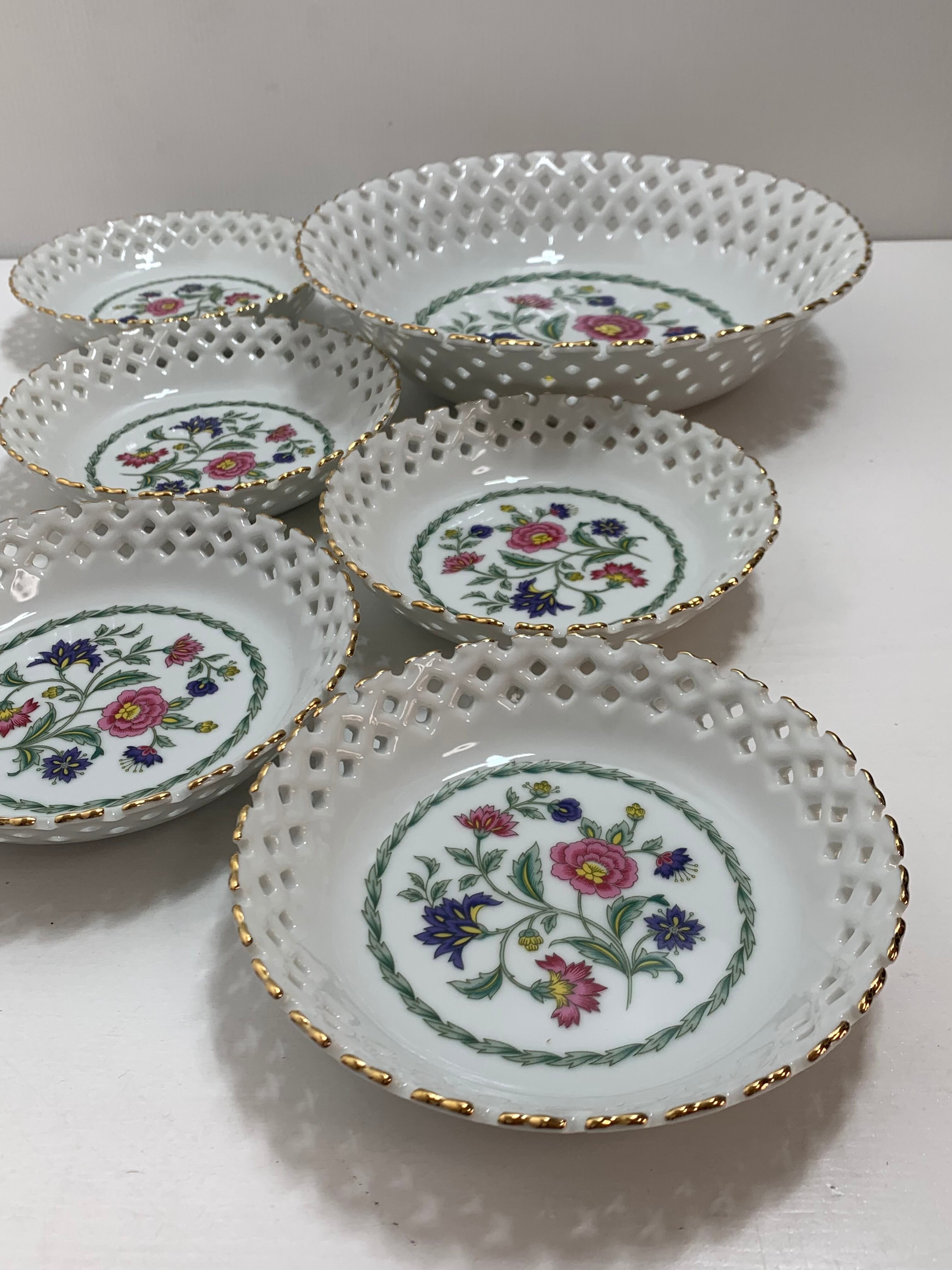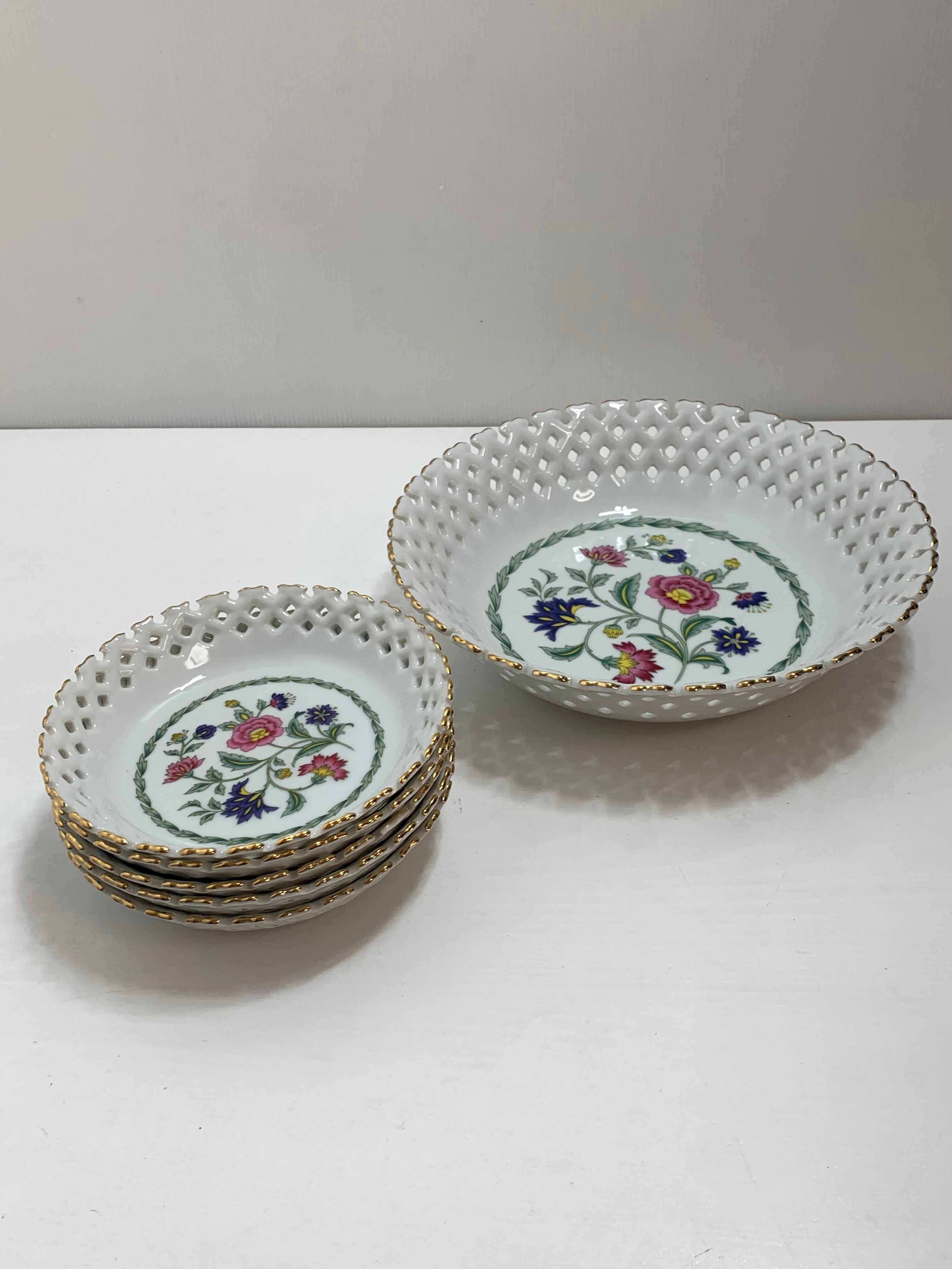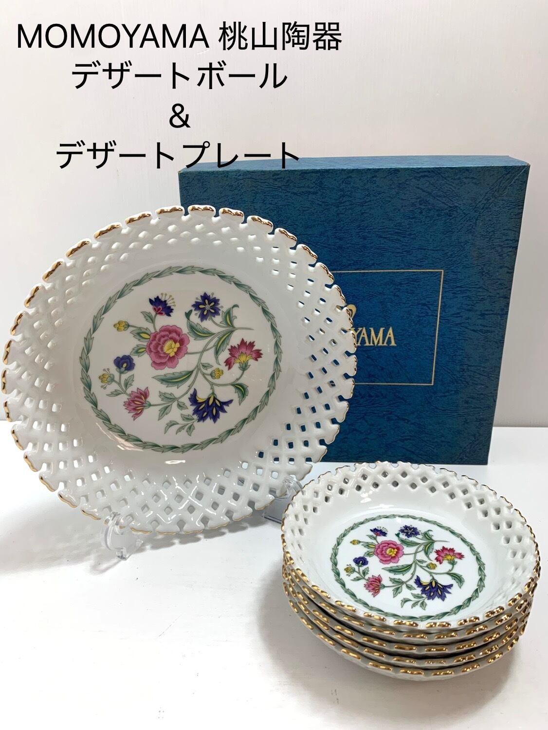 MOMOYAMA 桃山陶器 透かしレース 金彩デザイン レトロな花柄 デザートボウル&フルーツプレートセット
