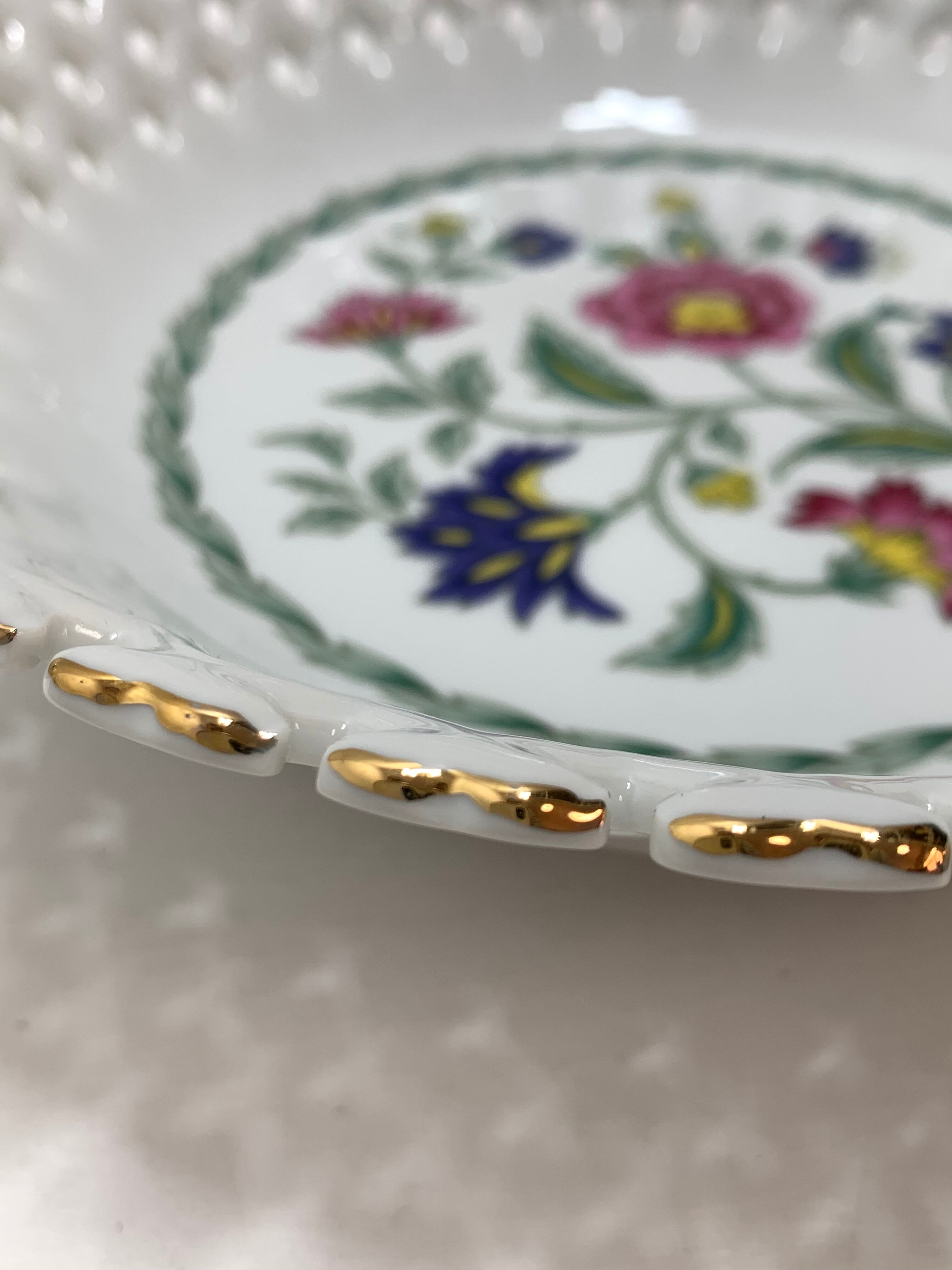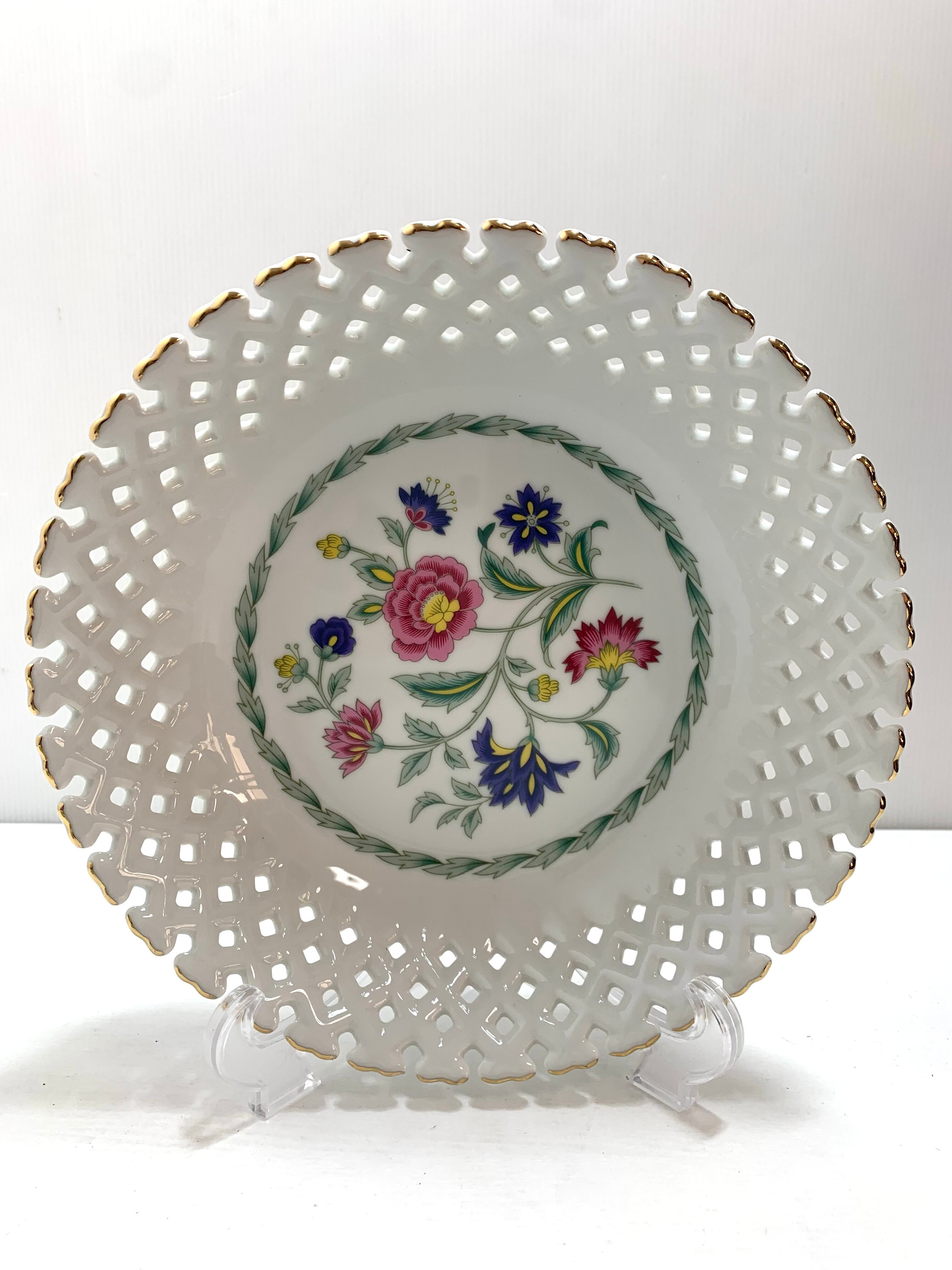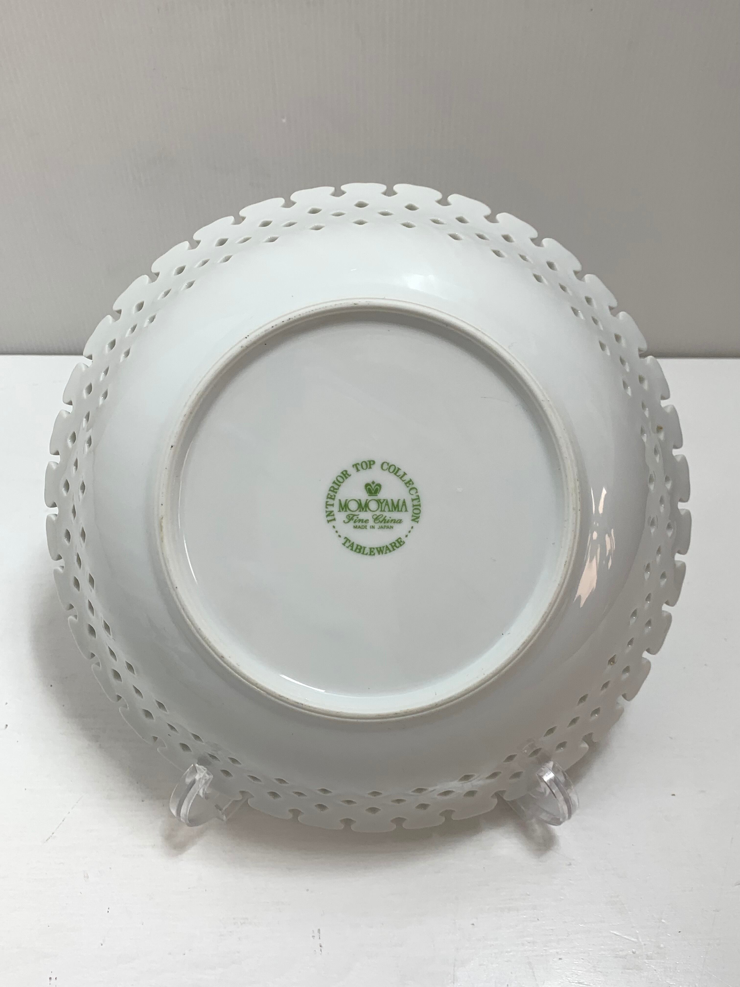 細やかな透かしレースの装飾と、美しい金彩が施されたMOMOYAMA(桃山陶器)のデザートボウル&フルーツプレート