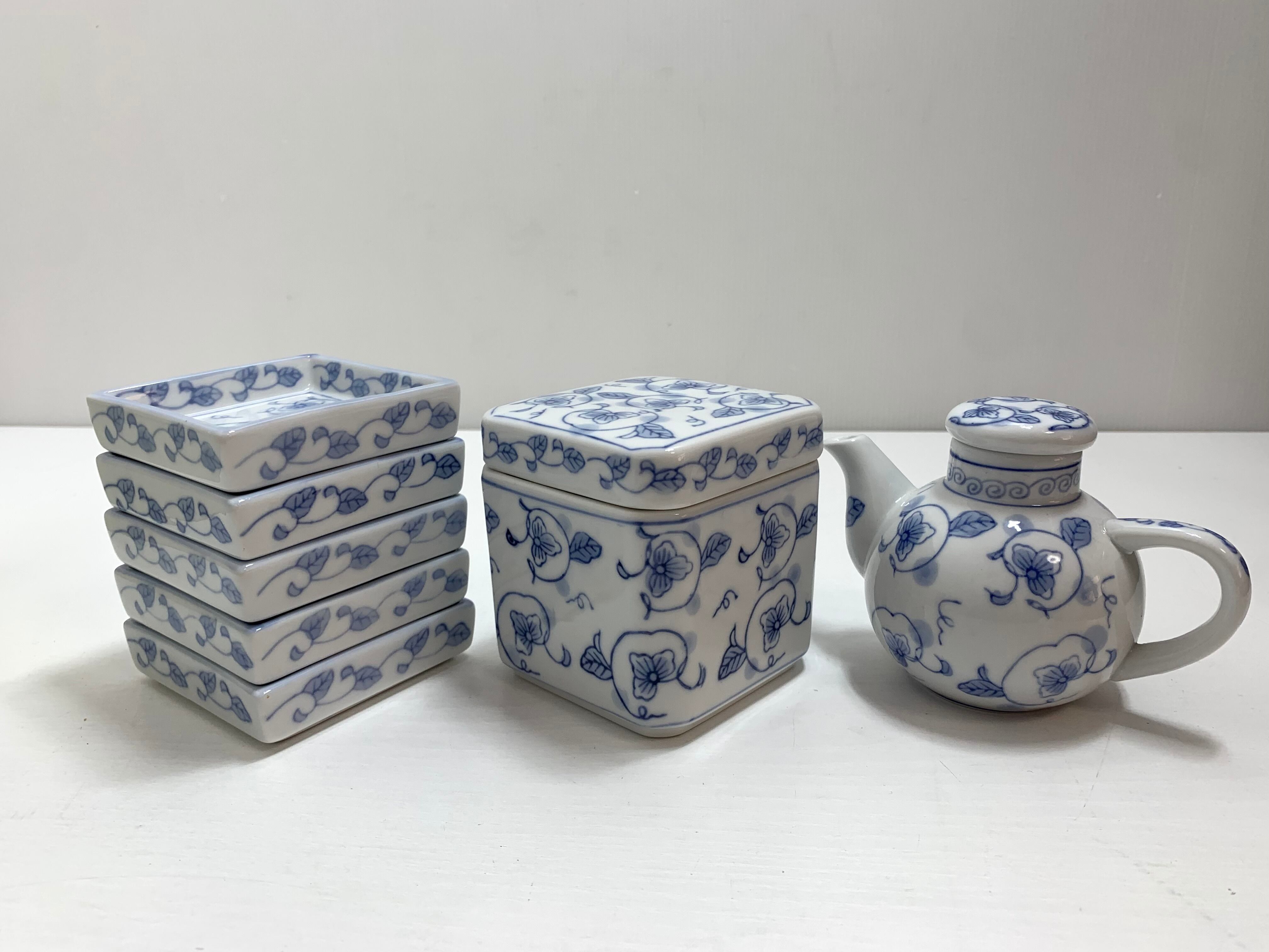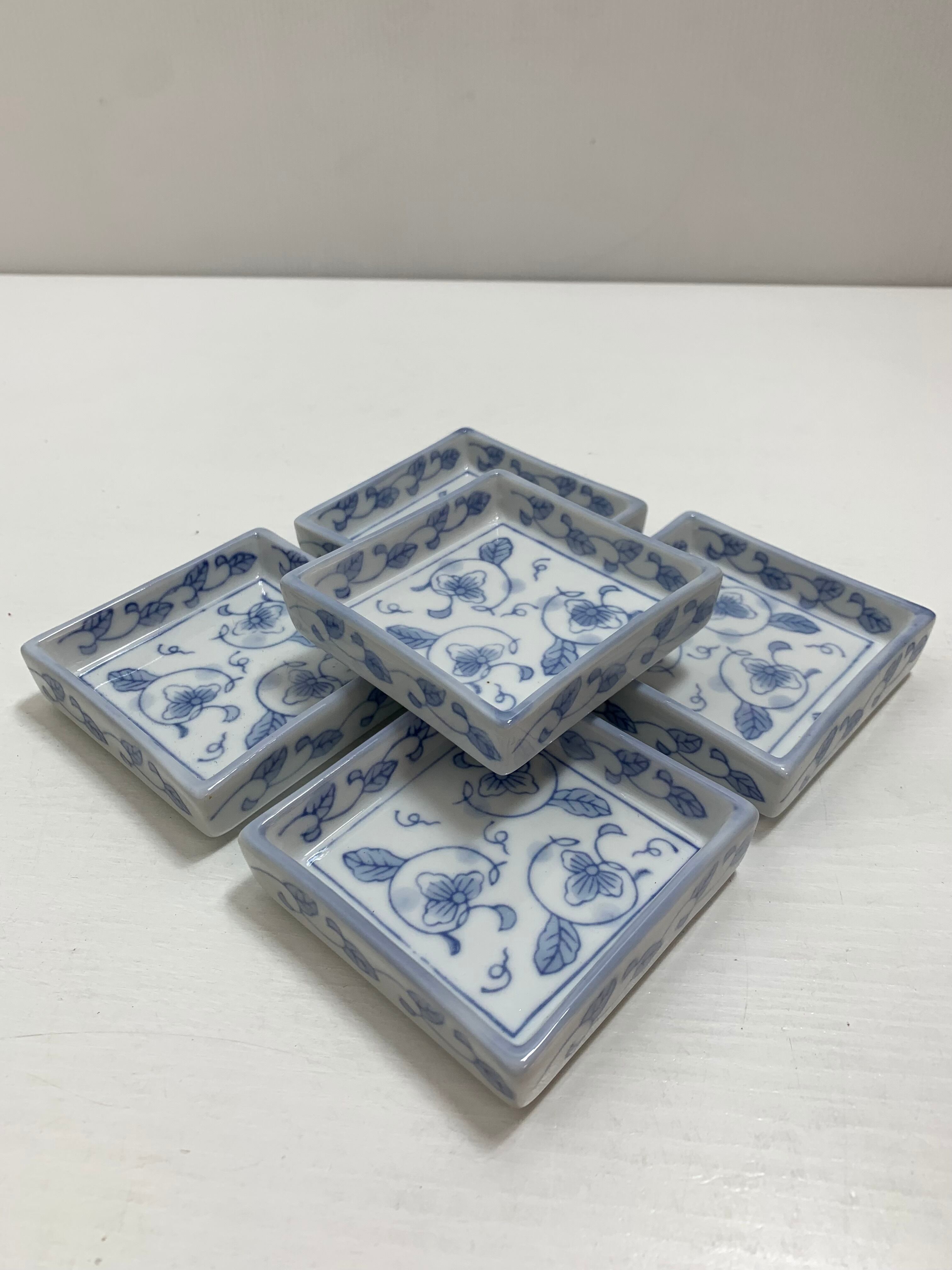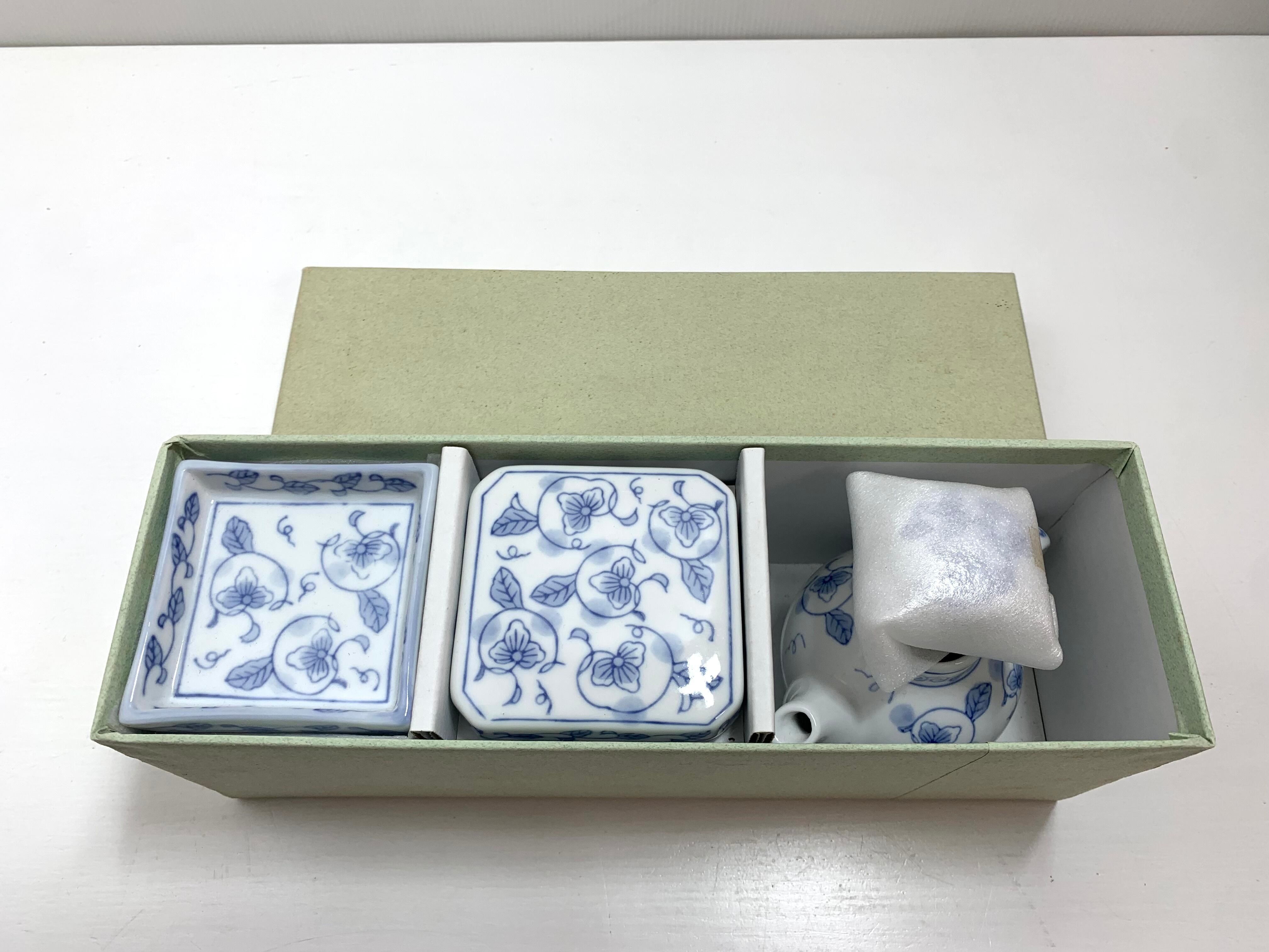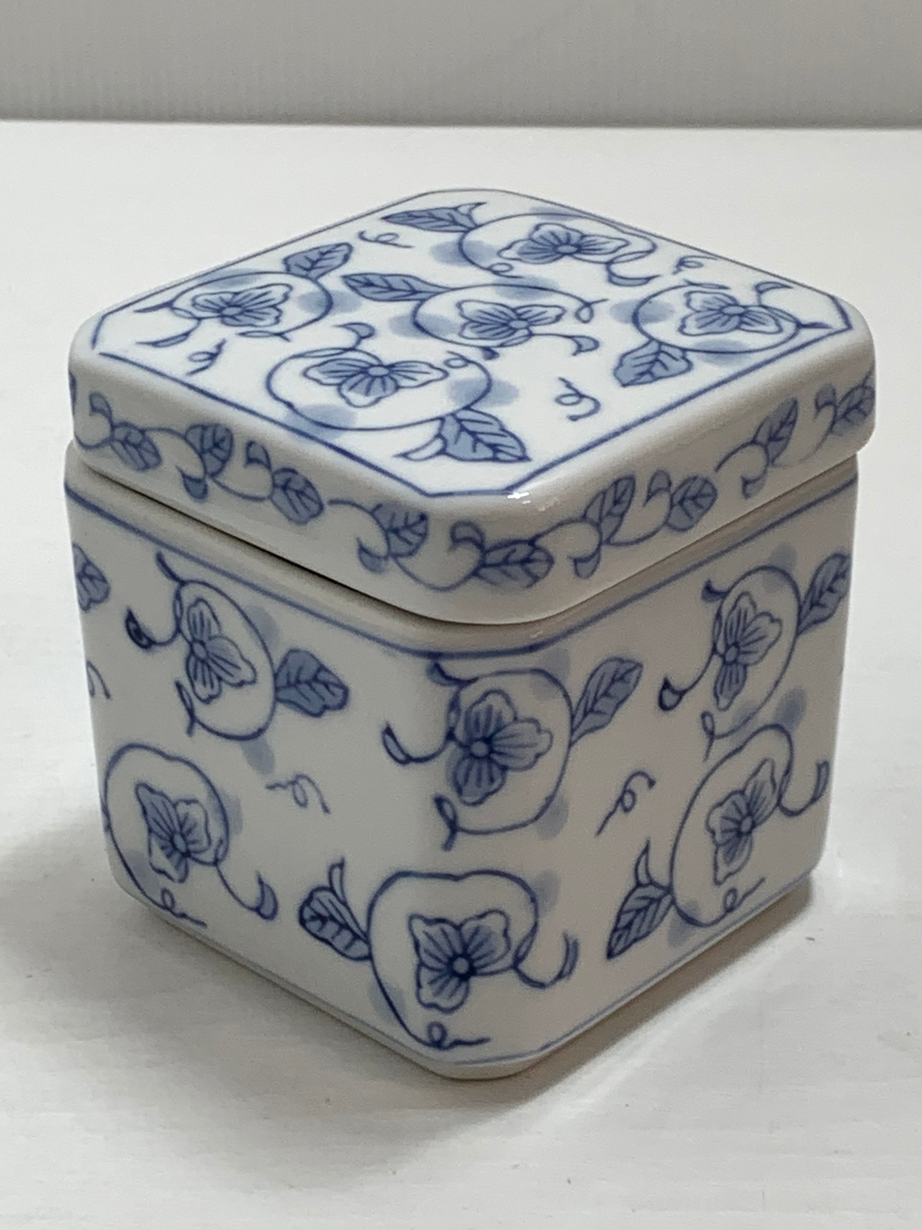 「端陶 藍の染付 食卓小物揃」は、伝統的な藍染め技法を用いた美しい食卓用小物のセットです。このセットには、7.5×7.5cmの四角い小皿、同サイズで高さ6.5cmの蓋付き四角柱容器、そして醤油差しが含まれています。藍色の染付が施されたこれらのアイテムは、食卓に上品な和の趣を添え、日常の食事をより豊かに演出します。また、蓋付き容器は調味料や小物の収納に便利で、機能性と美しさを兼ね備えています。伝統とモダンが融合したデザインは、和洋問わずさまざまな食卓シーンで活躍します。