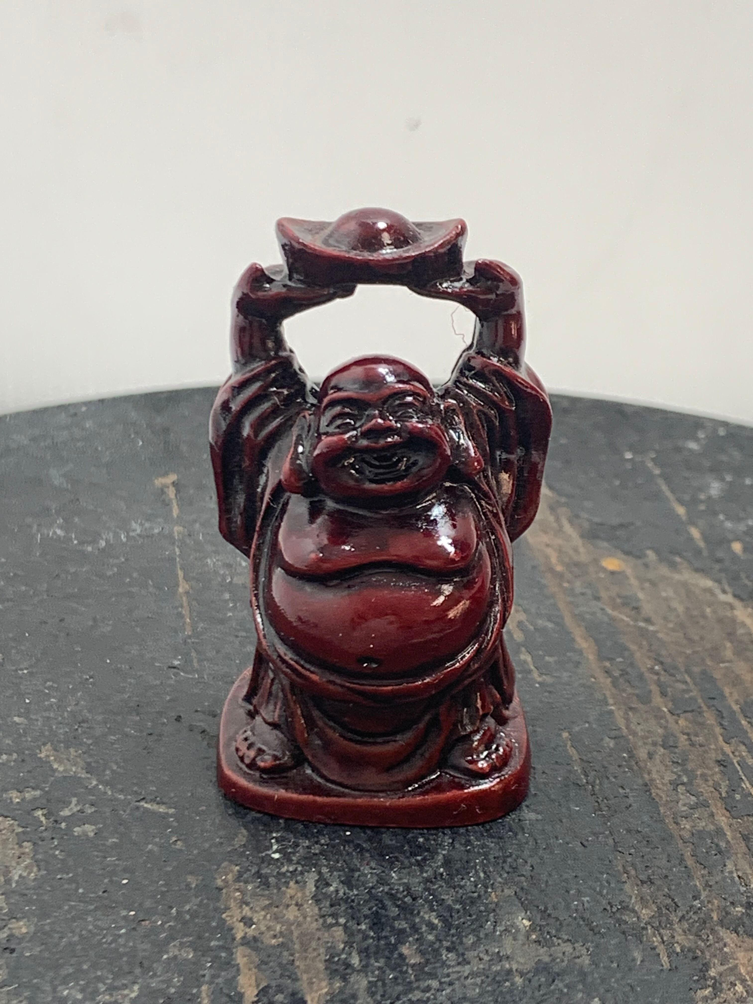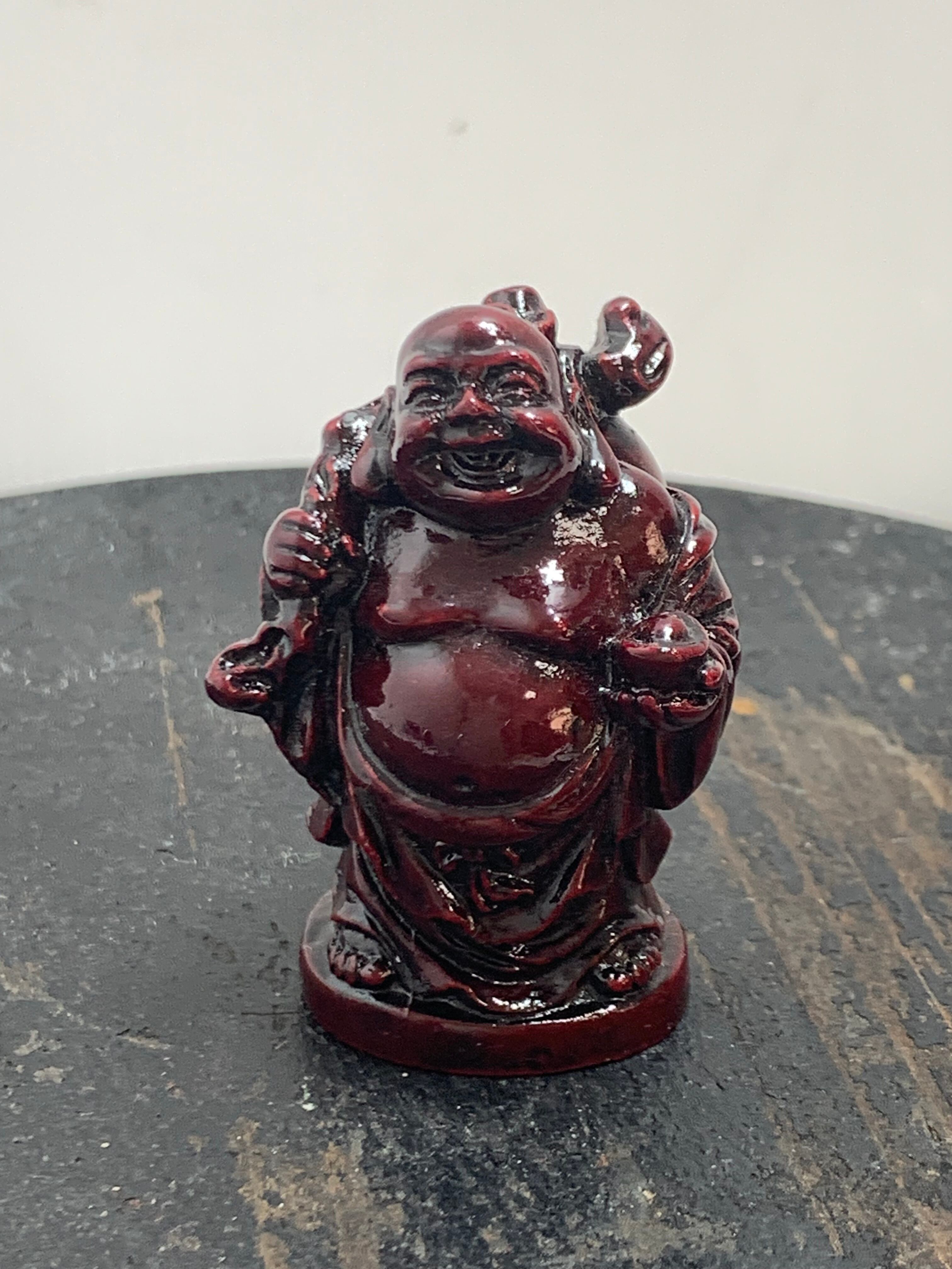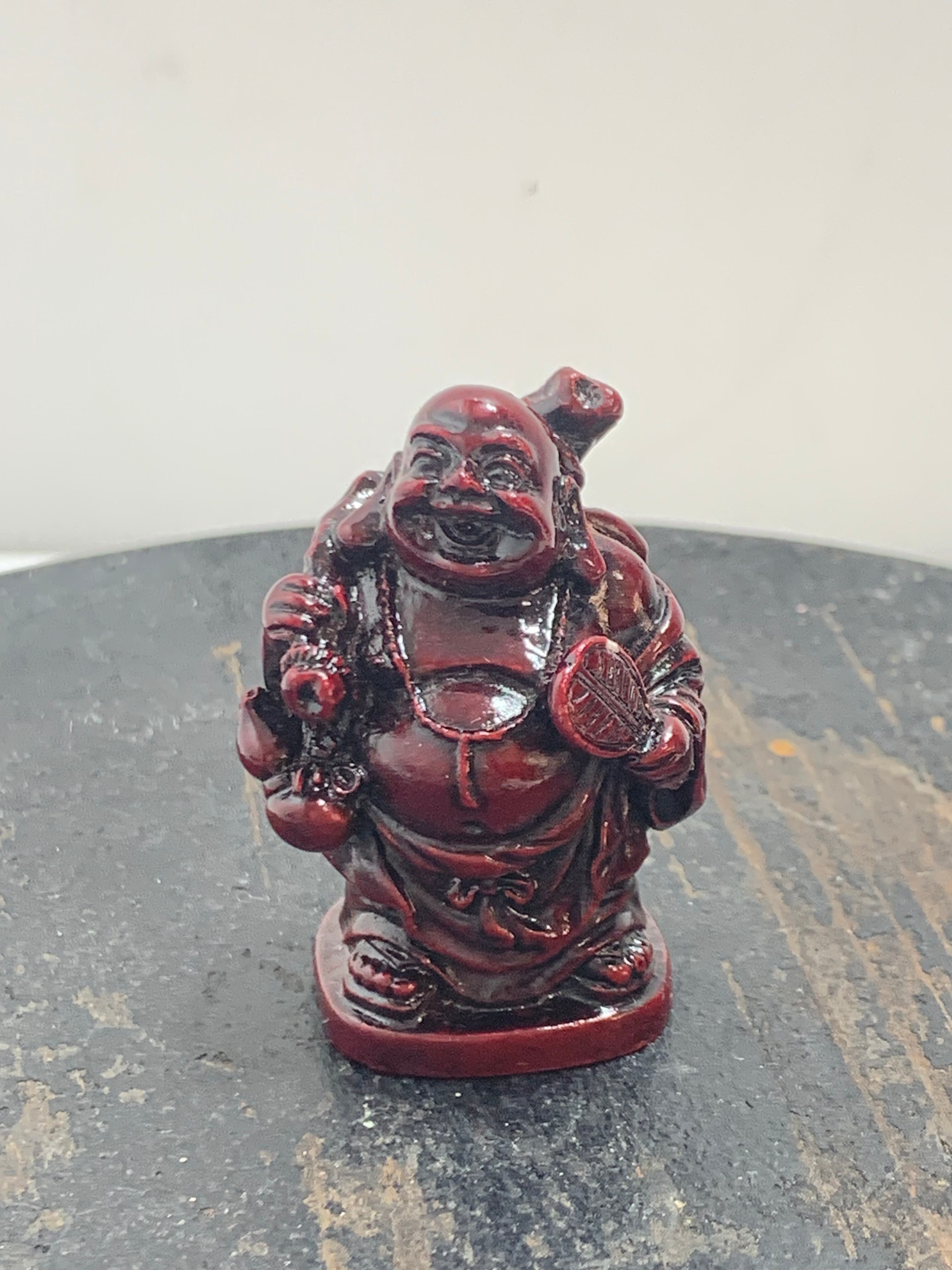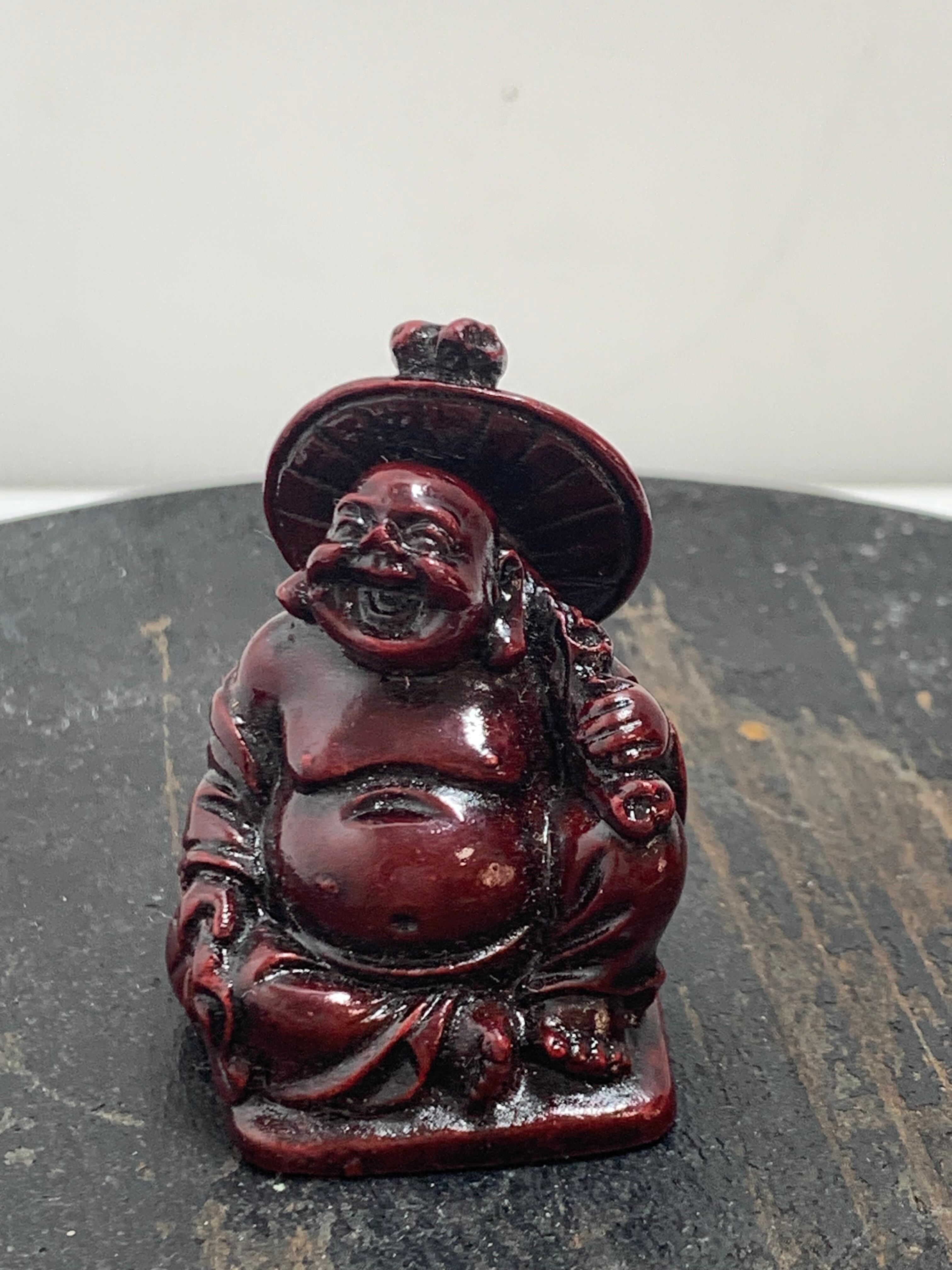 この6体セットのミニ布袋様は、各々が異なるポーズで、ぷっくりとしたお腹を見せ、大きな袋を担いだり、その上に座ったりしています。笑顔がとても愛らしく、見る人に幸福感を与えます。サイズは約5cm×5cmで、コンパクトながら存在感があります。色味は寿山石のような風合いですが、素材は異なります。デスクや棚の上に飾って、日々の癒しや福を呼び込んでみませんか?